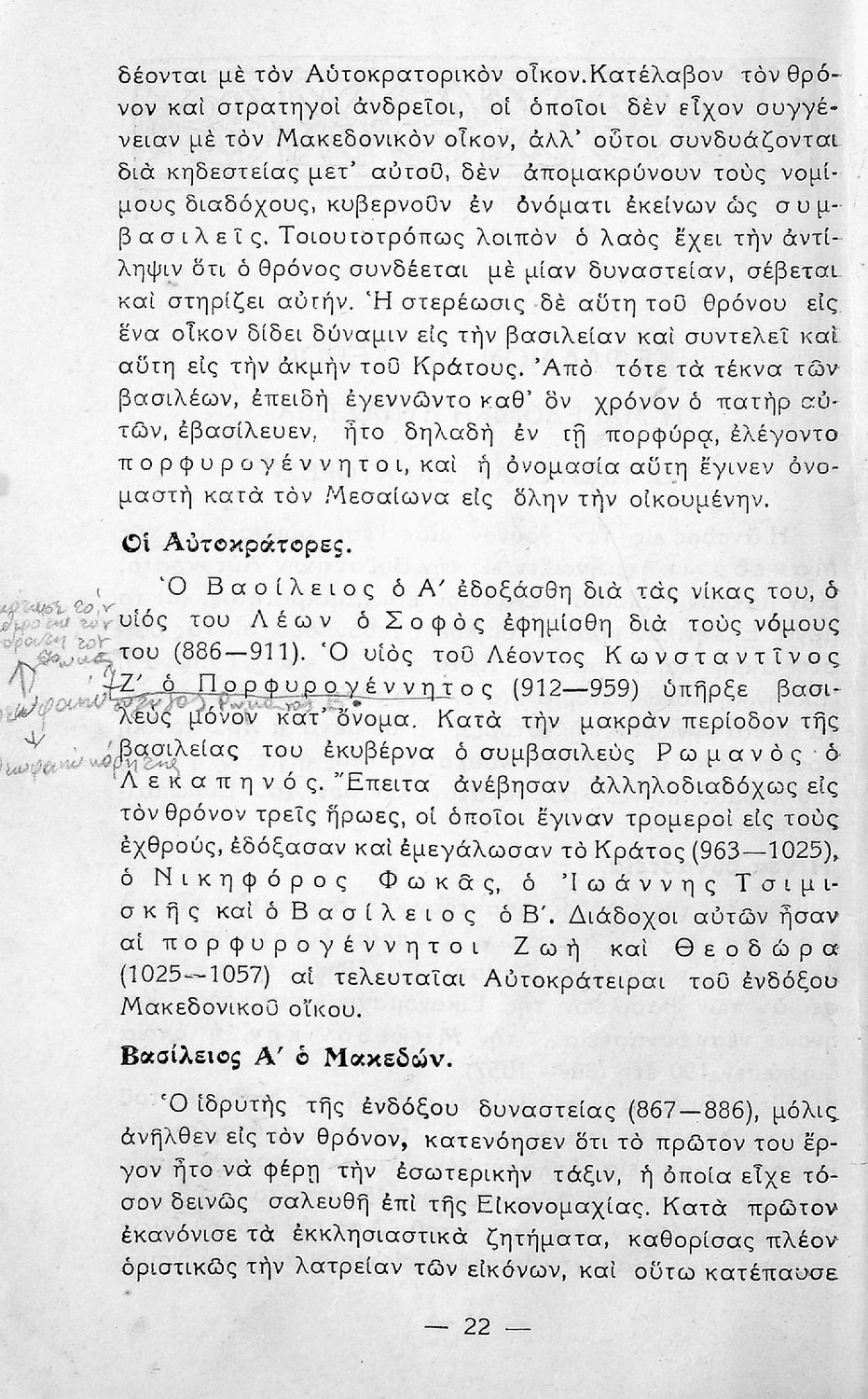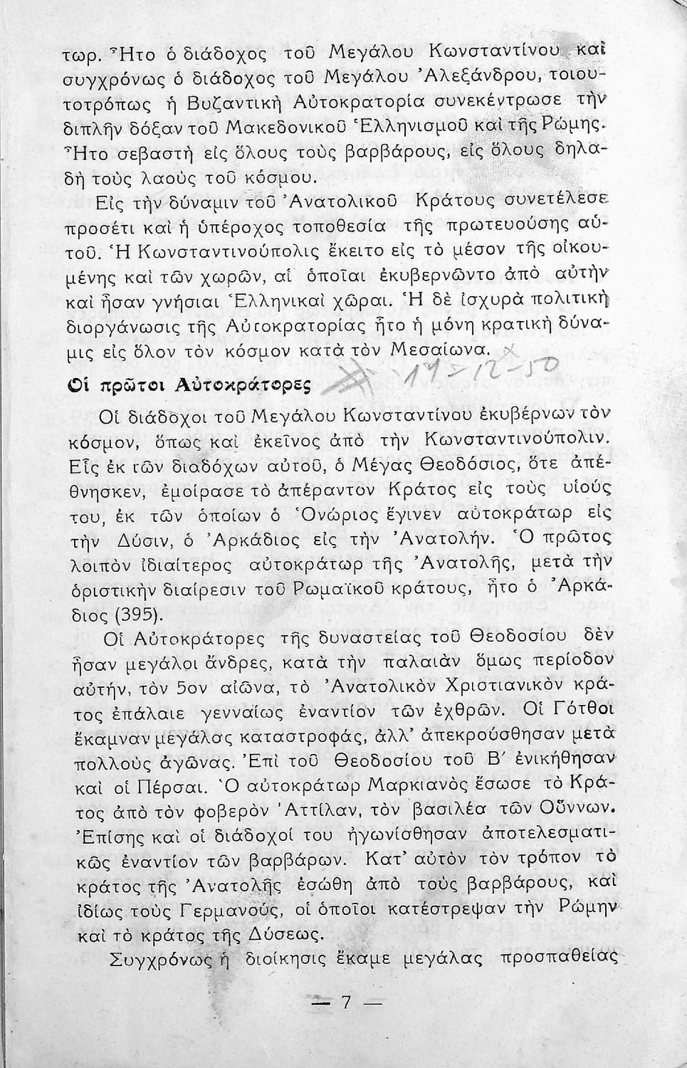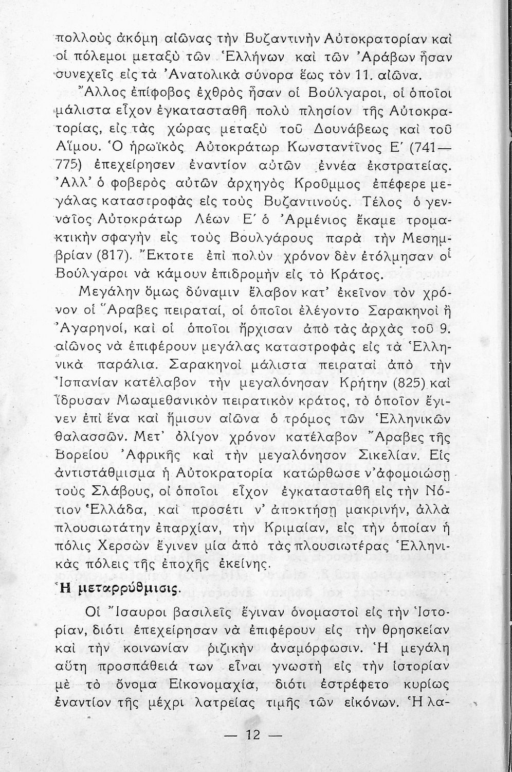 Σχολικό εγχειρίδιο Ιστορίας. Δ΄ Γυμνασίου που καλύπτει την περίοδο από την ενθρόνιση του Ιουστινιανού μέχρι και την περίοδο της Φραγκοκρατίας και την άλωση της Κωνσταντινούπολης. Σκοπό έχει να καλλιεργήσει την εθνική συνείδηση.
