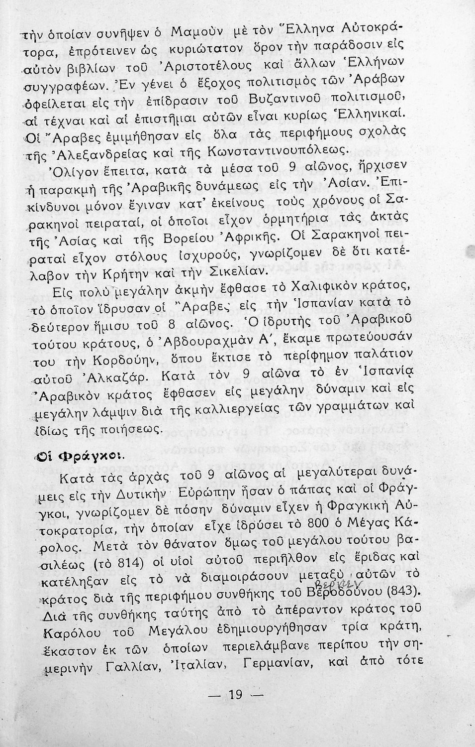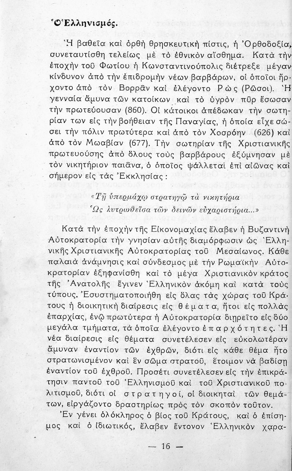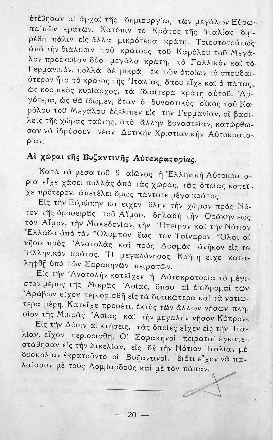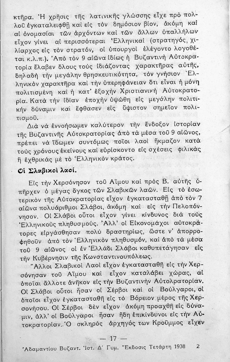Σχολικό εγχειρίδιο Ιστορίας. Δ΄ Γυμνασίου που καλύπτει την περίοδο από την ενθρόνιση του Ιουστινιανού μέχρι και την περίοδο της Φραγκοκρατίας και την άλωση της Κωνσταντινούπολης. Σκοπό έχει να καλλιεργήσει την εθνική συνείδηση.