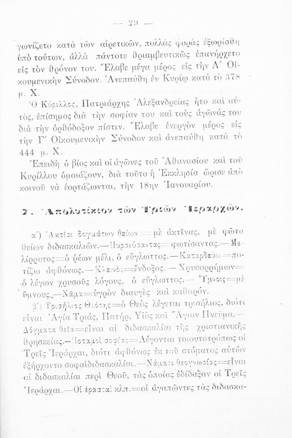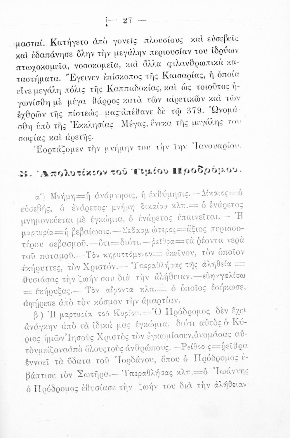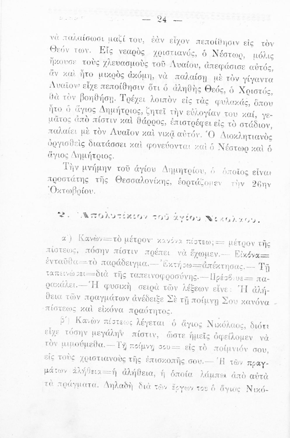 Σχολικό εγχειρίδιο Θρησκευτικών για την Α' Ελληνικού Σχολείου και Παρθεναγωγείου που περιέχει τα απολυτίκια των Θεομητορικών εορτών, των επιφανών Αγίων, αναφορές στις εορτές της Εκκλησίας και ερμηνευτικές σημειώσεις.