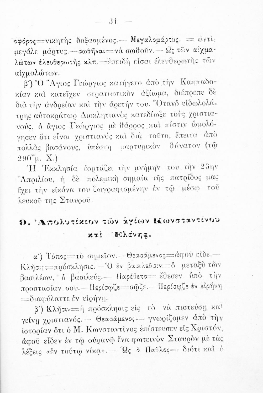 Σχολικό εγχειρίδιο Θρησκευτικών για τις Α΄, Β΄, Γ' Ελληνικού Σχολείου που περιλαμβάνει εισαγωγή στα απολυτίκια, απολυτίκια σε διάφορους ήχους και για διάφορες εορτές και ερμηνευτικές σημειώσεις