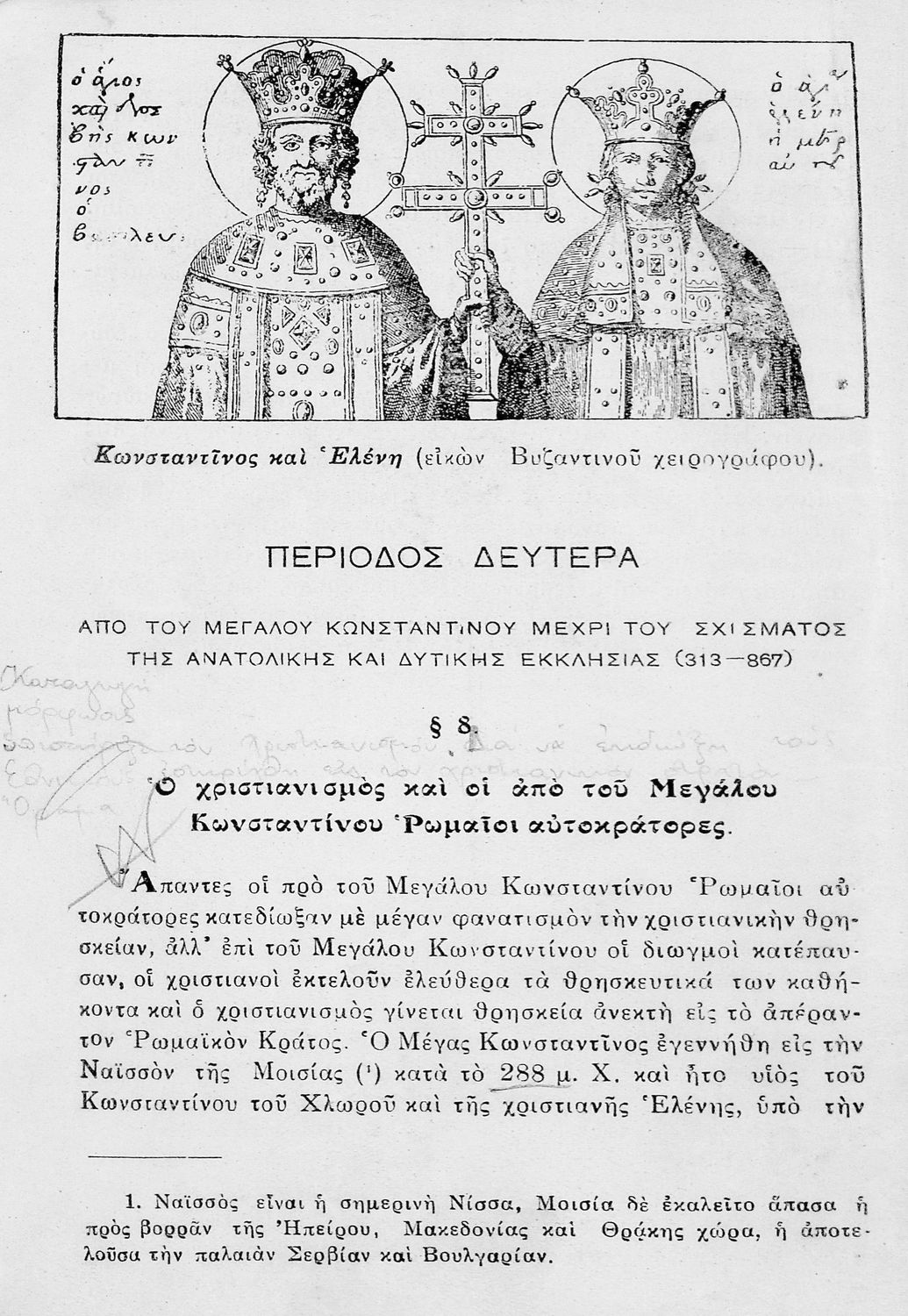 Βαθμίδα εκπαίδευσης: Δευτεροβάθμια Τάξη: Γ' Γυμνασίου Μάθημα: Θρησκευτικά Γλώσσα: Καθαρεύουσα Παρουσίαση περιεχομένου: Σχολικό εγχειρίδιο Θρησκευτικών Γ΄ Γυμνασίου που αποτελεί μια ιστορική επισκόπηση της Ορθόδοξης Εκκλησίας από την εμφάνισή της μέχρι την ίδρυση της Εκκλησίας της Ελλάδας. |