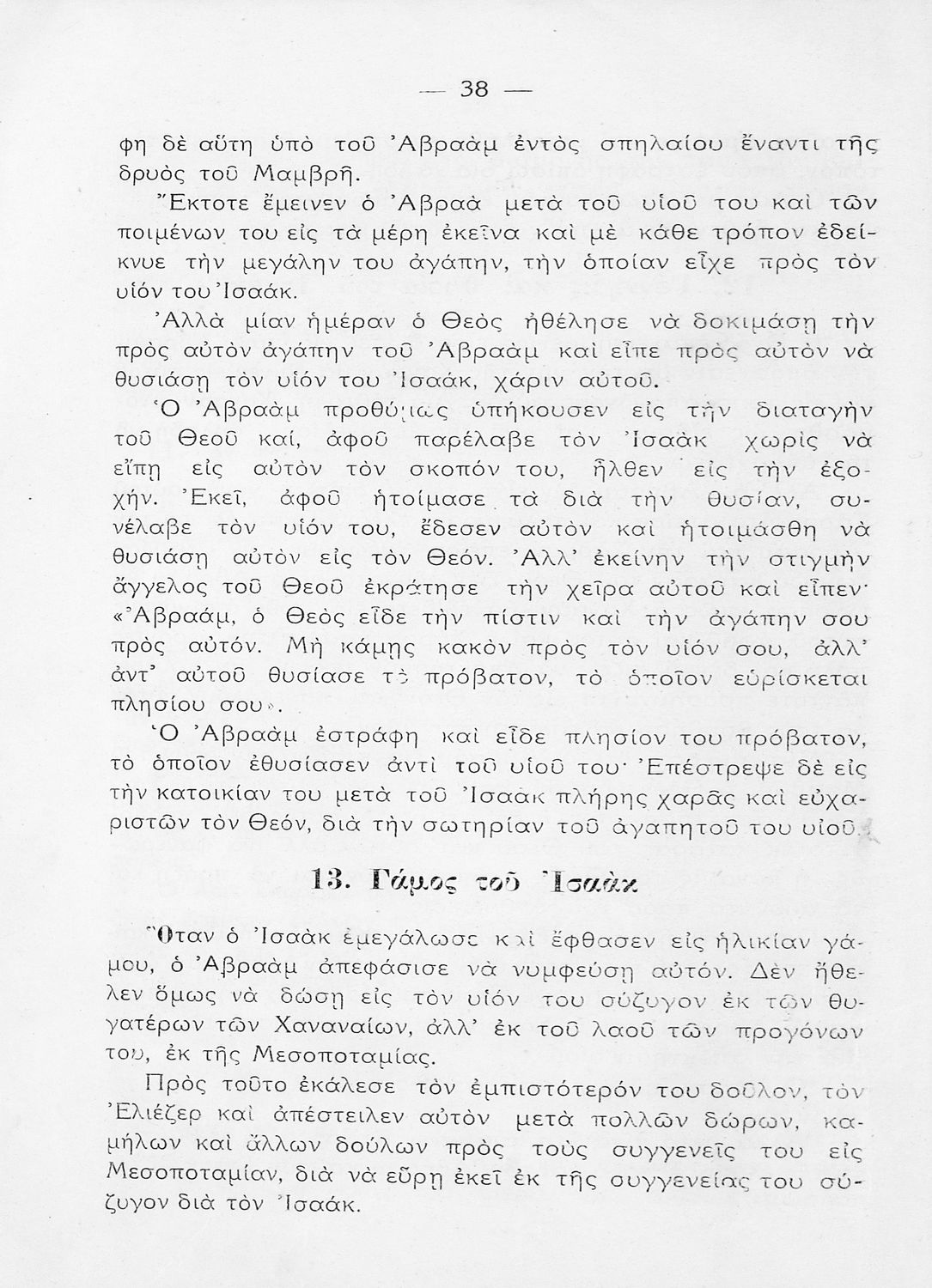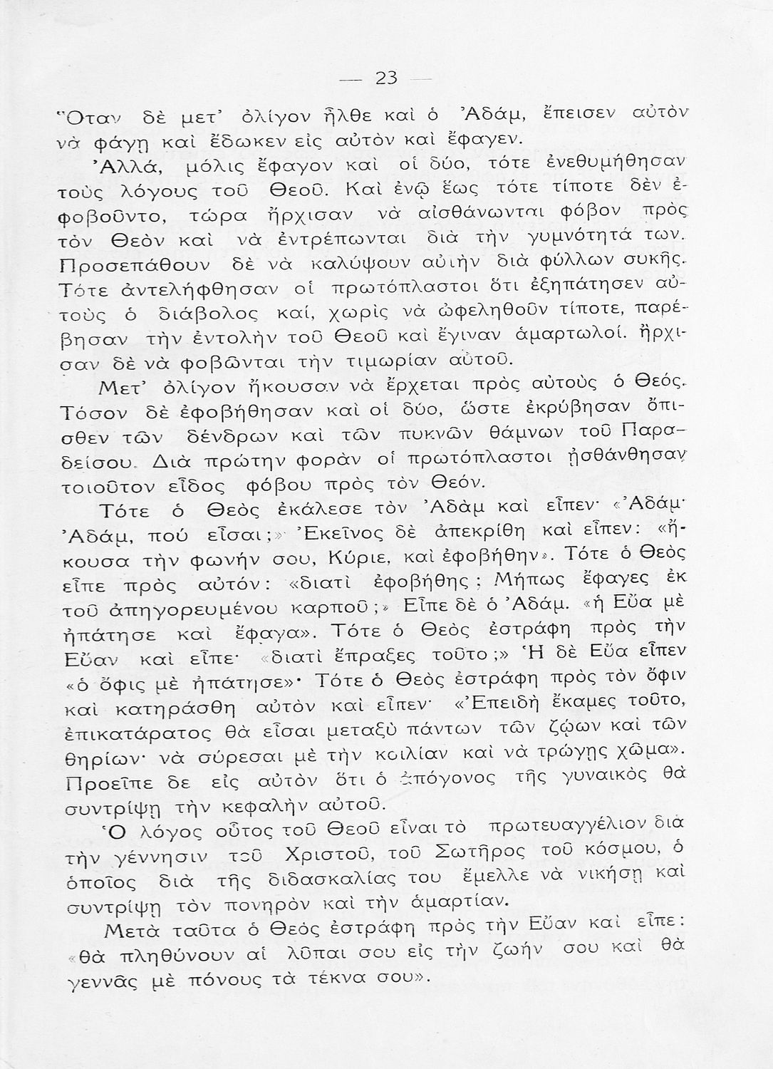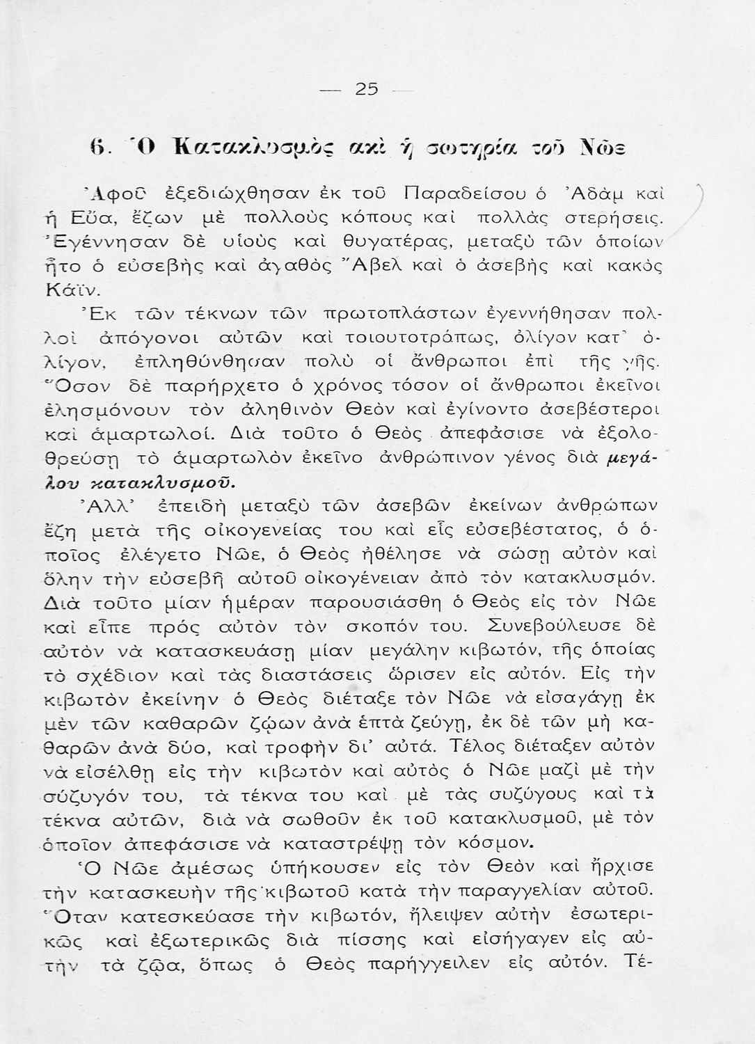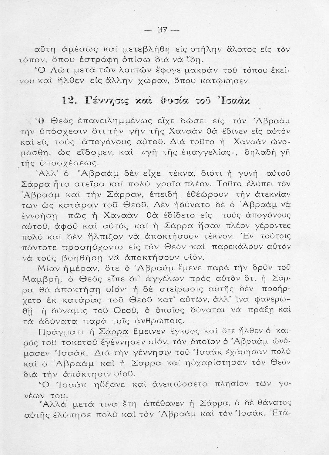 Βαθμίδα εκπαίδευσης: Δευτεροβάθμια Τάξη: Α' Γυμνασίου / Πρακτικό Λύκειο / Ανώτερα Παρθεναγωγεία Μάθημα: Θρησκευτικά Γλώσσα: Απλή καθαρεύουσα Παρουσίαση περιεχομένου: Σχολικό εγχειρίδιο Θρησκευτικών για την Α΄ Γυμνασίου και Πρακτικού Λυκείου που συνιστά μία εξιστόρηση της Παλαιάς Διαθήκης από τη δημιουργία του κόσμου ως την υποταγή των Εβραίων στους Ρωμαίους. |