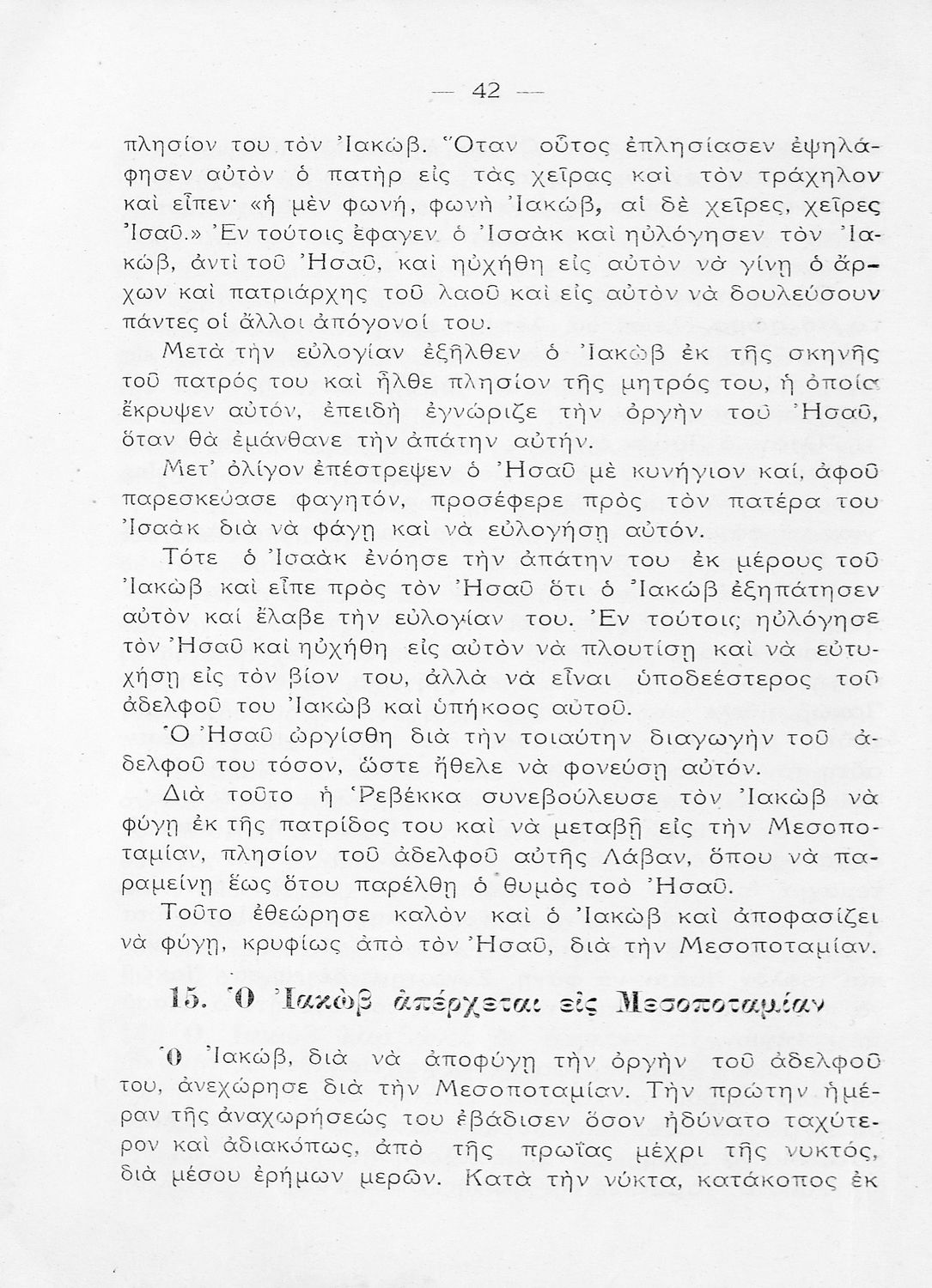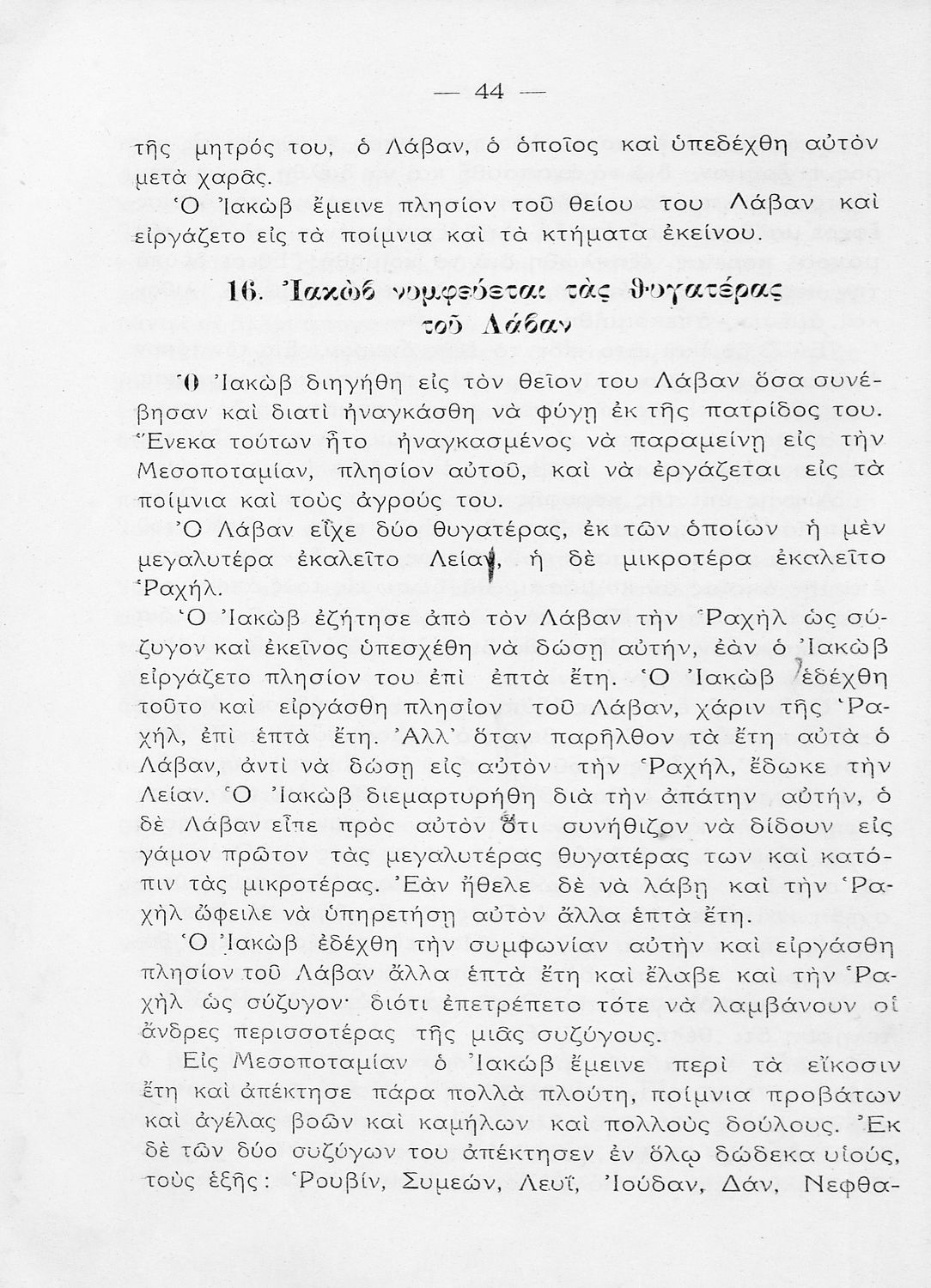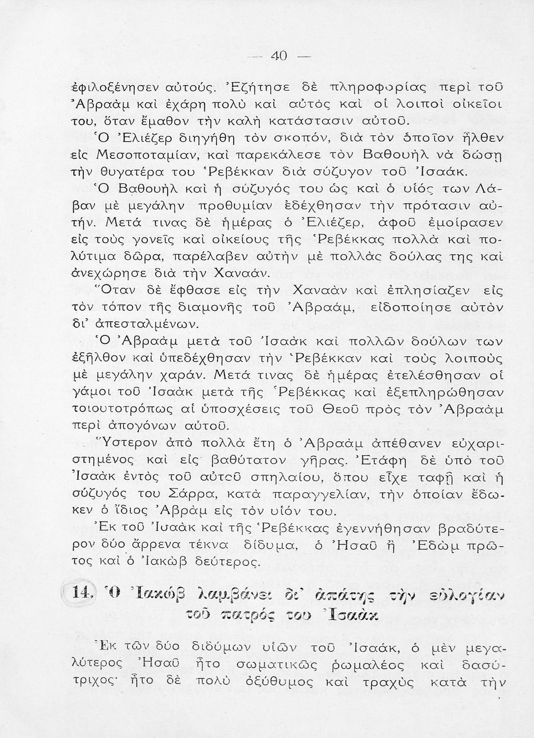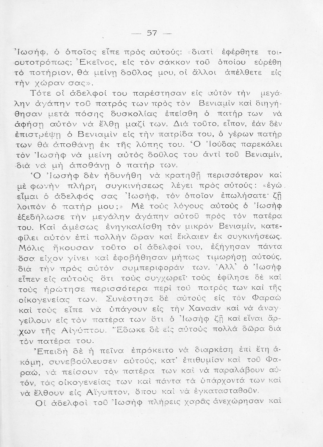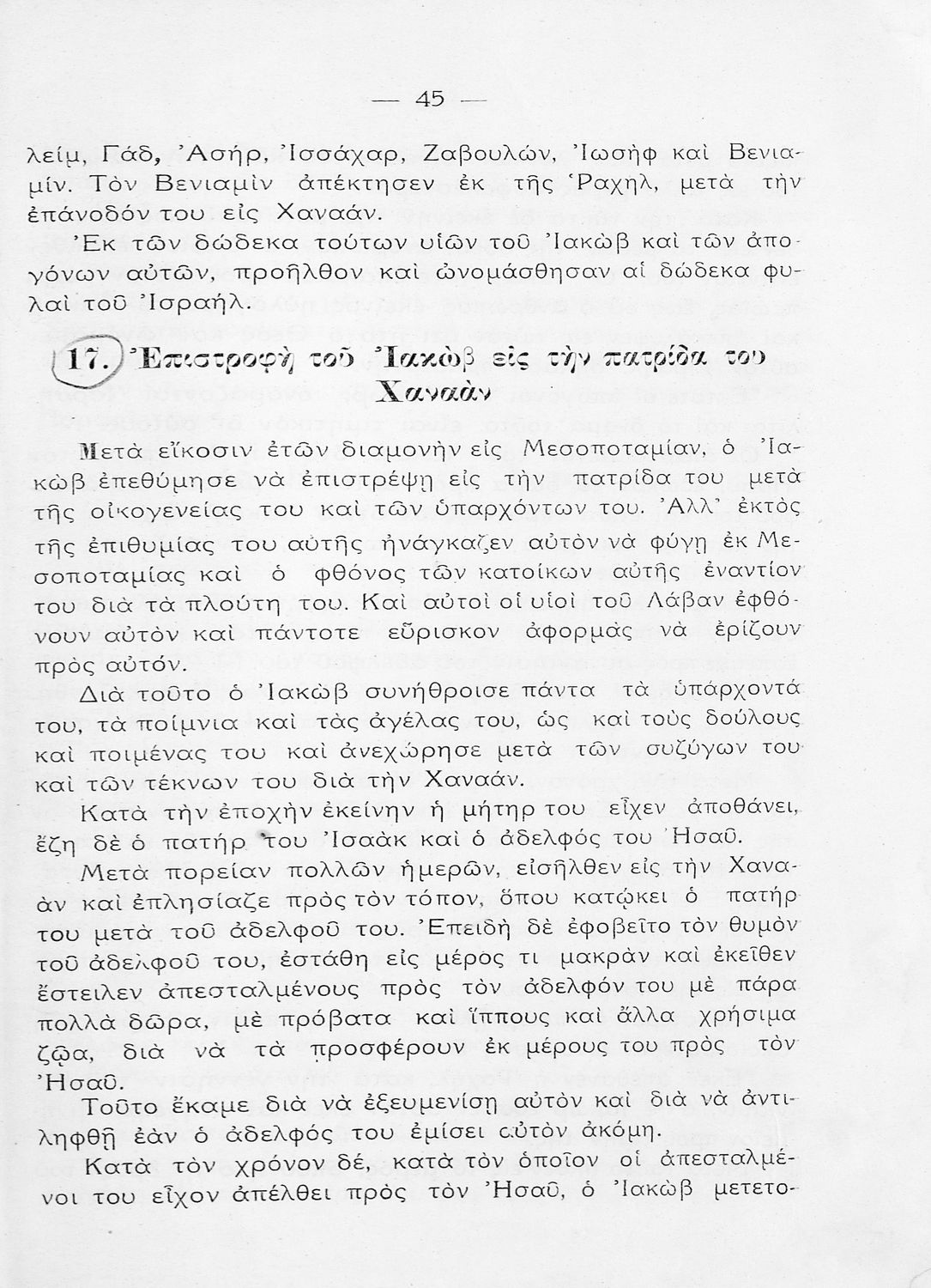 Βαθμίδα εκπαίδευσης: Δευτεροβάθμια Τάξη: Α' Γυμνασίου / Πρακτικό Λύκειο / Ανώτερα Παρθεναγωγεία Μάθημα: Θρησκευτικά Γλώσσα: Απλή καθαρεύουσα Παρουσίαση περιεχομένου: Σχολικό εγχειρίδιο Θρησκευτικών για την Α΄ Γυμνασίου και Πρακτικού Λυκείου που συνιστά μία εξιστόρηση της Παλαιάς Διαθήκης από τη δημιουργία του κόσμου ως την υποταγή των Εβραίων στους Ρωμαίους. |