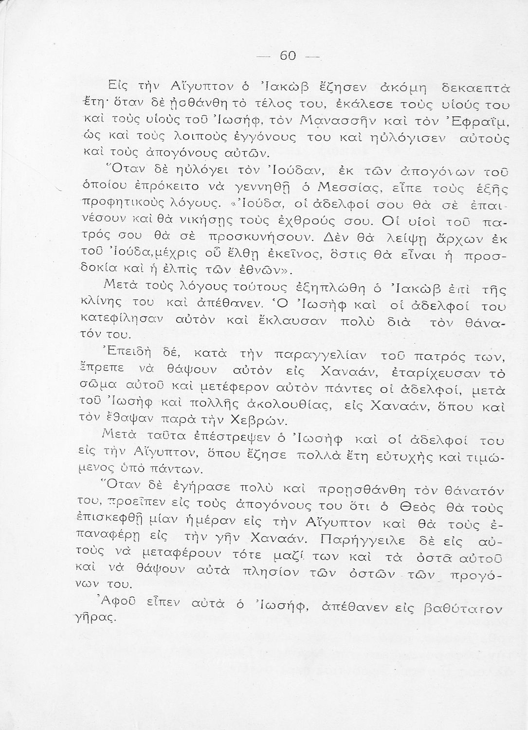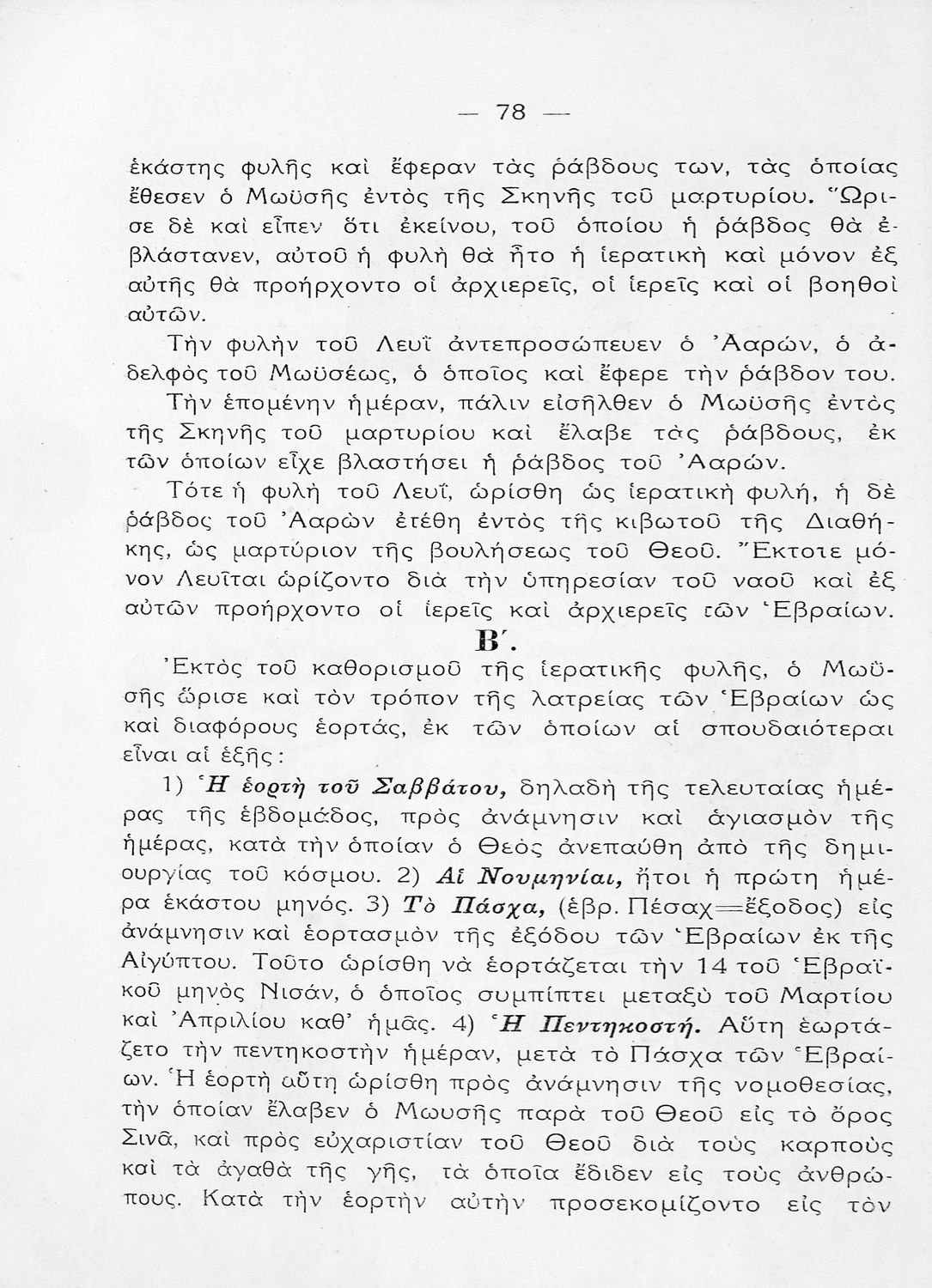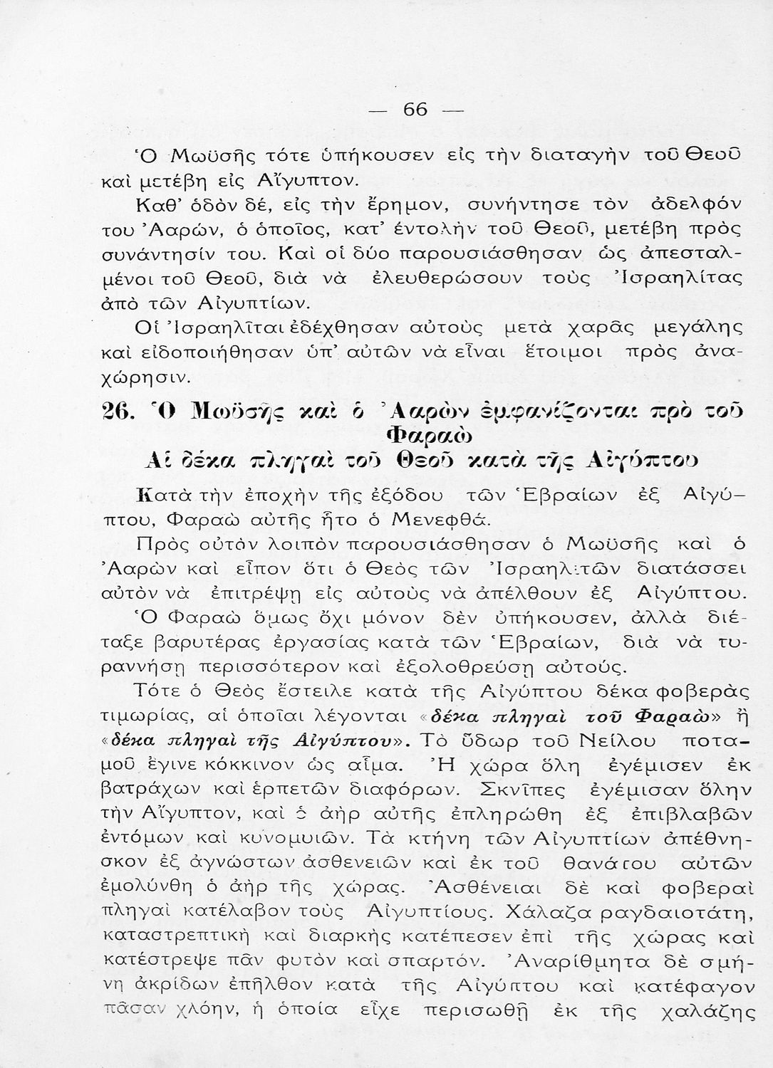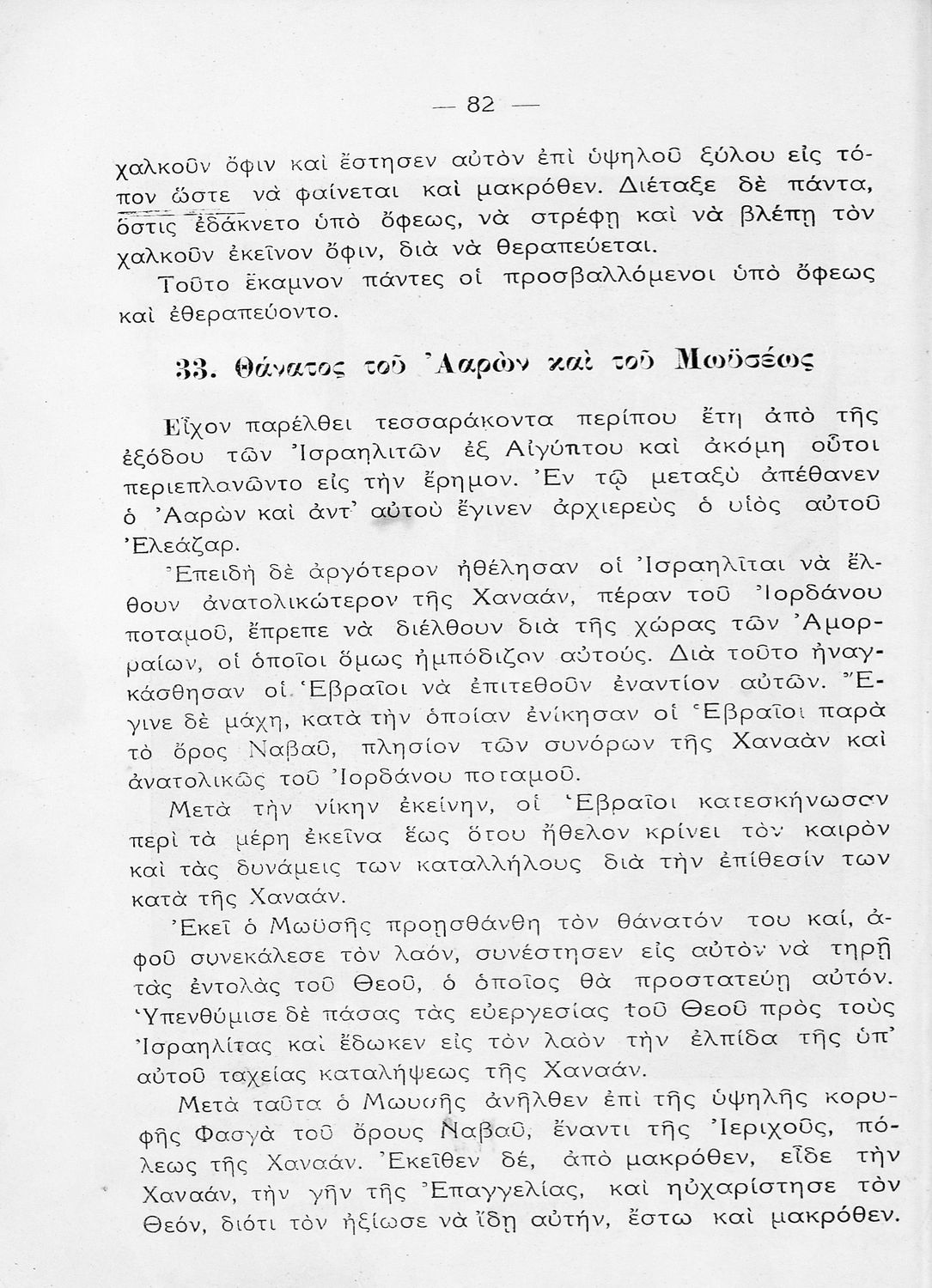 Βαθμίδα εκπαίδευσης: Δευτεροβάθμια Τάξη: Α' Γυμνασίου / Πρακτικό Λύκειο / Ανώτερα Παρθεναγωγεία Μάθημα: Θρησκευτικά Γλώσσα: Απλή καθαρεύουσα Παρουσίαση περιεχομένου: Σχολικό εγχειρίδιο Θρησκευτικών για την Α΄ Γυμνασίου και Πρακτικού Λυκείου που συνιστά μία εξιστόρηση της Παλαιάς Διαθήκης από τη δημιουργία του κόσμου ως την υποταγή των Εβραίων στους Ρωμαίους. |