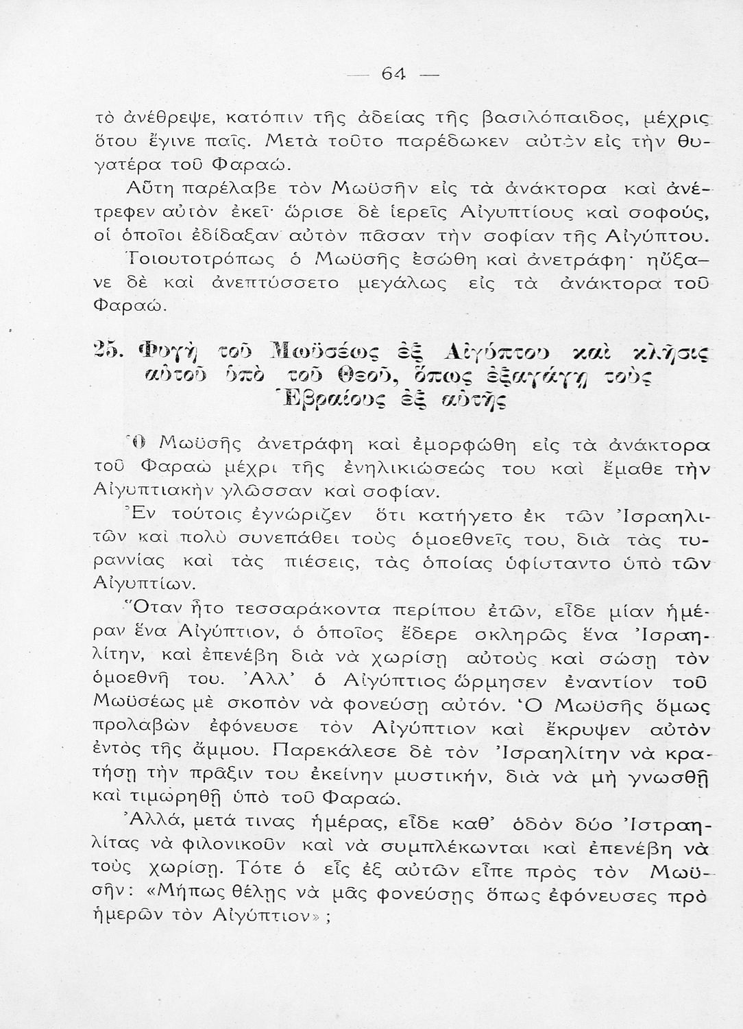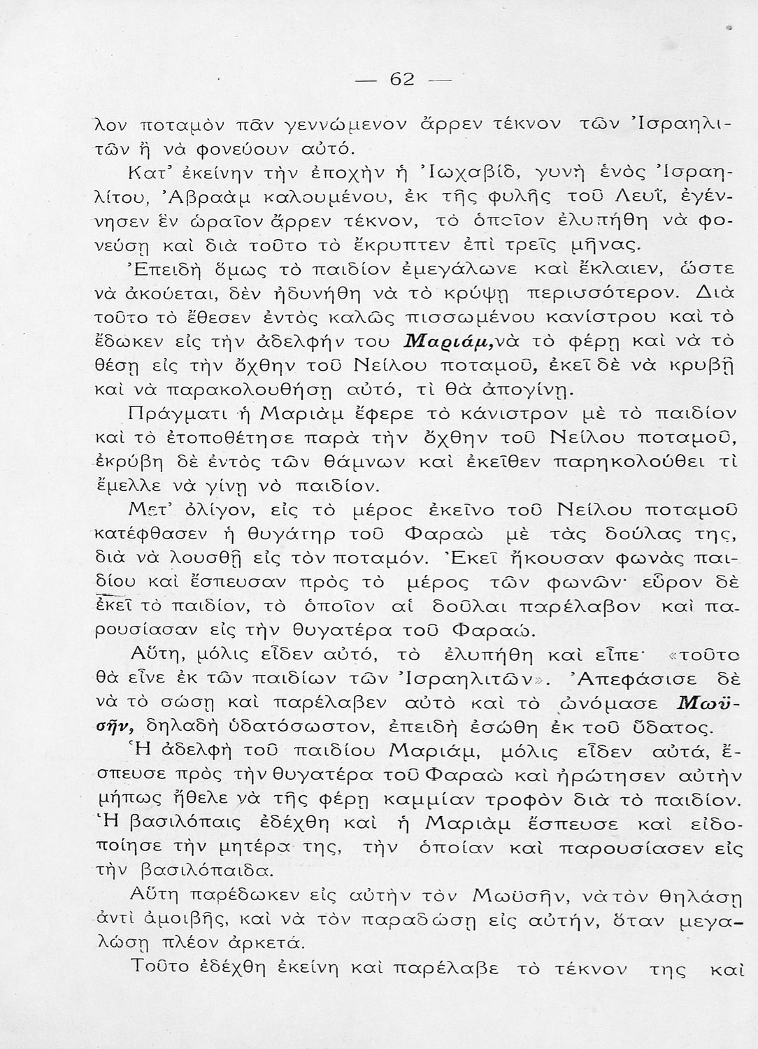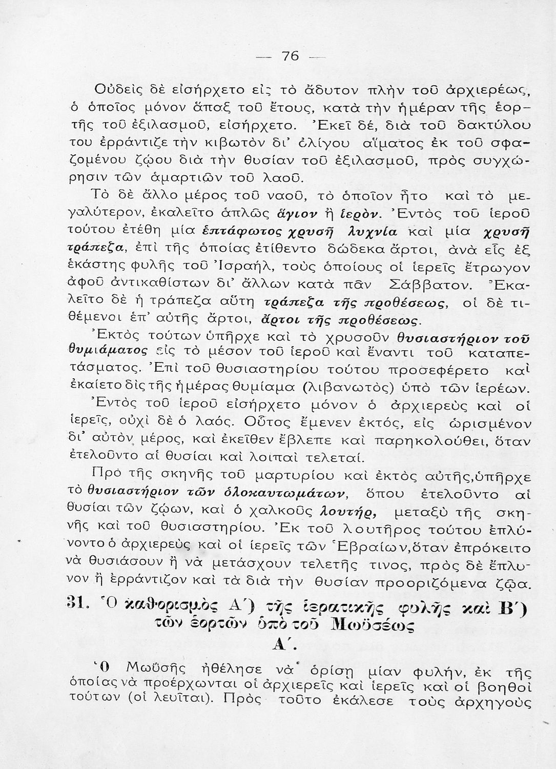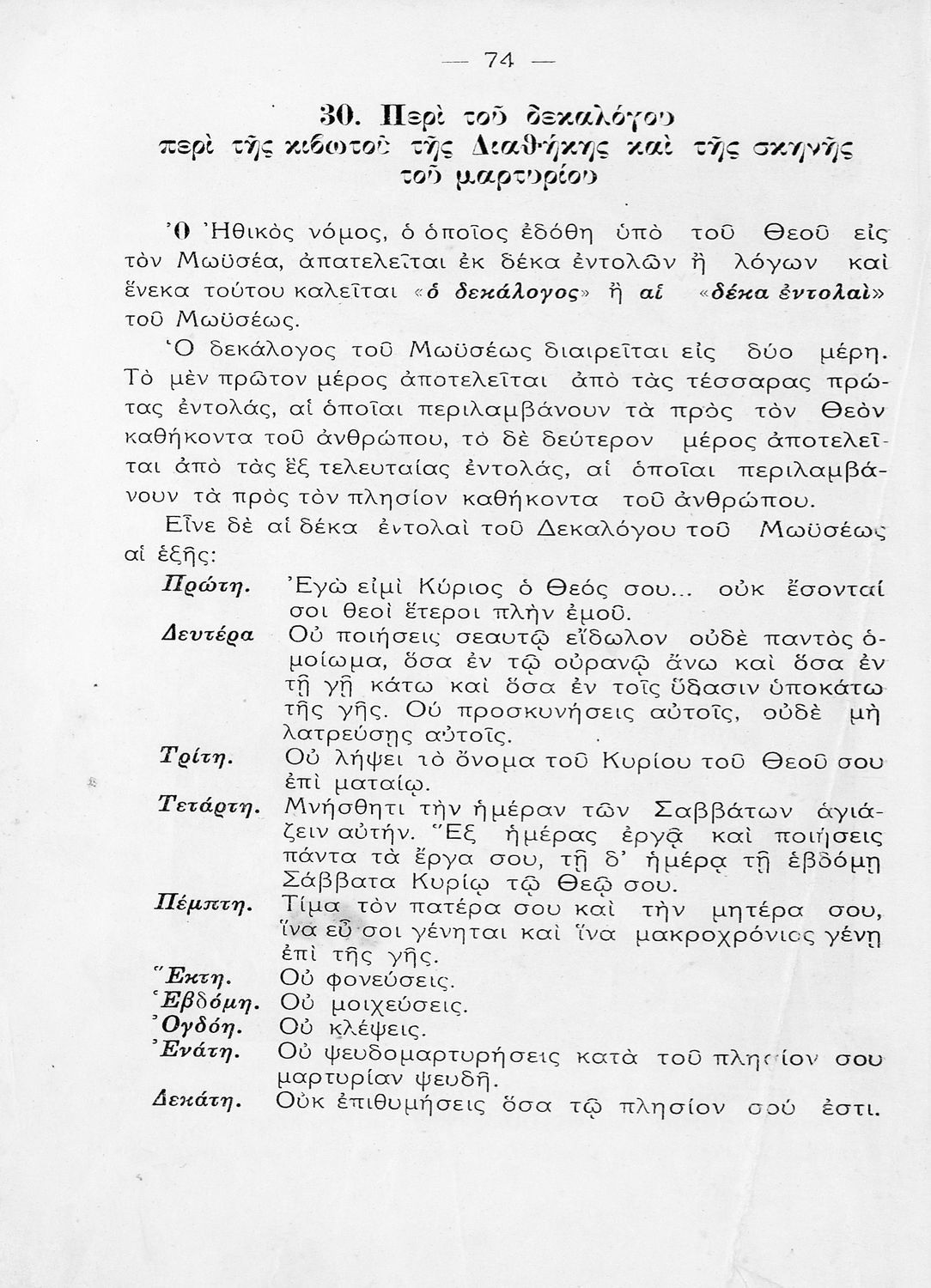 Βαθμίδα εκπαίδευσης: Δευτεροβάθμια Τάξη: Α' Γυμνασίου / Πρακτικό Λύκειο / Ανώτερα Παρθεναγωγεία Μάθημα: Θρησκευτικά Γλώσσα: Απλή καθαρεύουσα Παρουσίαση περιεχομένου: Σχολικό εγχειρίδιο Θρησκευτικών για την Α΄ Γυμνασίου και Πρακτικού Λυκείου που συνιστά μία εξιστόρηση της Παλαιάς Διαθήκης από τη δημιουργία του κόσμου ως την υποταγή των Εβραίων στους Ρωμαίους. |