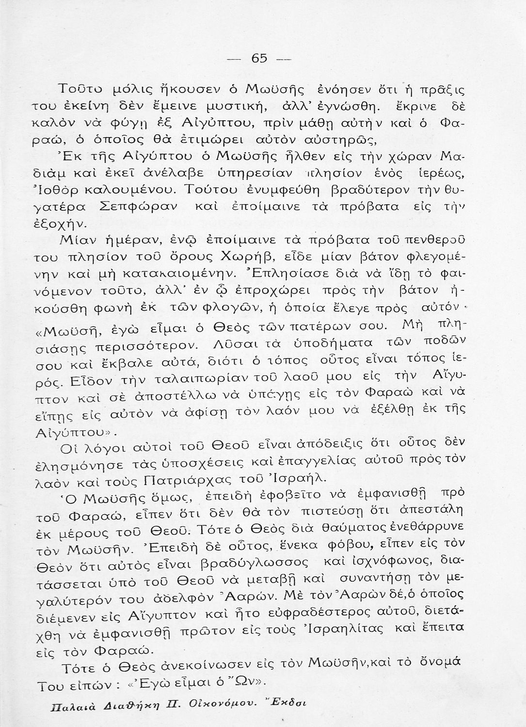 Σχολικό εγχειρίδιο Θρησκευτικών για την Α΄ Γυμνασίου και Πρακτικού Λυκείου που συνιστά μία εξιστόρηση της Παλαιάς Διαθήκης από τη δημιουργία του κόσμου ως την υποταγή των Εβραίων στους Ρωμαίους.