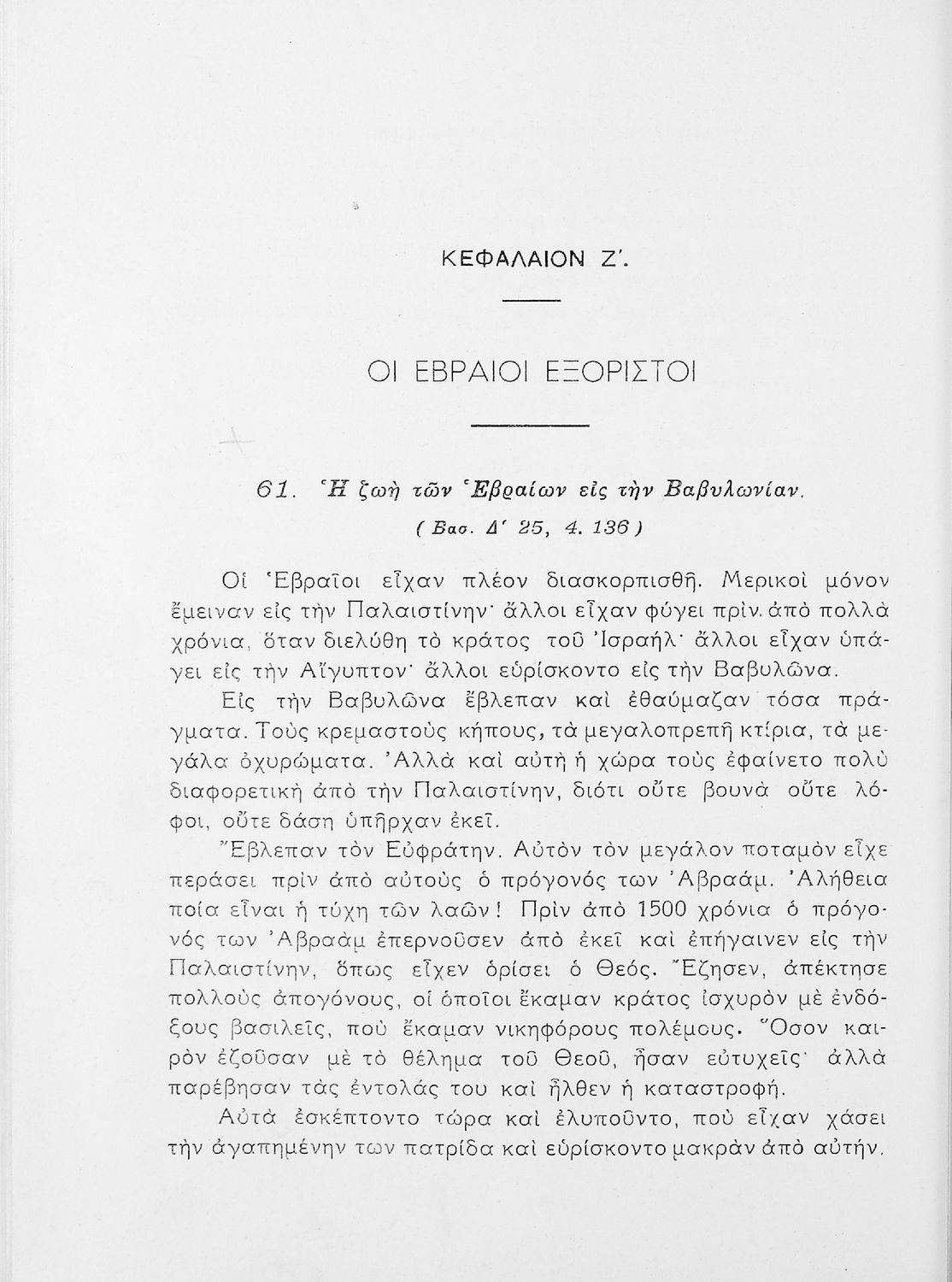 Σχολικό εγχειρίδιο Θρησκευτικών Α΄ Εξαταξίου Γυμνασίου που συνιστά μία εξιστόρηση της Παλαιάς Διαθήκης από τη δημιουργία του κόσμου ως την υποταγή των Εβραίων στους Ρωμαίους.