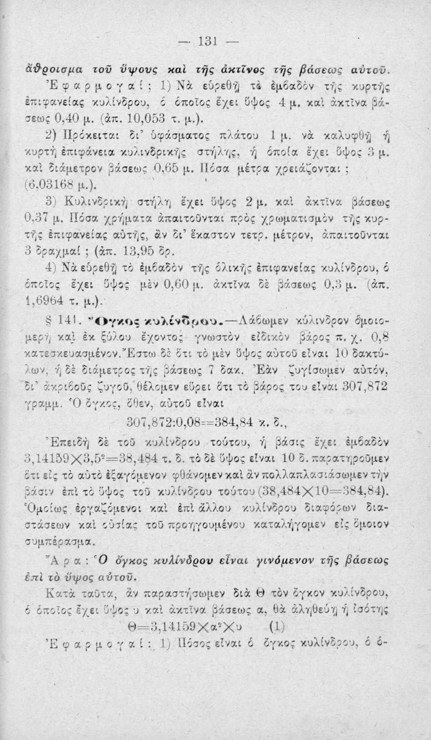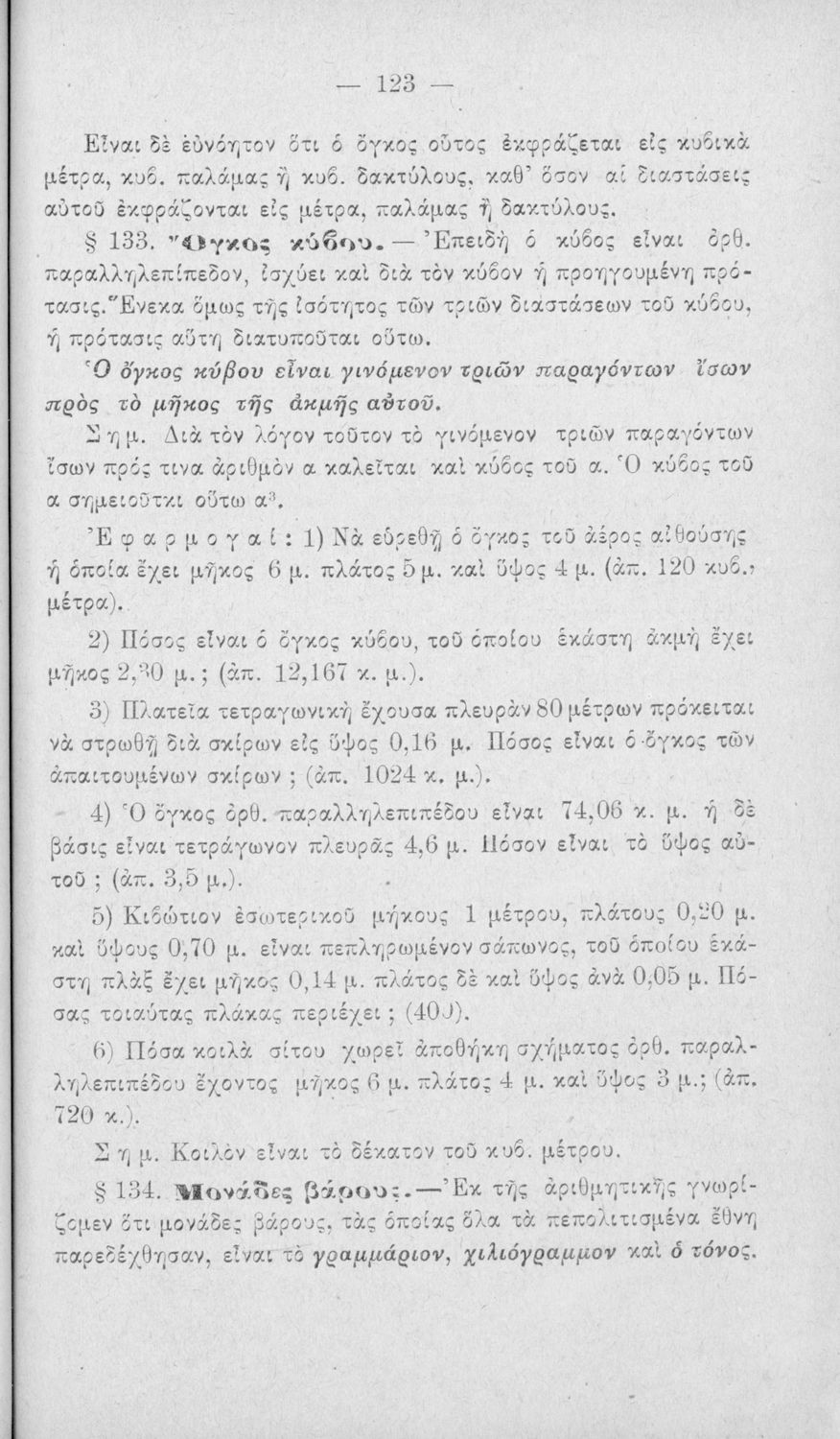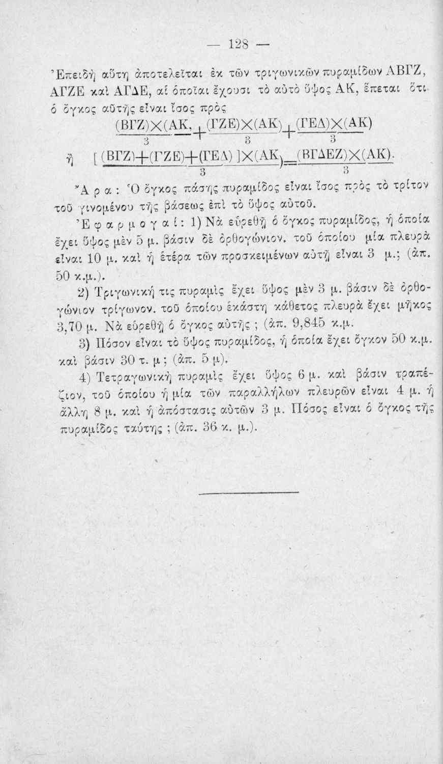 Σχολικό εγχειρίδιο Γεωμετρίας για τα Ελληνικά και Αστικά Σχολεία που περιέχει θεωρία και ασκήσεις και είναι χωρισμένο σε Επιπεδομετρία και Στερεομετρία.