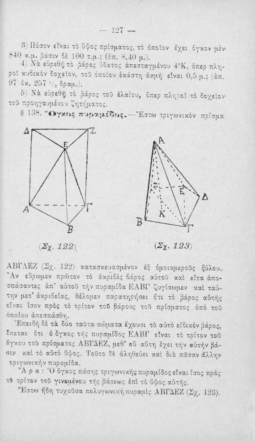 Σχολικό εγχειρίδιο Γεωμετρίας για τα Ελληνικά και Αστικά Σχολεία χωρισμένο σε Επιπεδομετρία και Στερεομετρία. Περιλαμβάνει προβλήματα και στοιχεία χωρομετρίας.