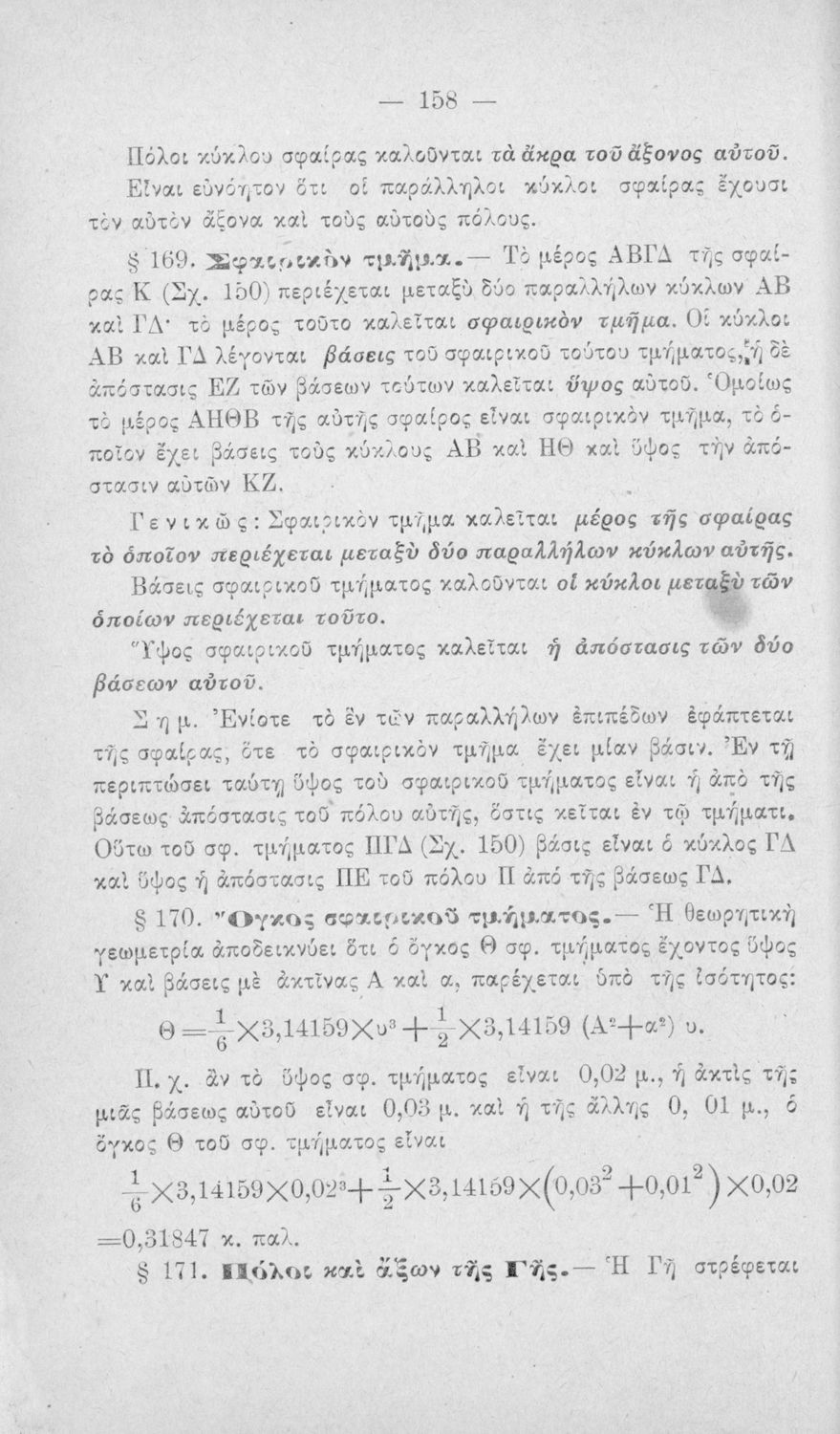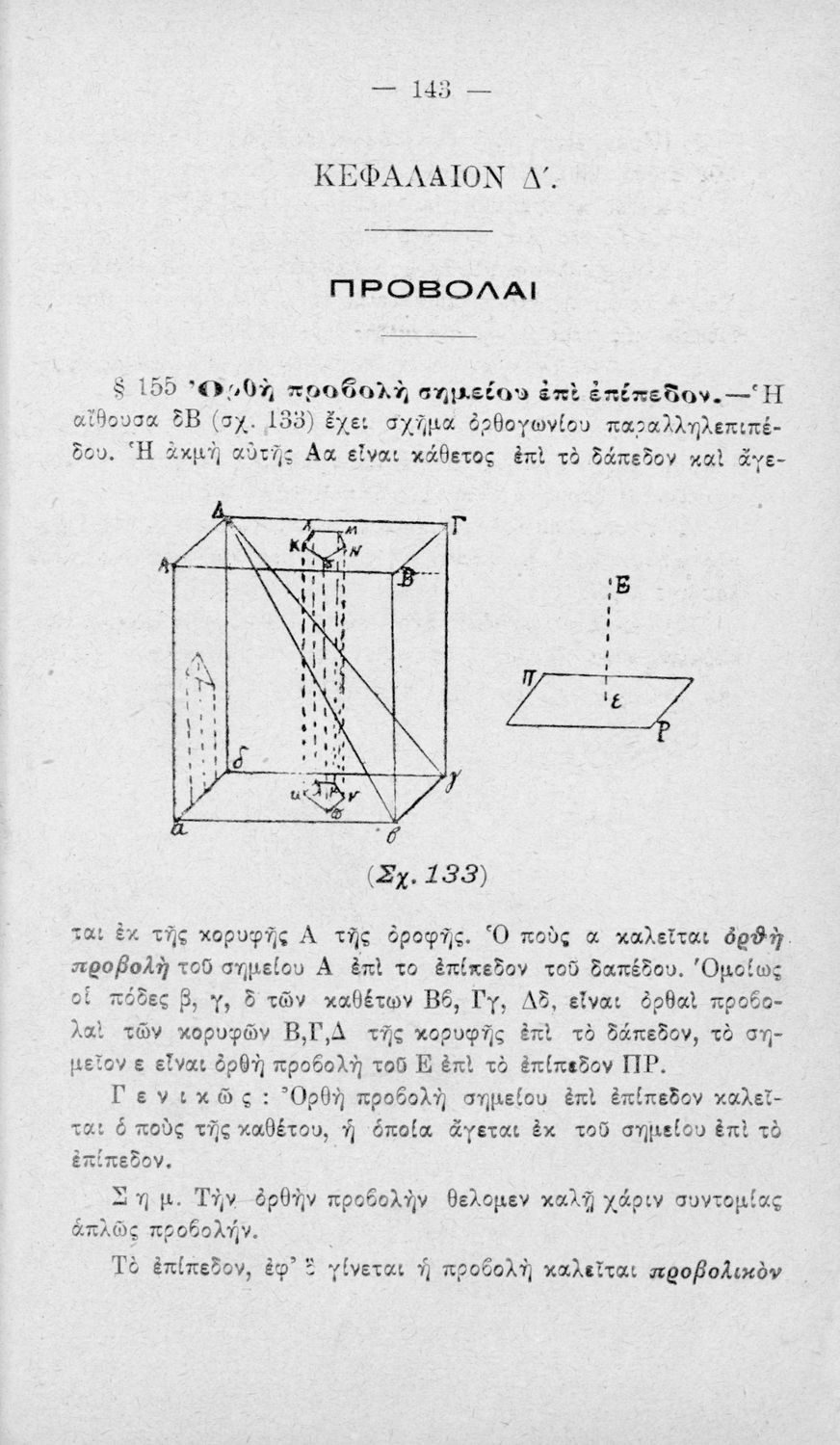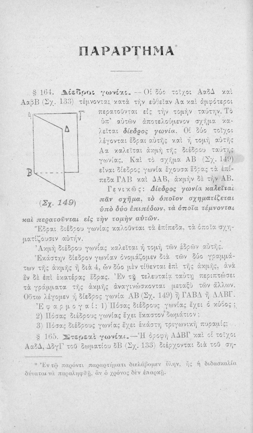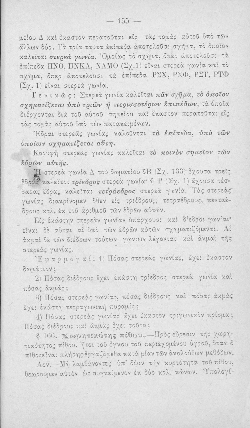 Σχολικό εγχειρίδιο Γεωμετρίας για την Α΄, Β΄ και Γ΄ τάξη των Ελληνικών και Αστικών Σχολείων και Παρθεναγωγείων που είναι χωρισμένο σε Επιπεδομετρία και Στερεομετρία και περιλαμβάνει θεωρία και ασκήσεις.