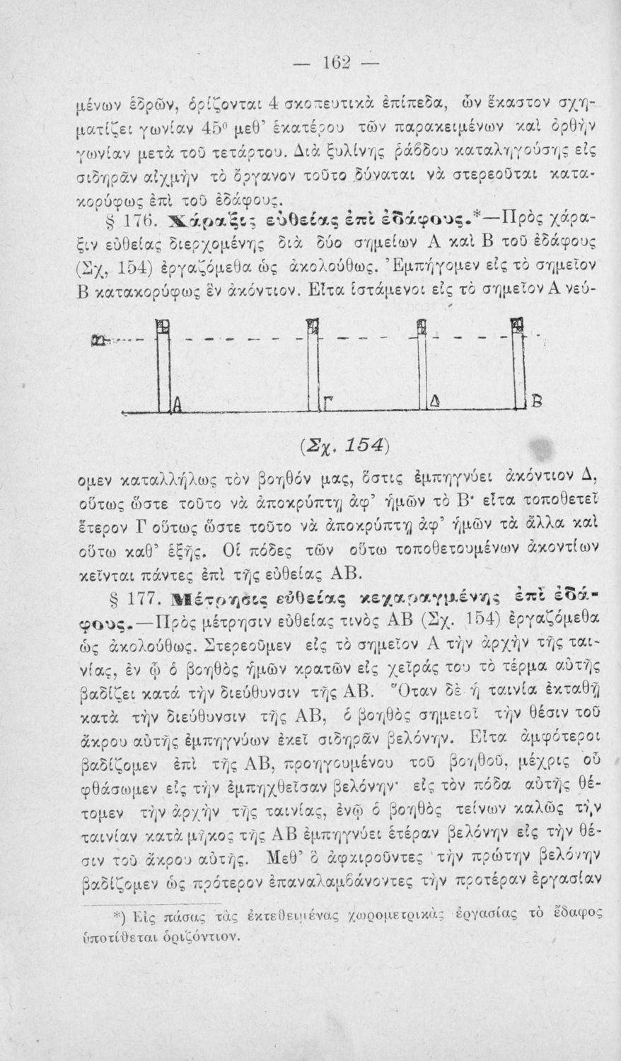 Σχολικό εγχειρίδιο Γεωμετρίας για τα Ελληνικά και Αστικά Σχολεία χωρισμένο σε Επιπεδομετρία και Στερεομετρία. Περιλαμβάνει προβλήματα και στοιχεία χωρομετρίας.