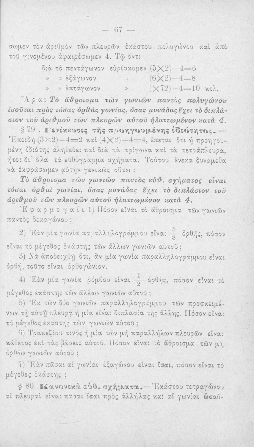 Σχολικό εγχειρίδιο Γεωμετρίας για την Α΄, Β΄ και Γ΄ τάξη των Ελληνικών και Αστικών Σχολείων και Παρθεναγωγείων που είναι χωρισμένο σε Επιπεδομετρία και Στερεομετρία και περιλαμβάνει θεωρία και ασκήσεις.