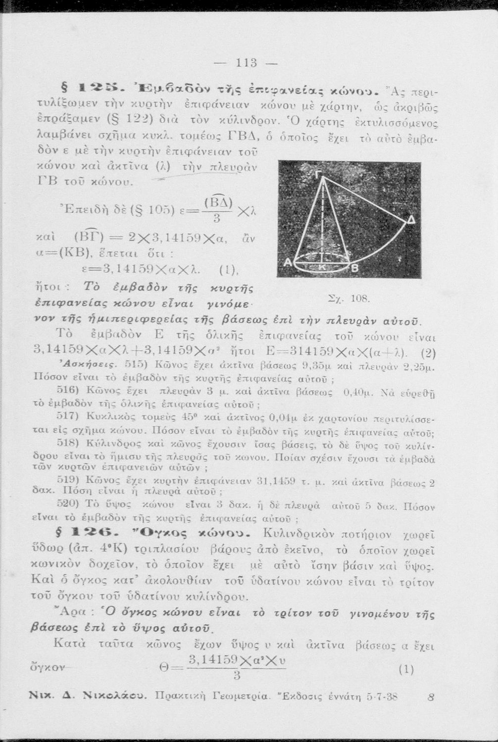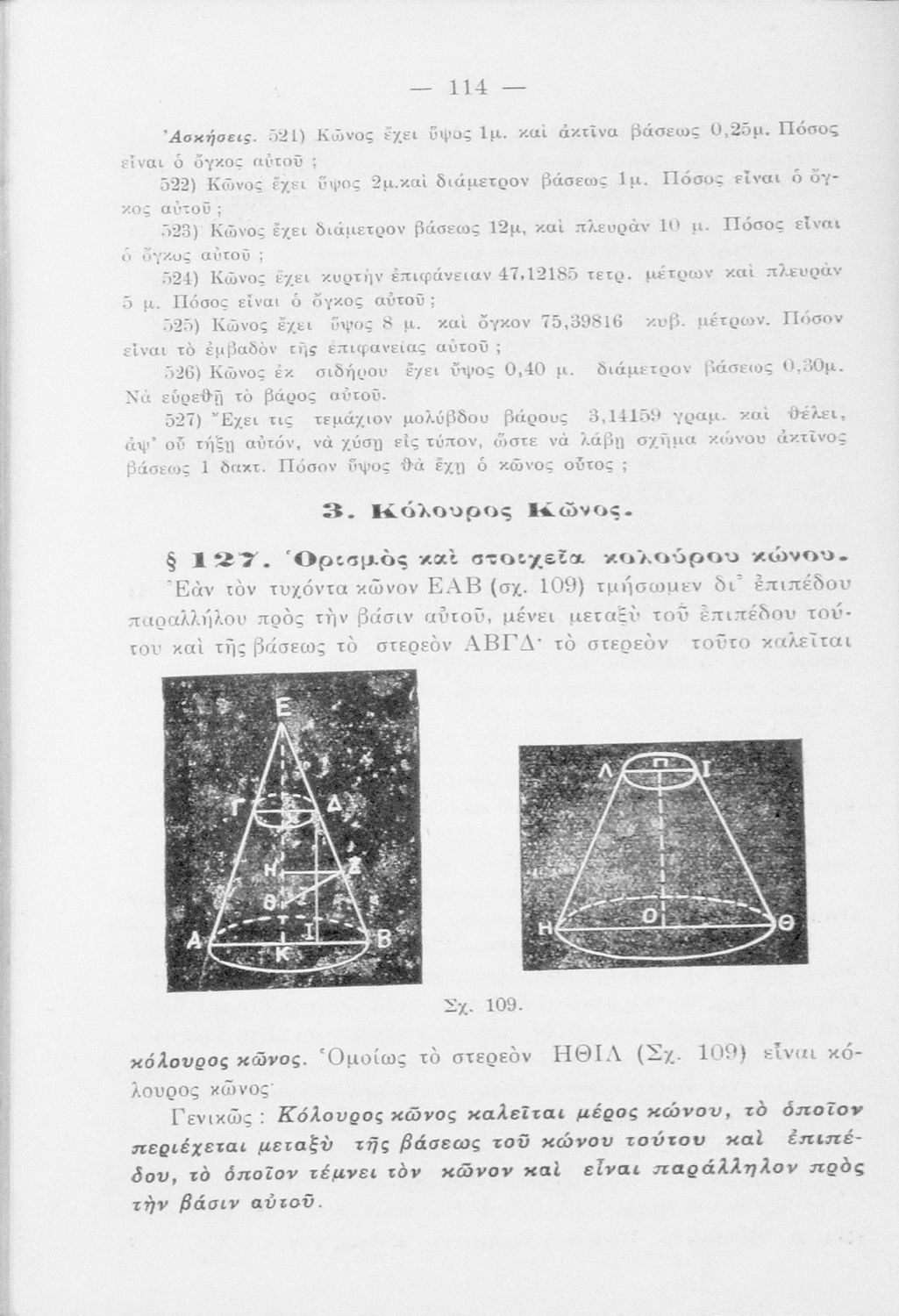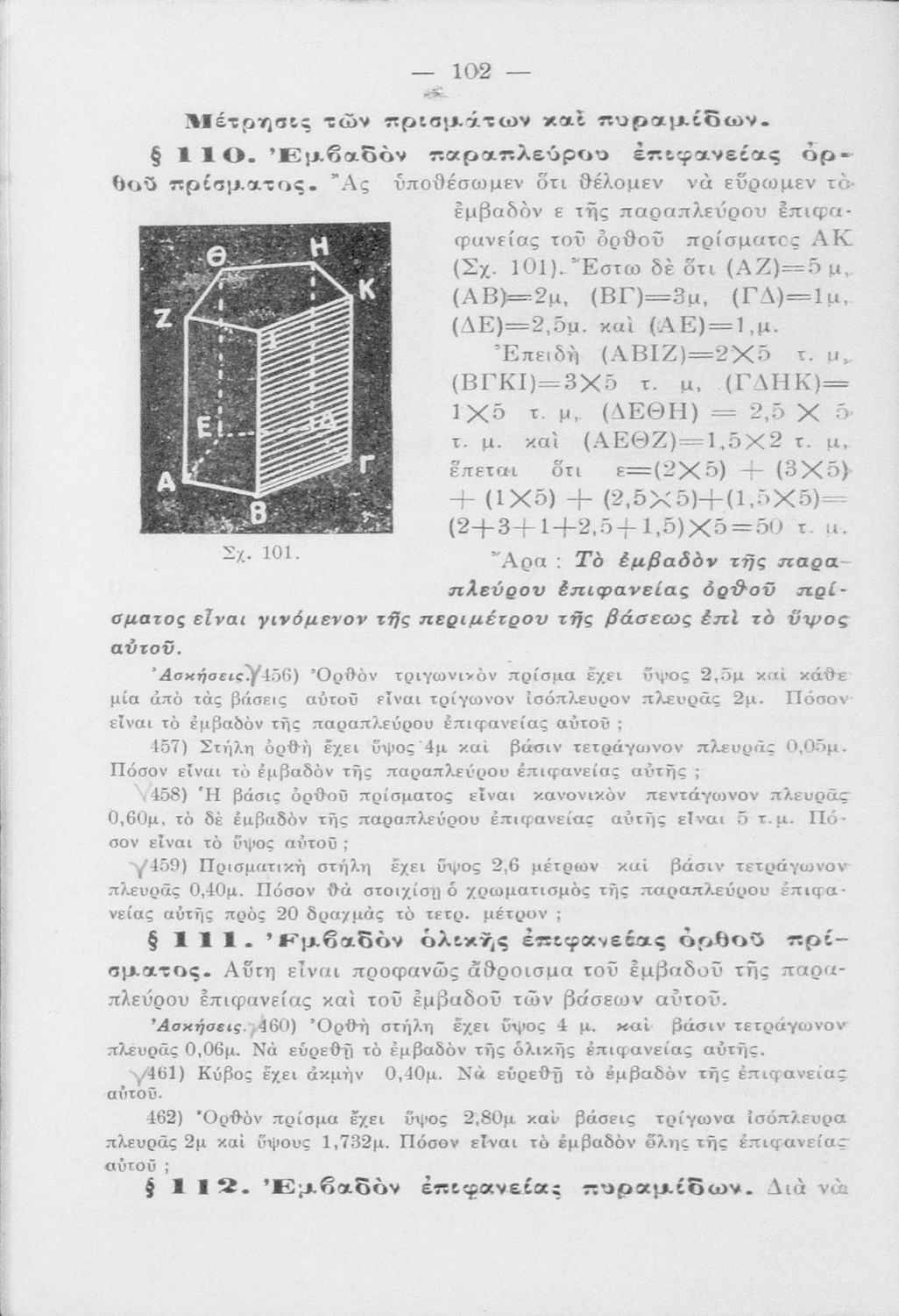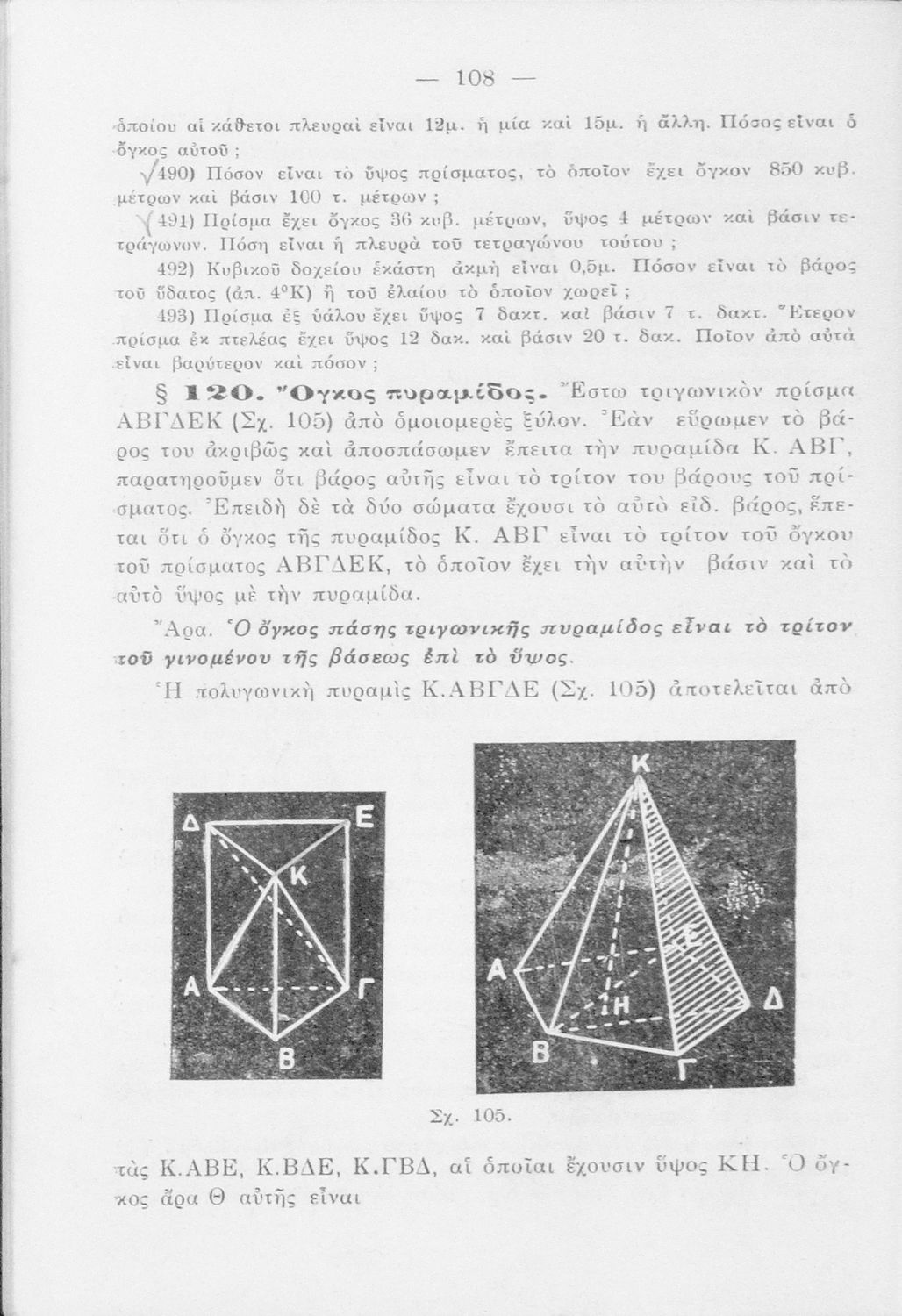 Σχολικό εγχειρίδιο Γεωμετρίας για τα Ημιγυμνάσια και τις κατώτερες τάξεις των Γυμνασίων που περιλαμβάνει ορισμούς και ασκήσεις και είναι χωρισμένο σε Επιπεδομετρία και Στερεομετρία.