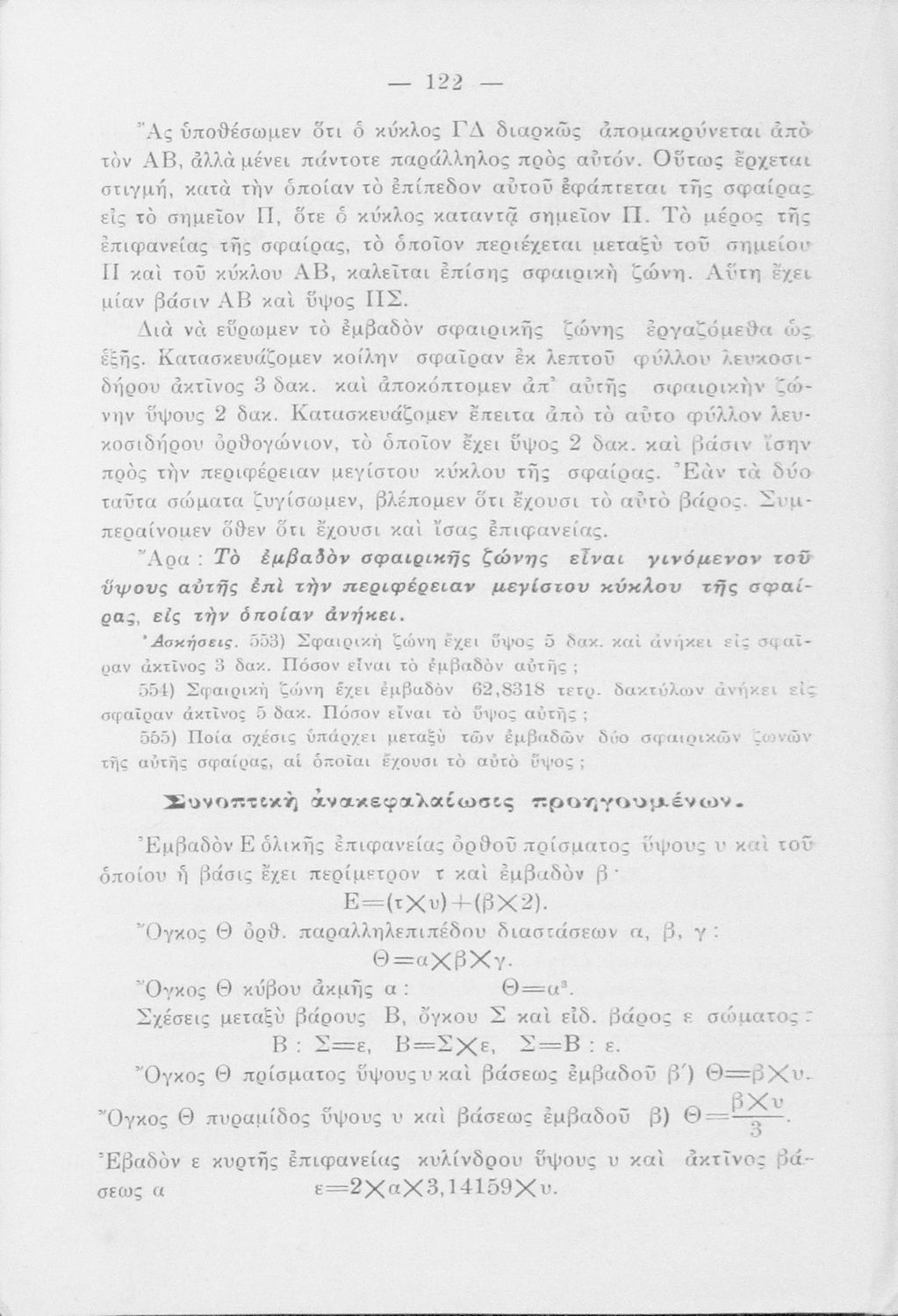 Σχολικό εγχειρίδιο Γεωμετρίας για την Α΄, Β΄ και Γ΄ τάξη των Ελληνικών και Αστικών Σχολείων και Παρθεναγωγείων που είναι χωρισμένο σε Επιπεδομετρία και Στερεομετρία και περιλαμβάνει θεωρία και ασκήσεις.