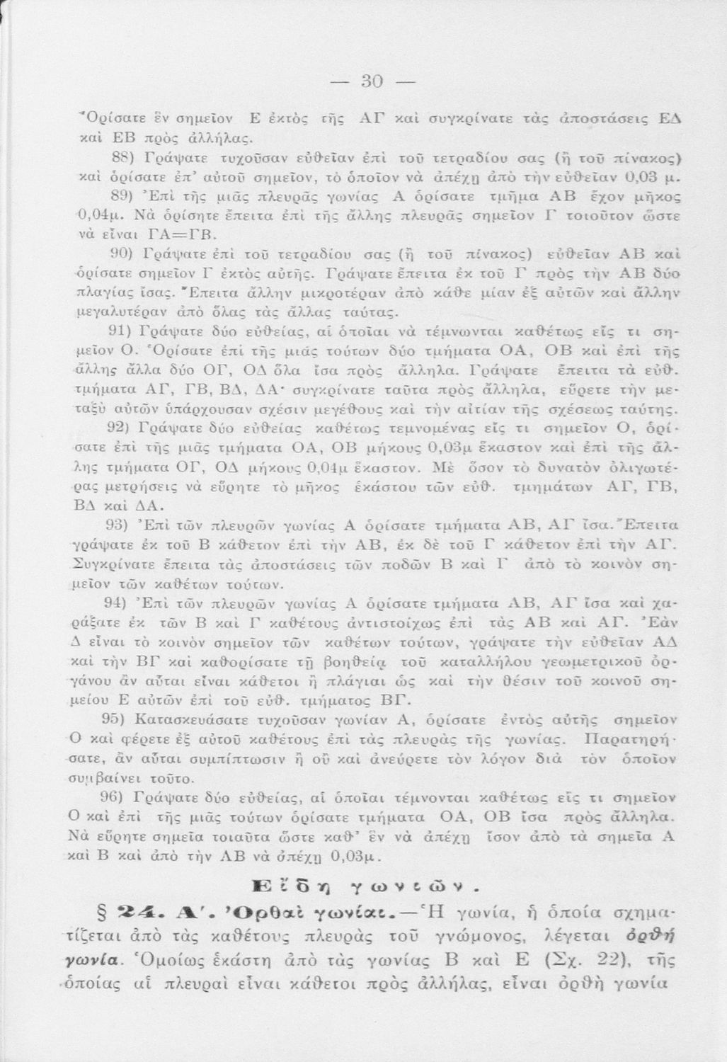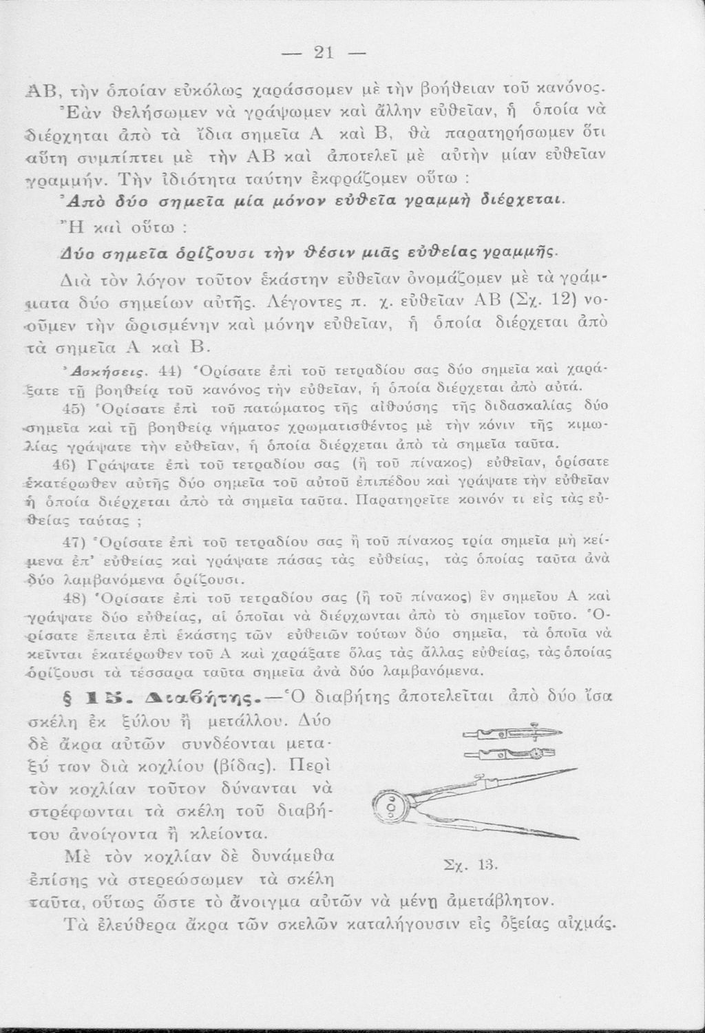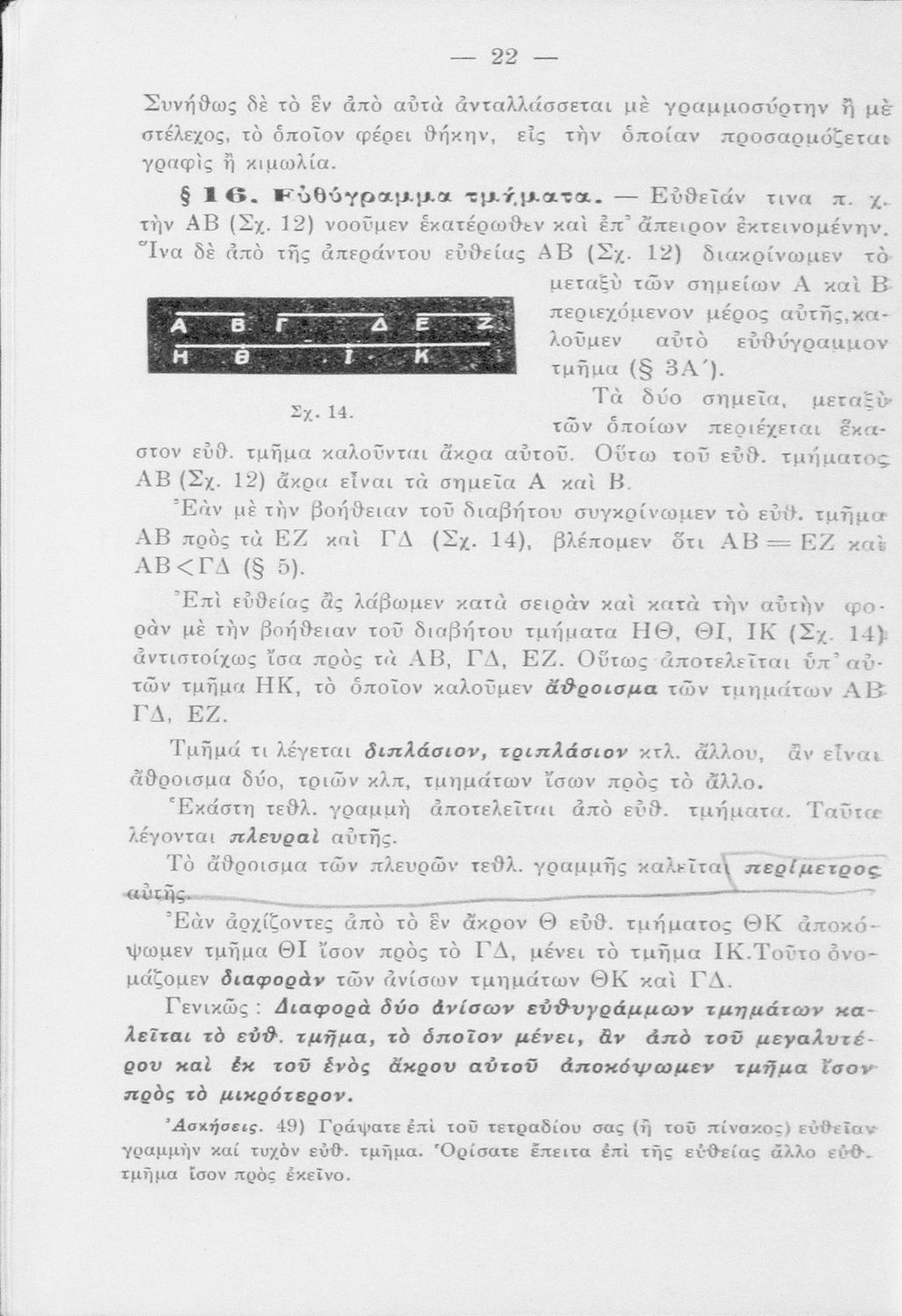 Σχολικό εγχειρίδιο Γεωμετρίας για την Α΄, Β΄ και Γ΄ τάξη των Ελληνικών και Αστικών Σχολείων και Παρθεναγωγείων που είναι χωρισμένο σε Επιπεδομετρία και Στερεομετρία και περιλαμβάνει θεωρία και ασκήσεις.