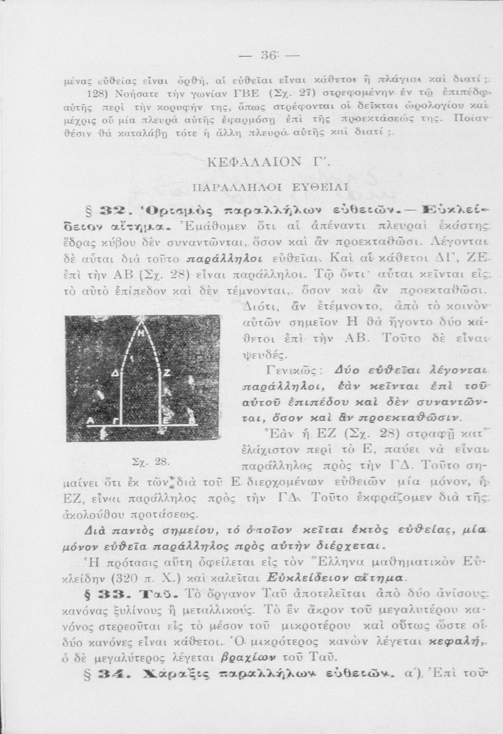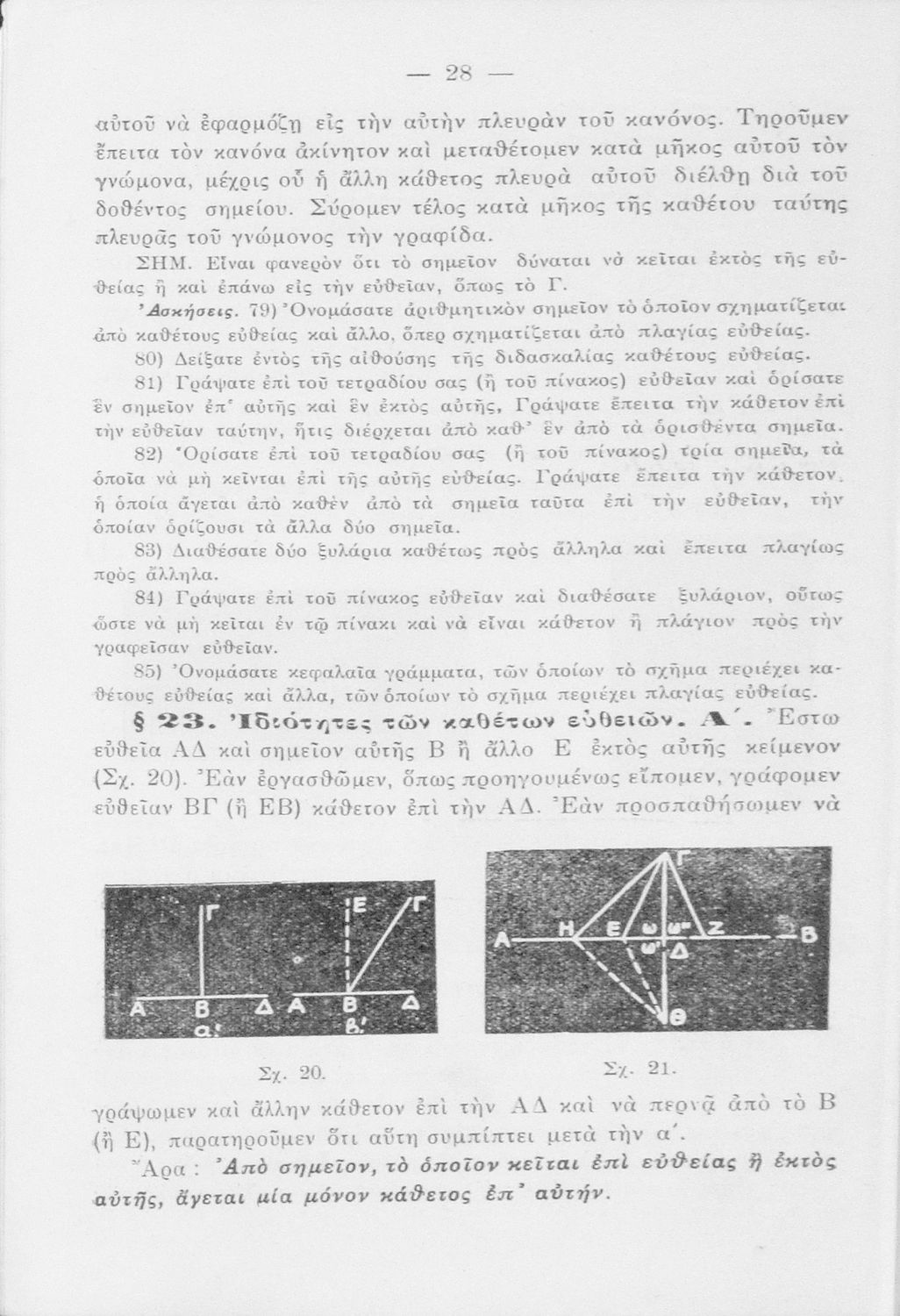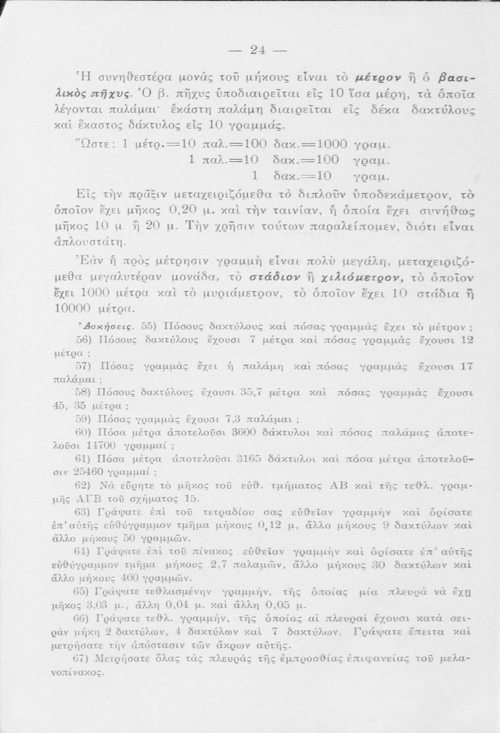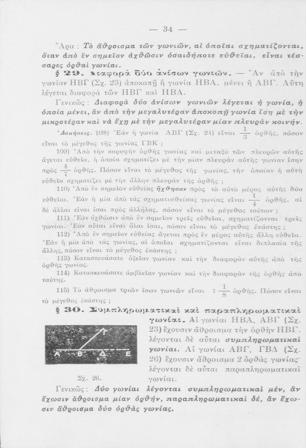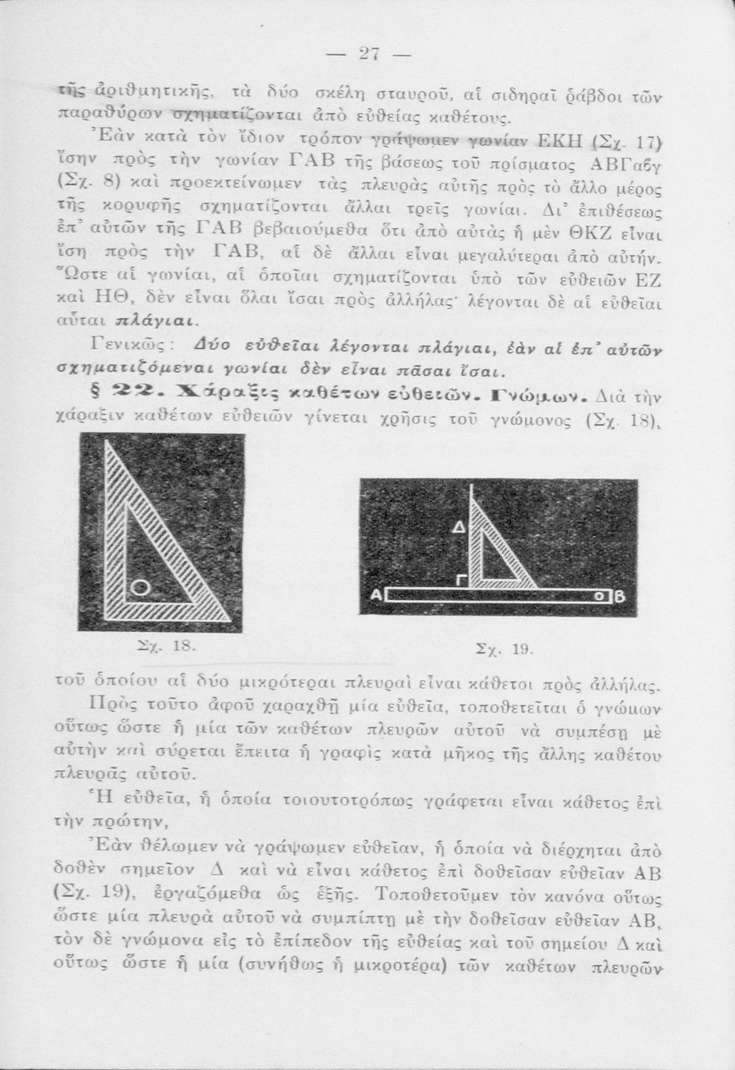 Σχολικό εγχειρίδιο Γεωμετρίας για τα Ημιγυμνάσια και τις κατώτερες τάξεις των Γυμνασίων που περιλαμβάνει ορισμούς και ασκήσεις και είναι χωρισμένο σε Επιπεδομετρία και Στερεομετρία.