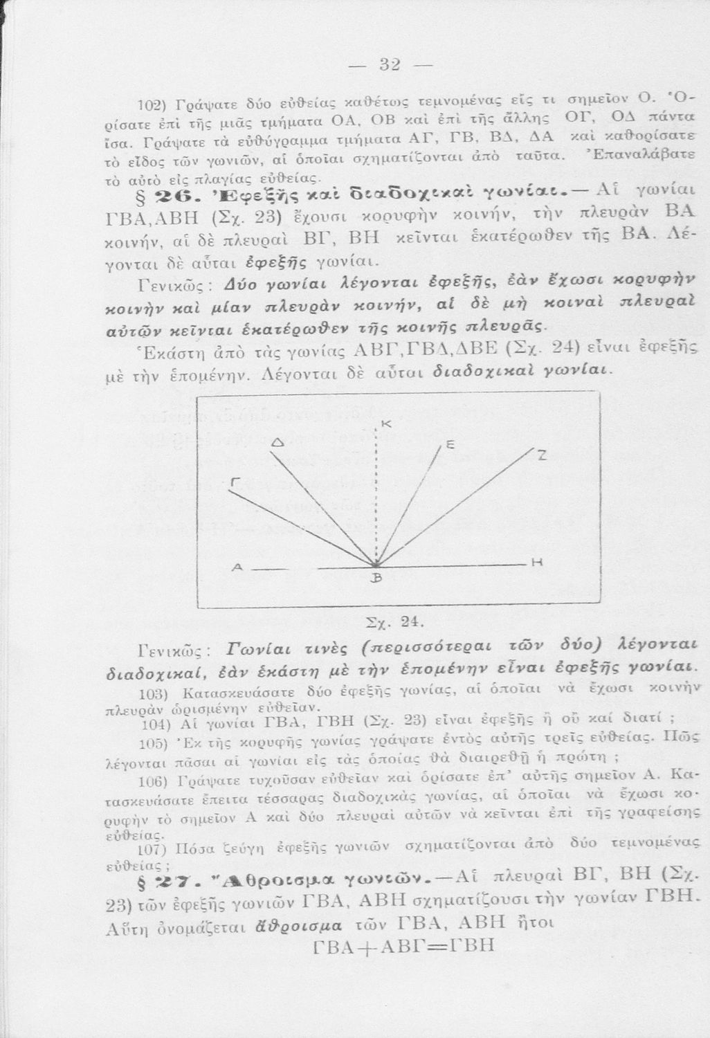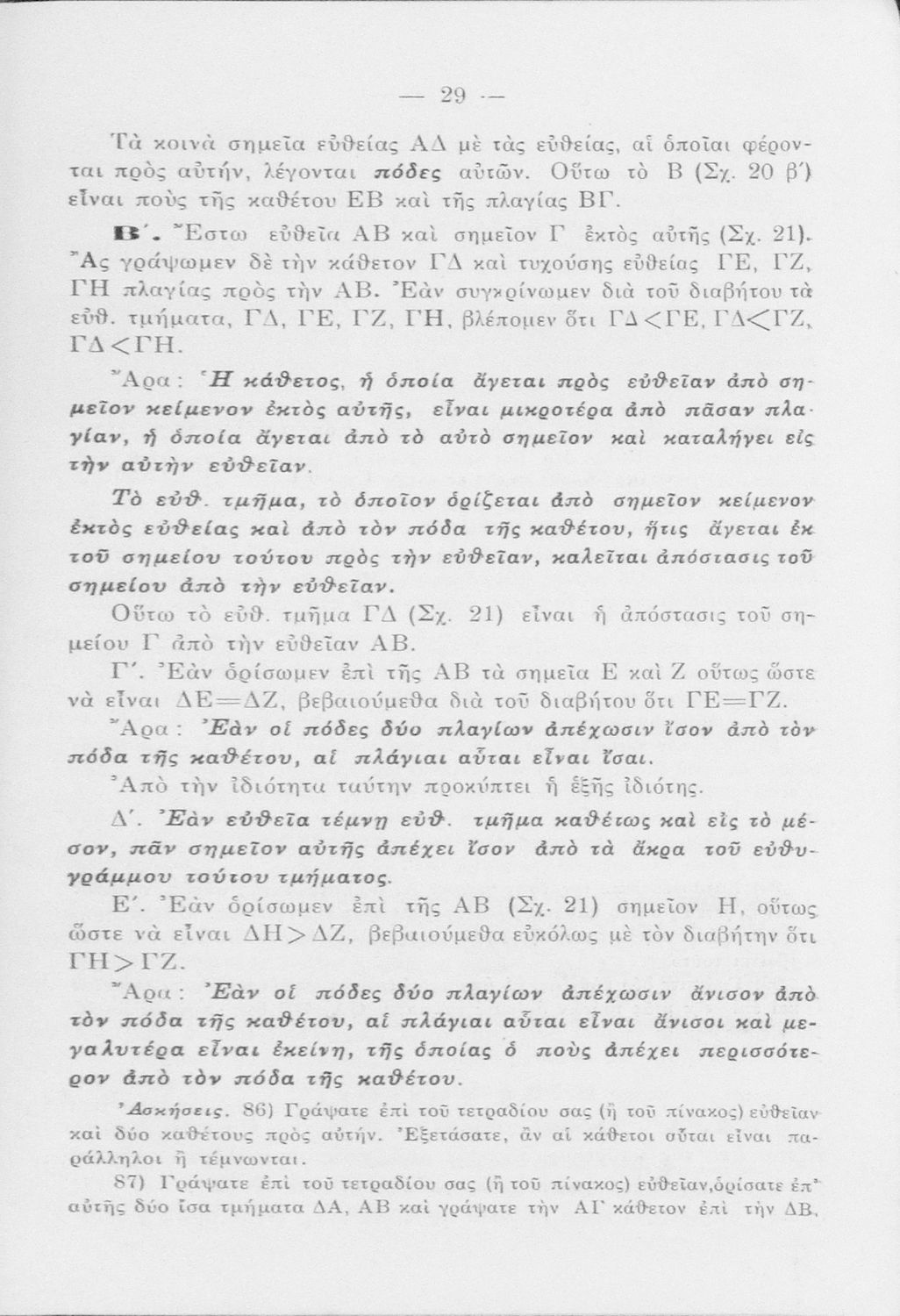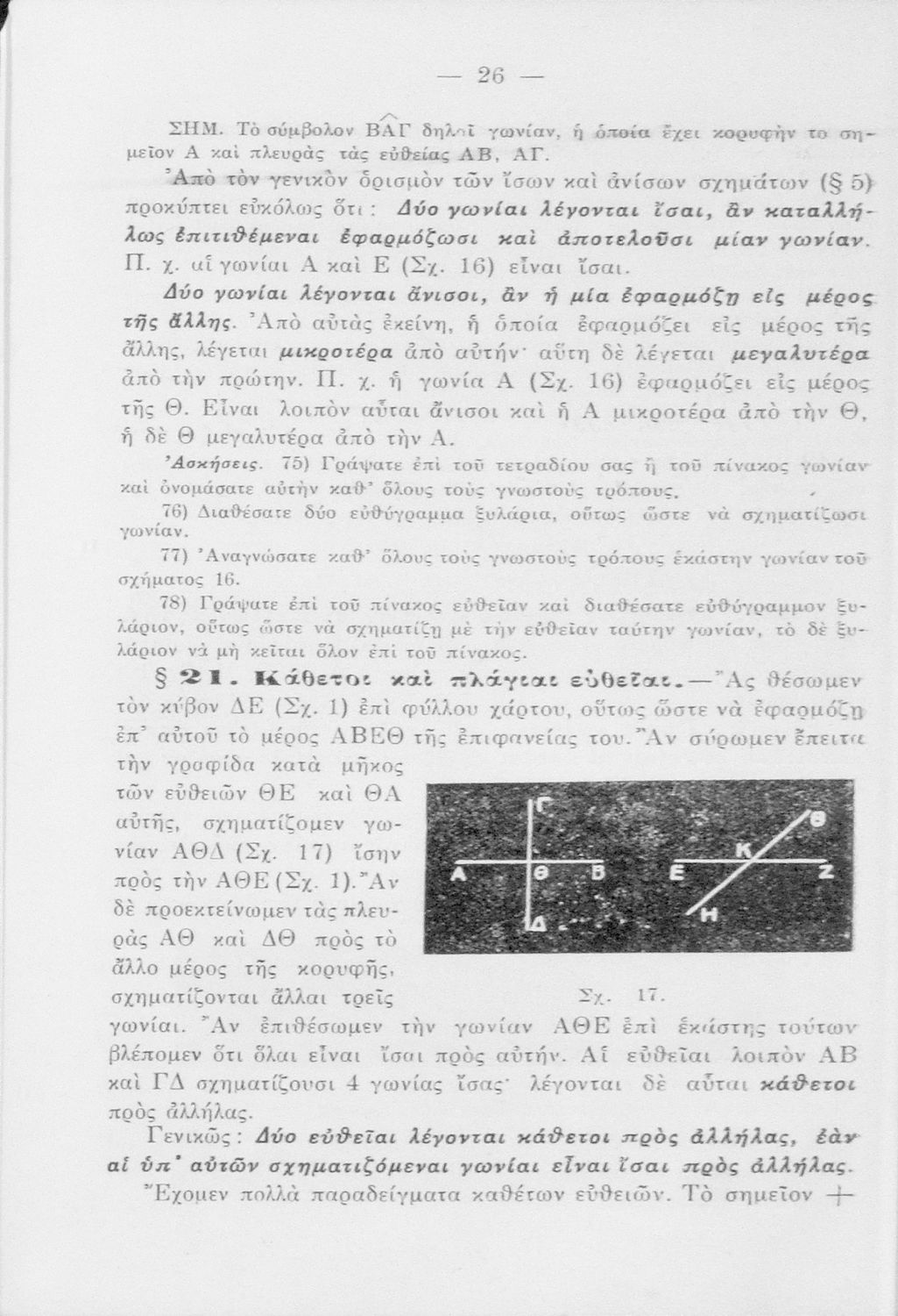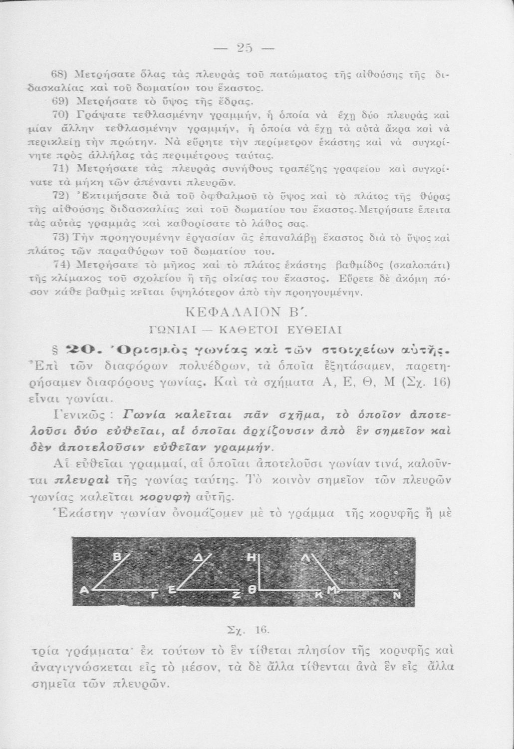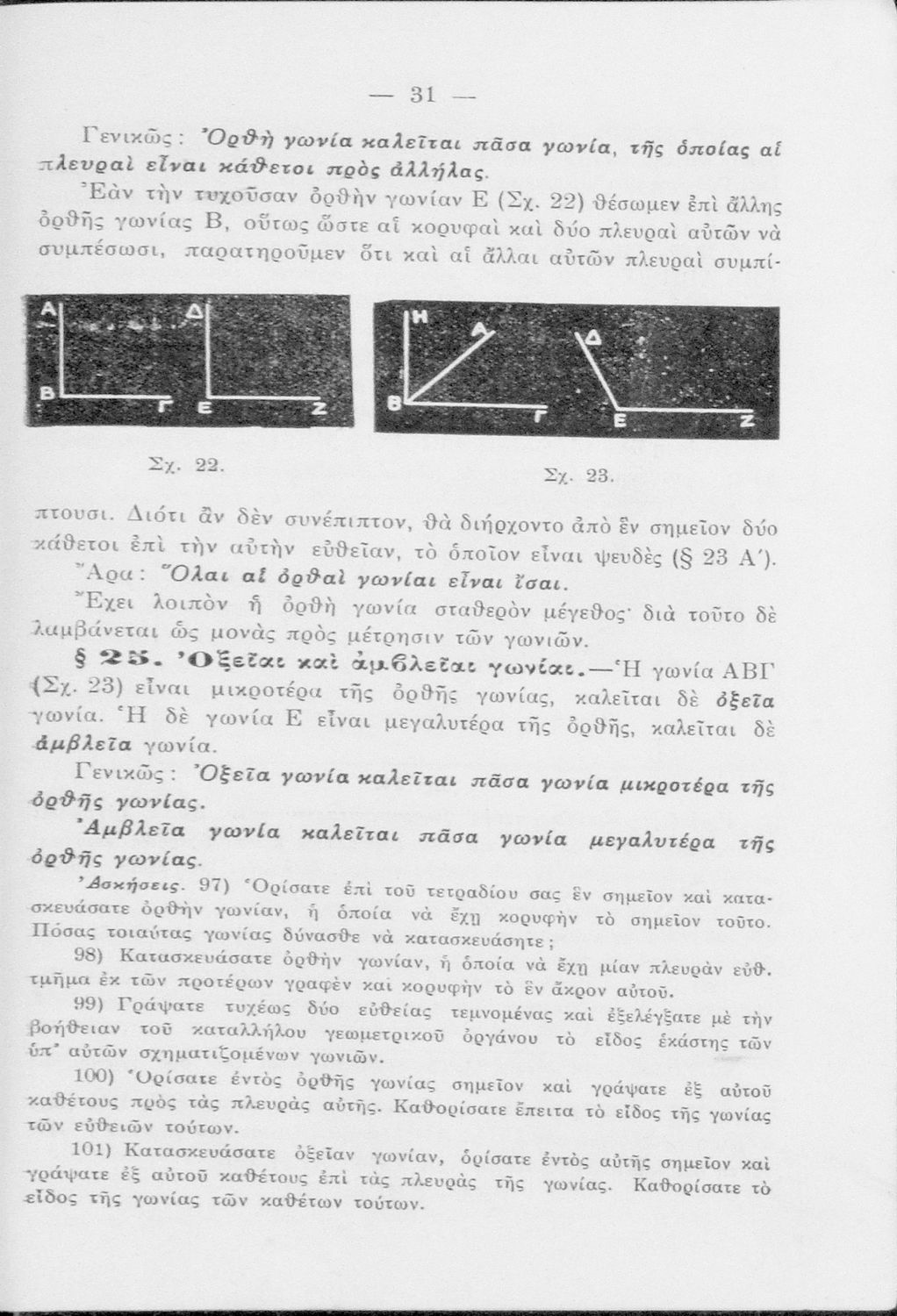 Σχολικό εγχειρίδιο Γεωμετρίας για τα Ημιγυμνάσια και τις κατώτερες τάξεις των Γυμνασίων που περιλαμβάνει ορισμούς και ασκήσεις και είναι χωρισμένο σε Επιπεδομετρία και Στερεομετρία.
