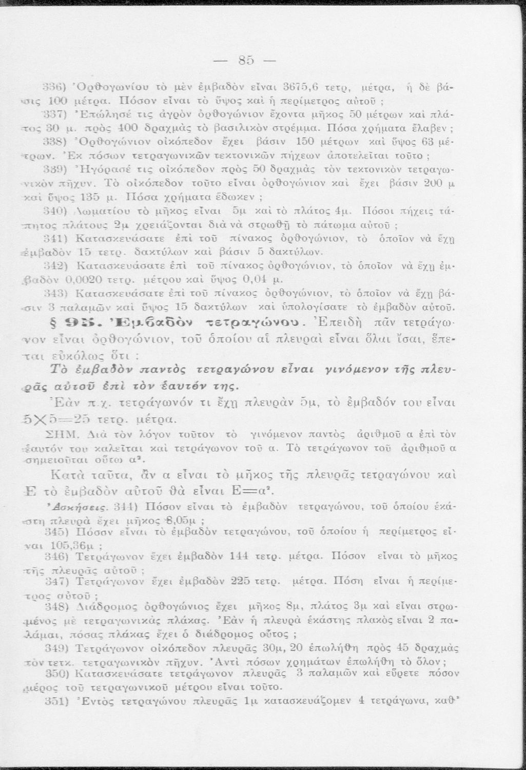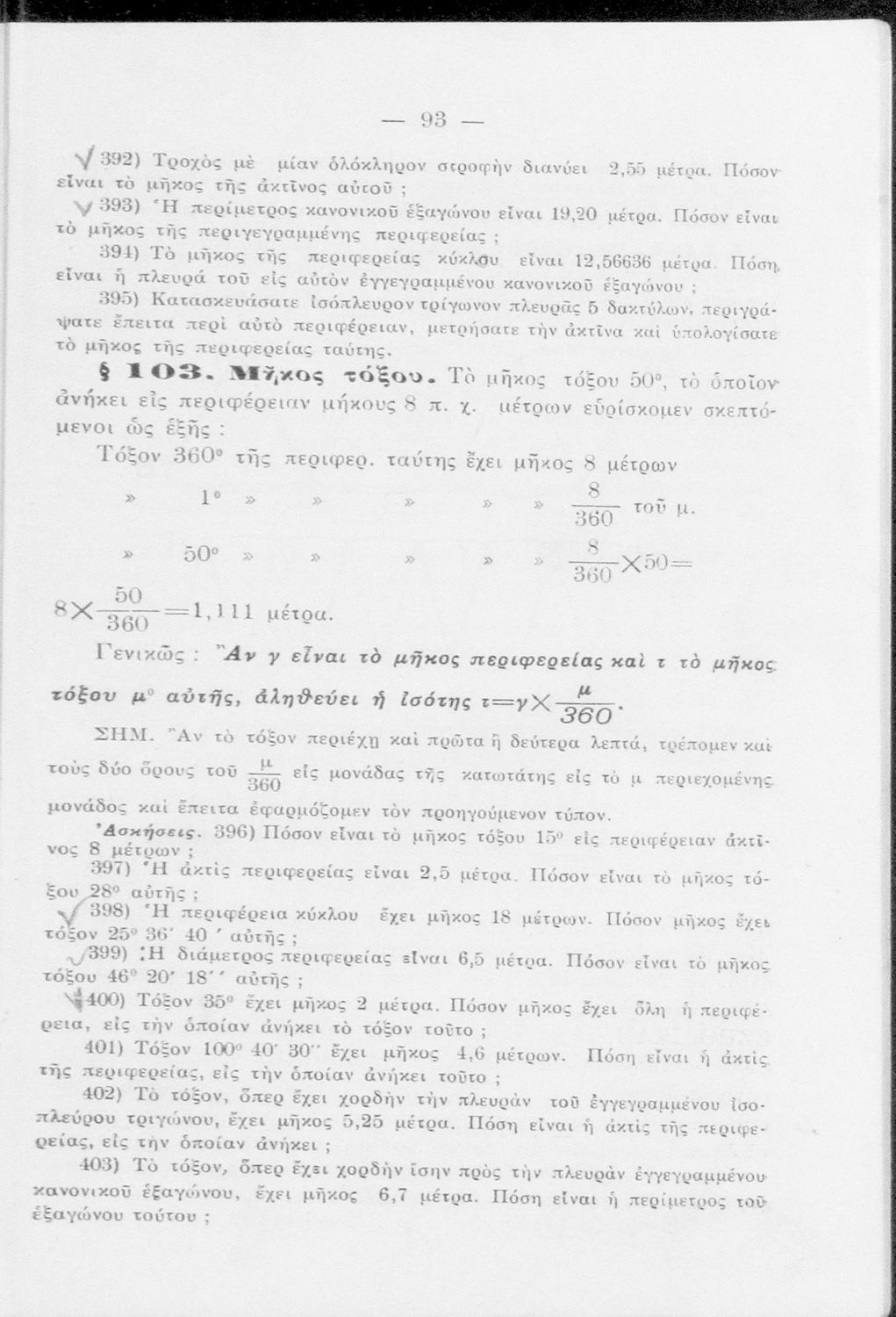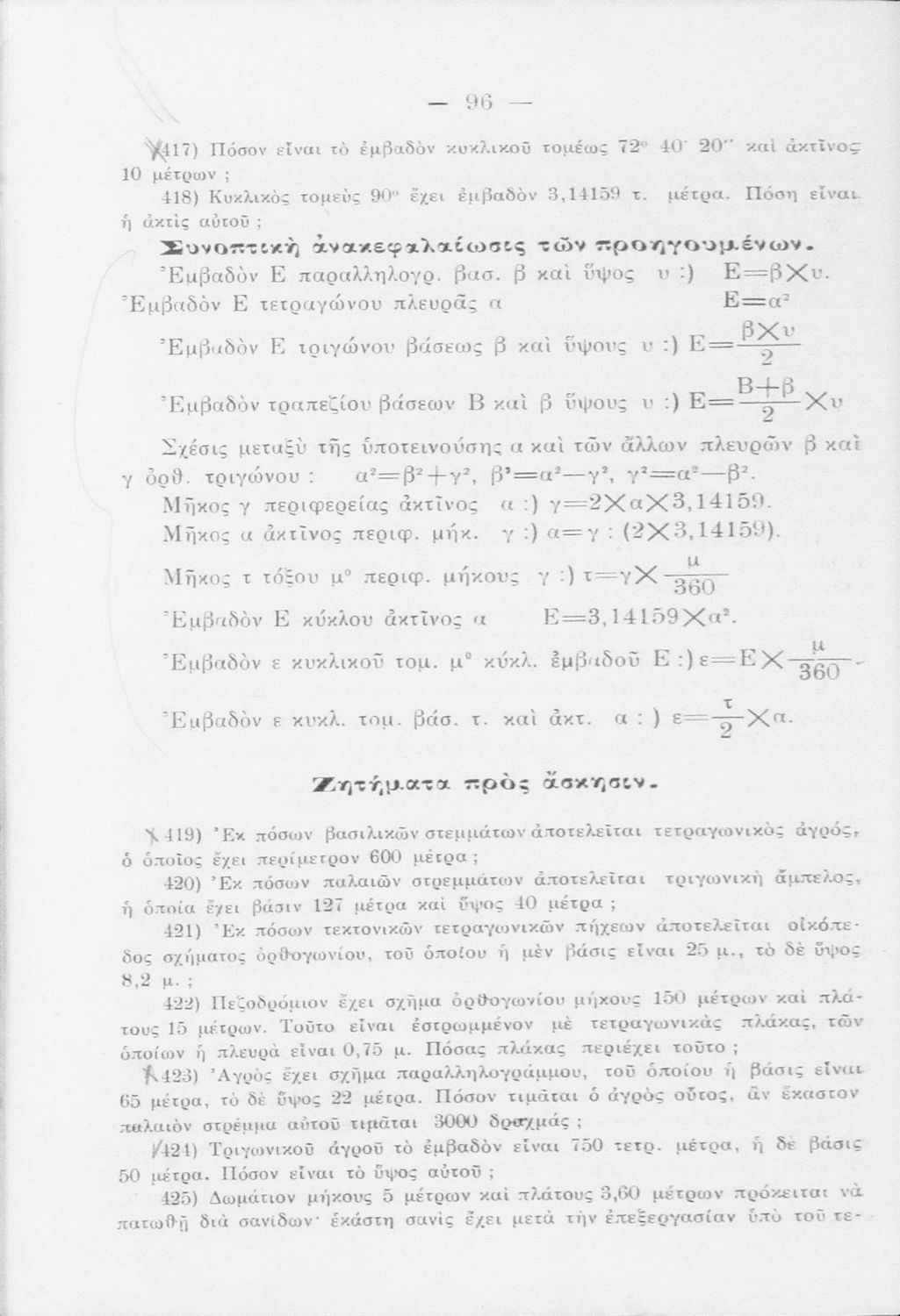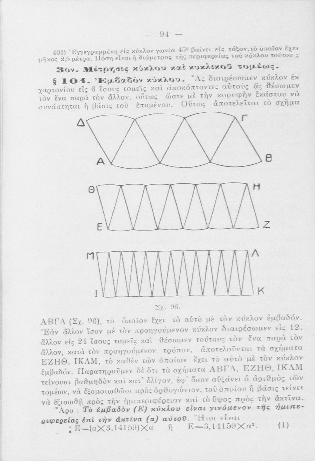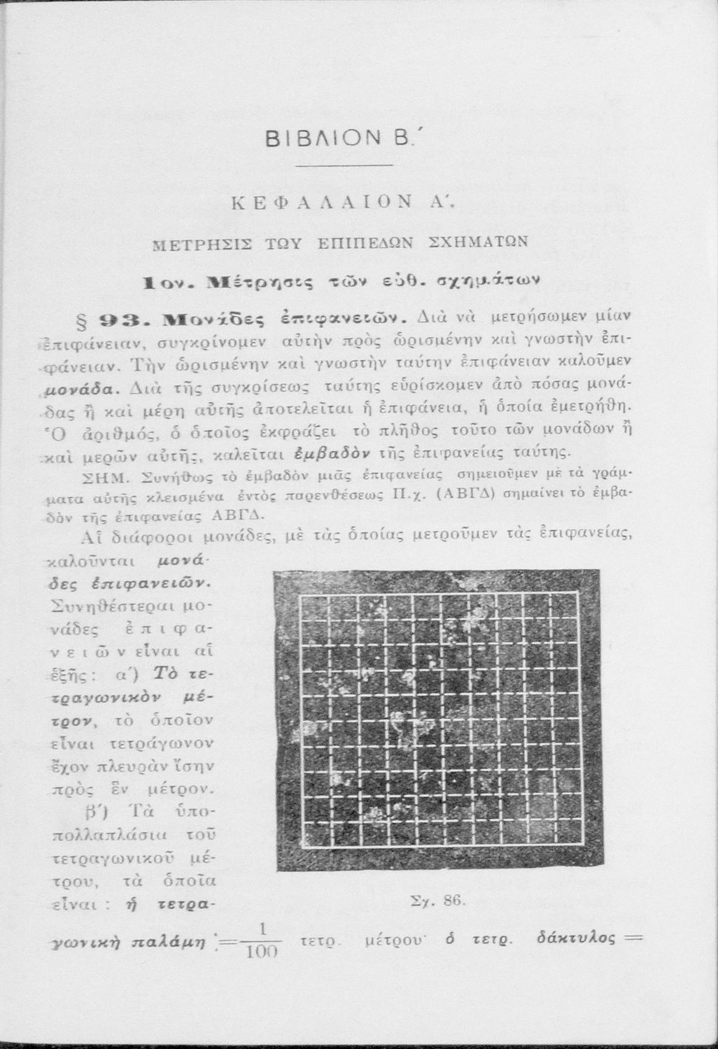 Σχολικό εγχειρίδιο Γεωμετρίας για την Α΄, Β΄ και Γ΄ τάξη των Ελληνικών και Αστικών Σχολείων και Παρθεναγωγείων που είναι χωρισμένο σε Επιπεδομετρία και Στερεομετρία και περιλαμβάνει θεωρία και ασκήσεις.