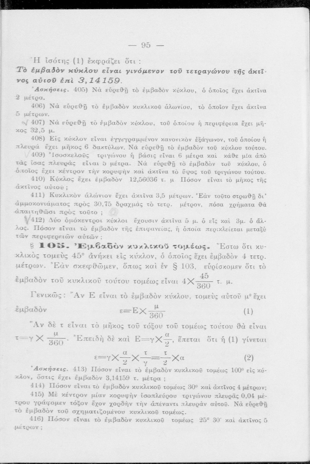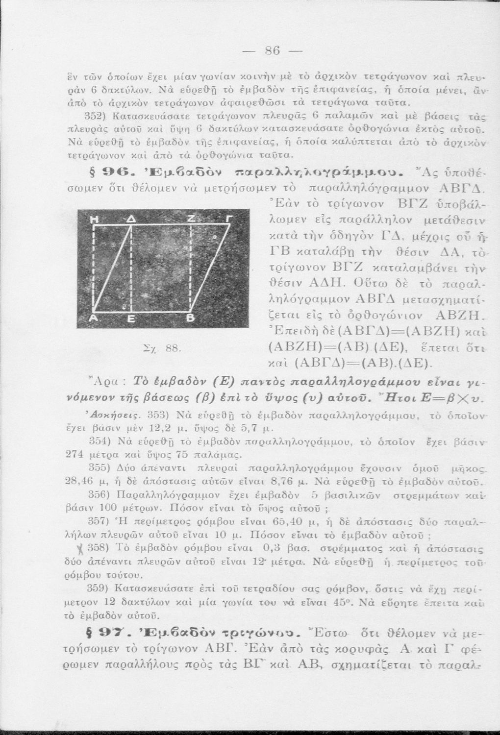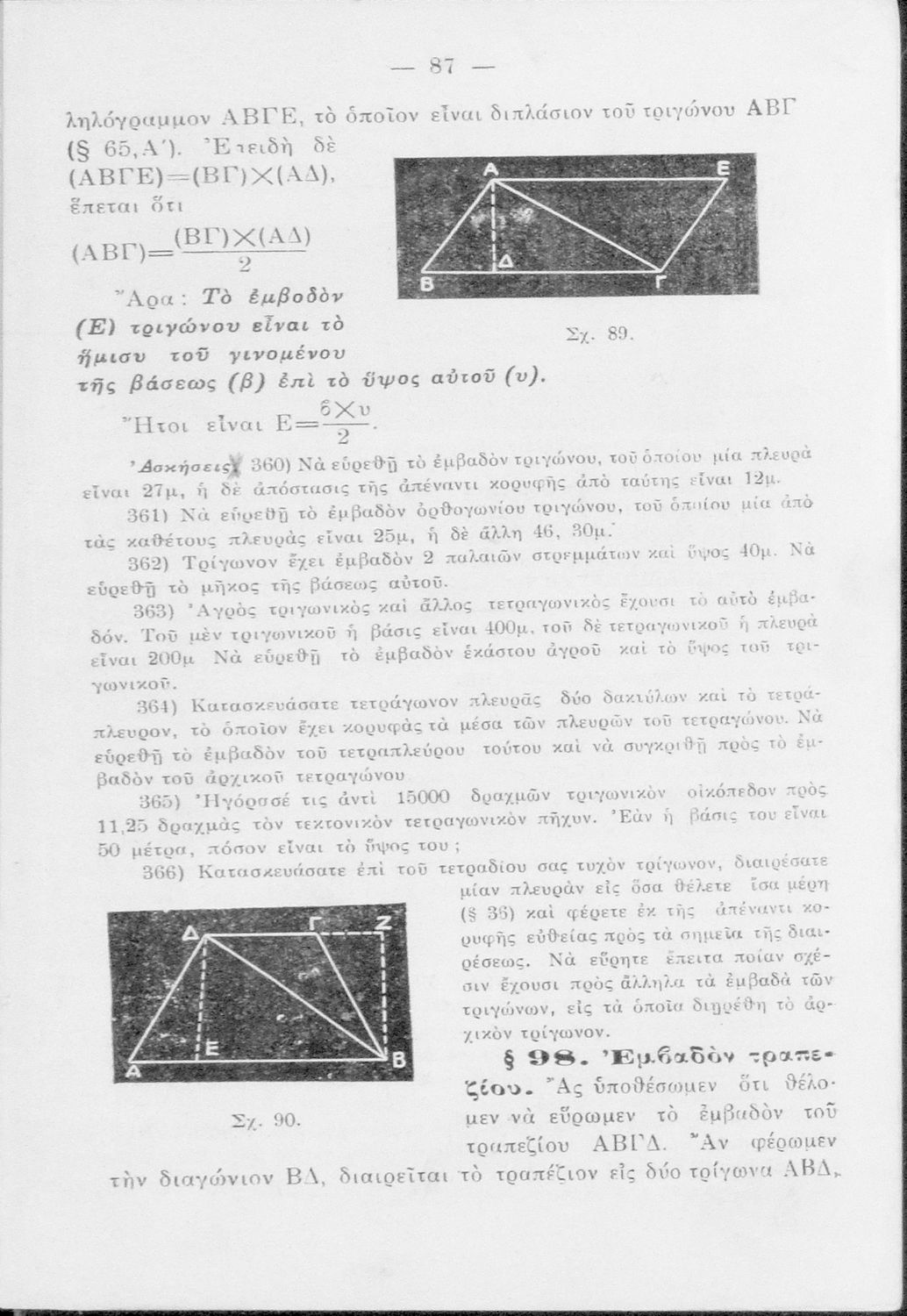 Σχολικό εγχειρίδιο Γεωμετρίας για τα Ελληνικά και Αστικά Σχολεία που περιέχει θεωρία και ασκήσεις και είναι χωρισμένο σε Επιπεδομετρία και Στερεομετρία.