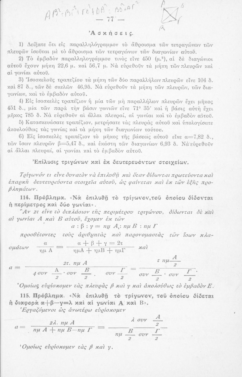 Επίπεδος τριγωνομετρία δια τα Γυμνάσια μετά 49 σχημάτων εν τω κειμένω