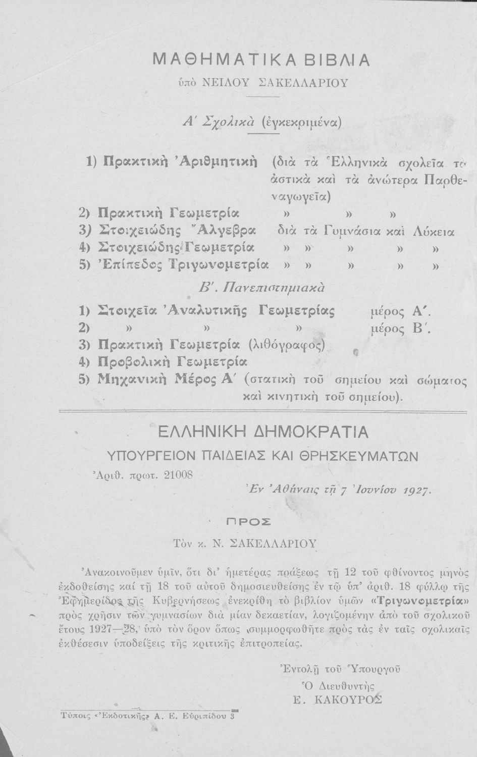 Υπουργική απόφαση / Σύμβαση: 21008/7-6-1927