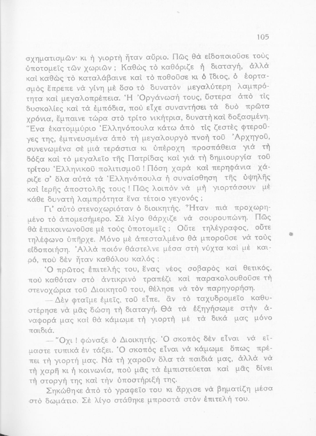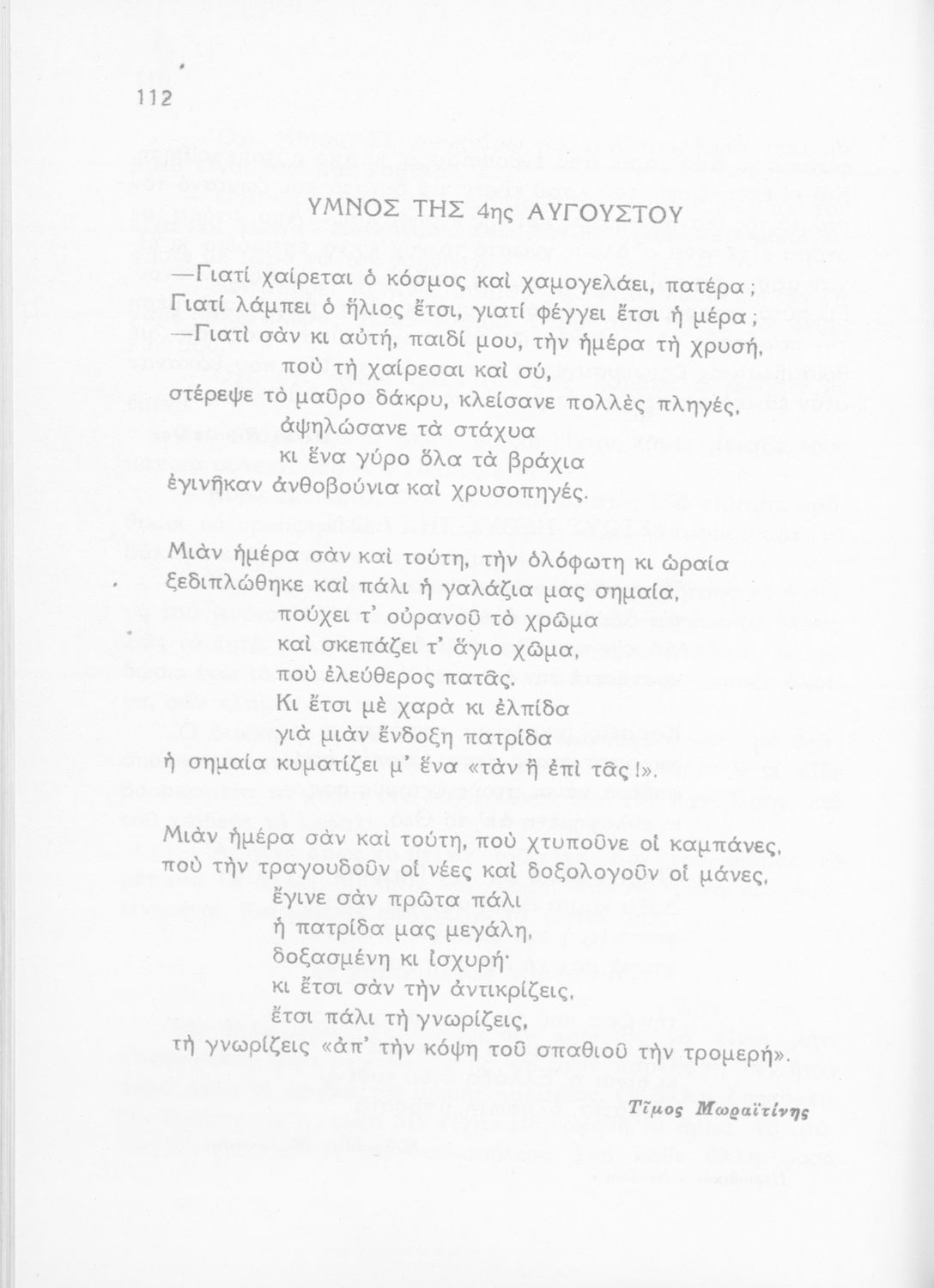 Σχολικό εγχειρίδιο Νέων Ελληνικών Δ΄ Γυμνασίου και Β΄ Αστικού Σχολείου που περιέχει πεζά και ποιήματα Ελλήνων συγγραφέων εμπνευσμένα από τη θρησκευτική και κοινωνική ζωή, την ελληνική μυθολογία, την αρχαία και σύγχρονη ελληνική ιστορία, και την ελληνική φύση. Περιέχει παράρτημα με μεταφράσεις κειμένων αρχαίων ελλήνων συγγραφέων και αποσπάσματα από τη μεσαιωνική γραμματεία, βιογραφίες των συγγραφέων και λεξιλόγιο.
