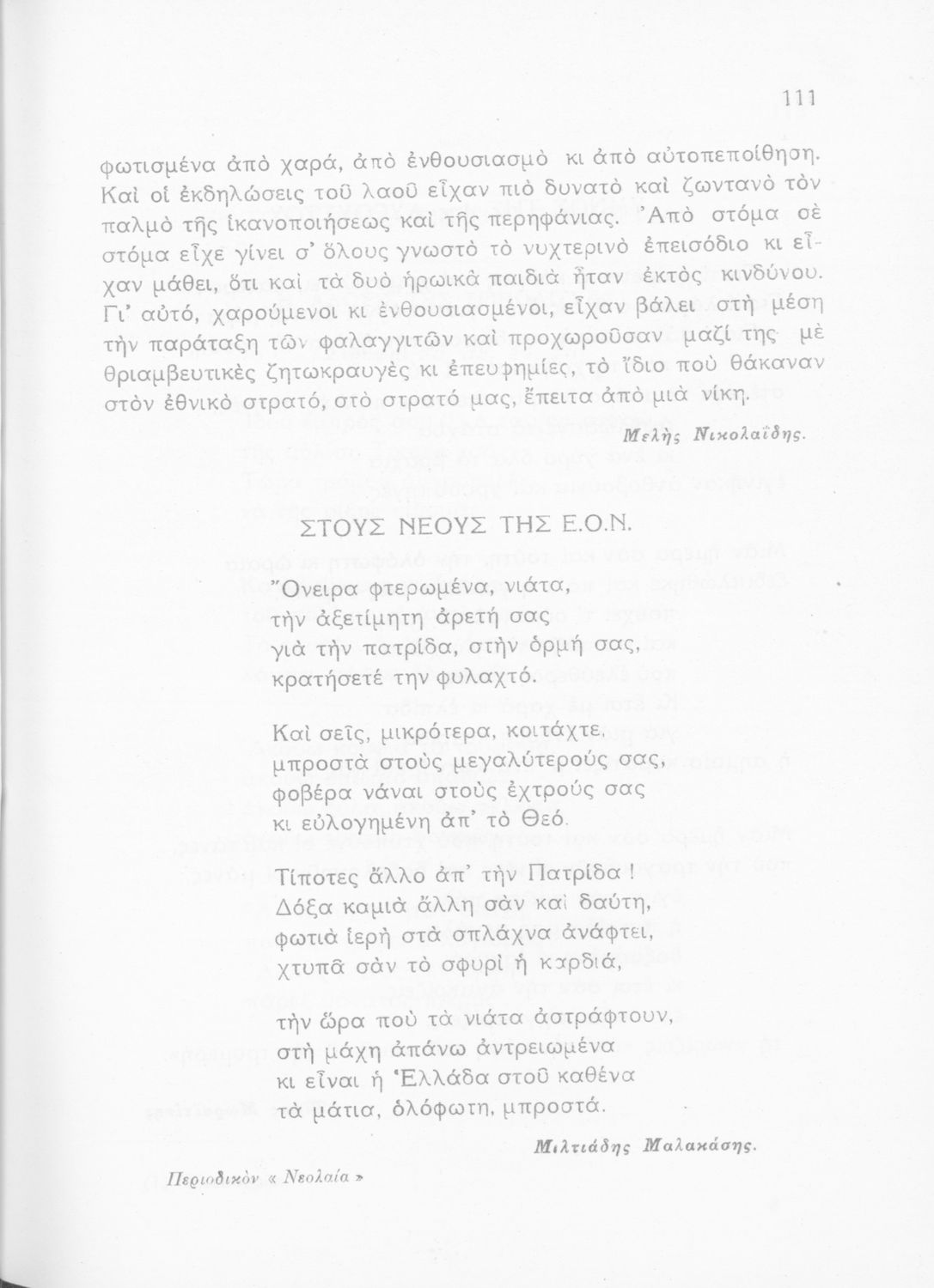 Σχολικό εγχειρίδιο Νέων Ελληνικών Β΄ Τετραταξίου Γυμνασίου και Γ΄ Αστικού Σχολείου Θηλέων που περιλαμβάνει ποιήματα και πεζά Ελλήνων συγγραφέων εμπνευσμένα από την σύγχρονη ελληνική ιστορία. Περιέχει και ...