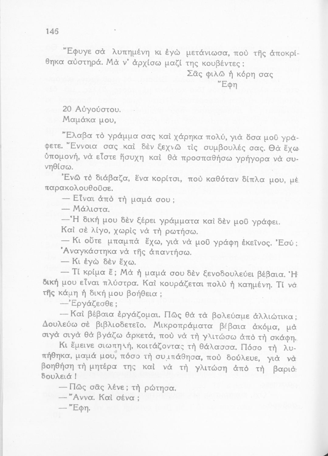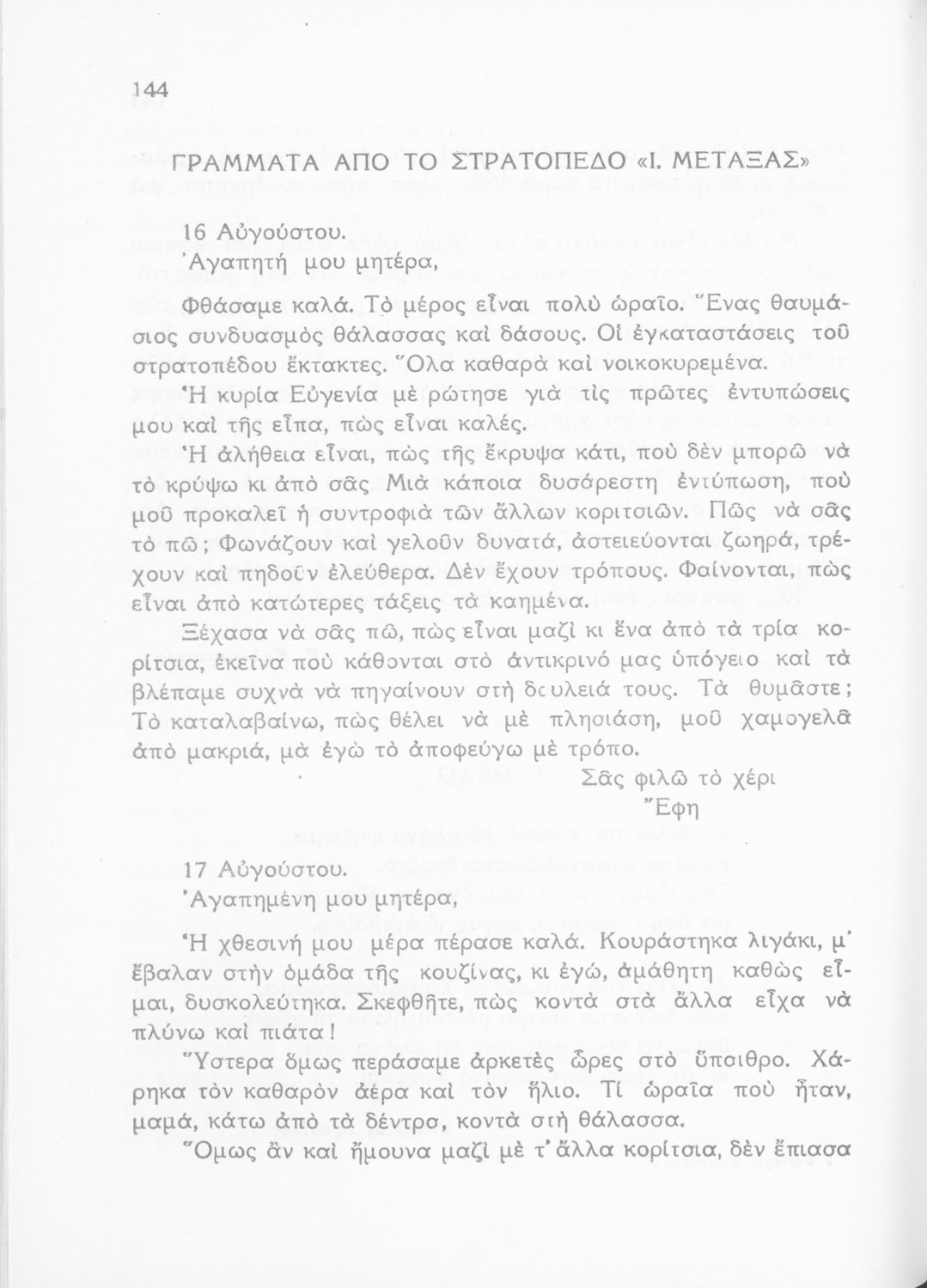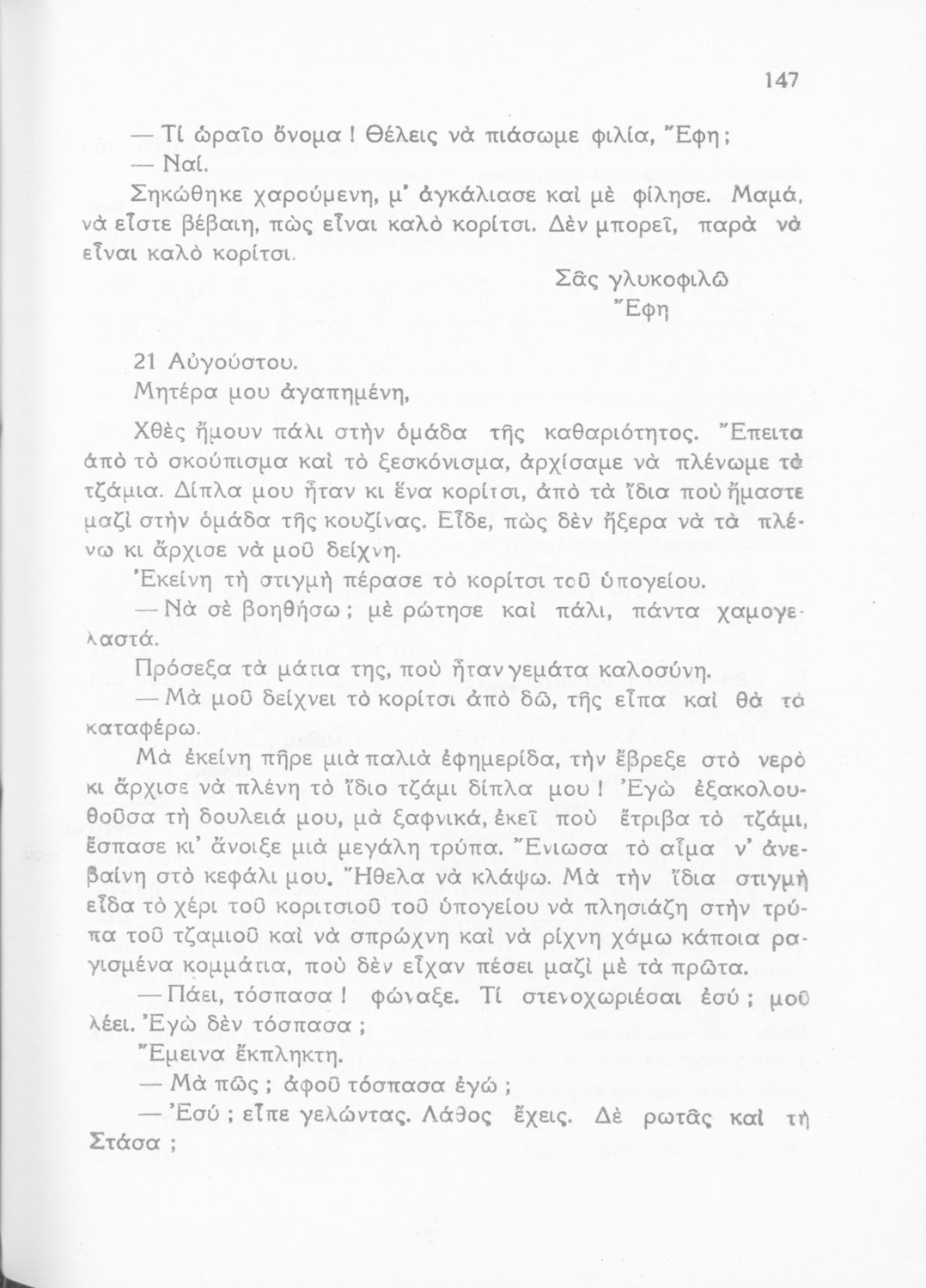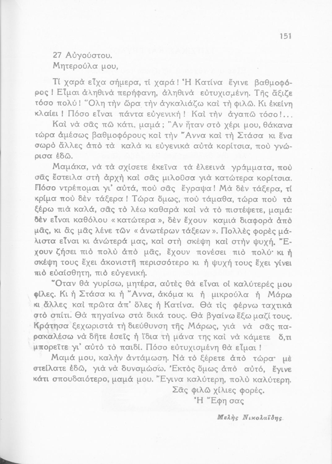 Σχολικό εγχειρίδιο για την Β΄ Γυμνασίου και την Γ΄ Αστικού Θηλέων για το μάθημα των Νέων Ελληνικών. Το εγχειρίδιο αποτελείται από κείμενα πεζού λόγου, επικολυρικά ποιήματα, ωδές, ηθογραφικά διηγήματα, ρητορικά