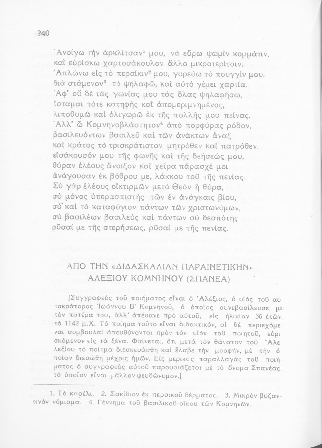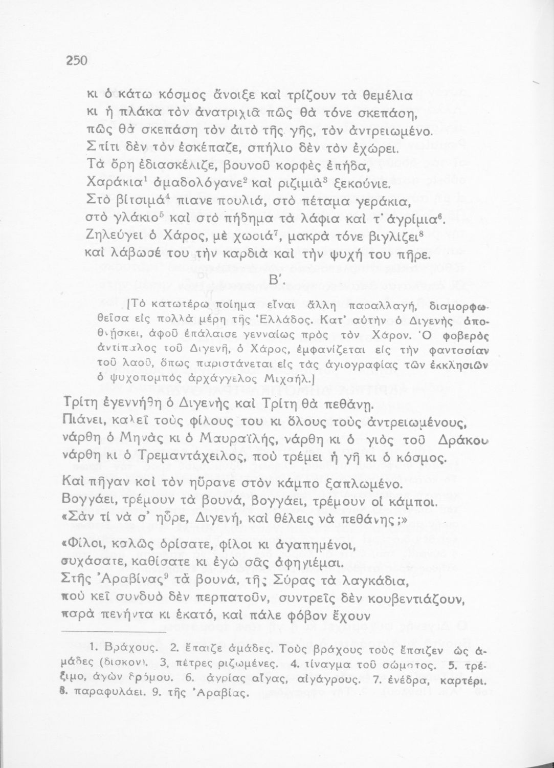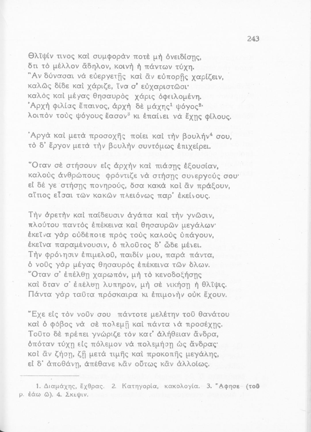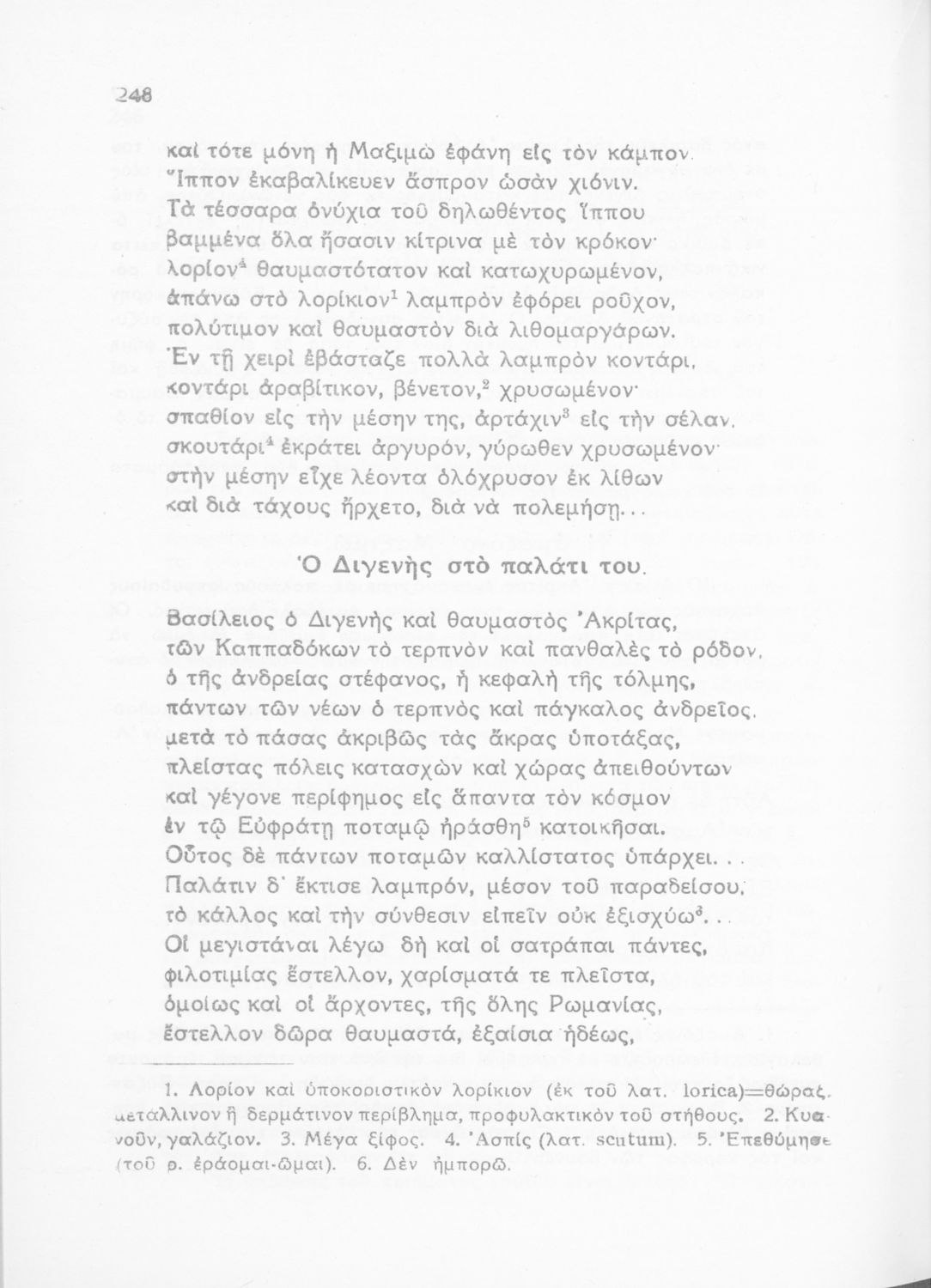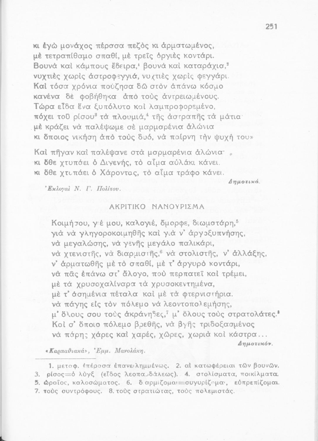 Σχολικό εγχειρίδιο Νέων Ελληνικών Δ΄ Γυμνασίου και Β΄ Αστικού Σχολείου που περιέχει πεζά και ποιήματα Ελλήνων συγγραφέων εμπνευσμένα από τη θρησκευτική και κοινωνική ζωή, την ελληνική μυθολογία, την αρχαία και σύγχρονη ελληνική ιστορία, και την ελληνική φύση. Περιέχει παράρτημα με μεταφράσεις κειμένων αρχαίων ελλήνων συγγραφέων και αποσπάσματα από τη μεσαιωνική γραμματεία, βιογραφίες των συγγραφέων και λεξιλόγιο.