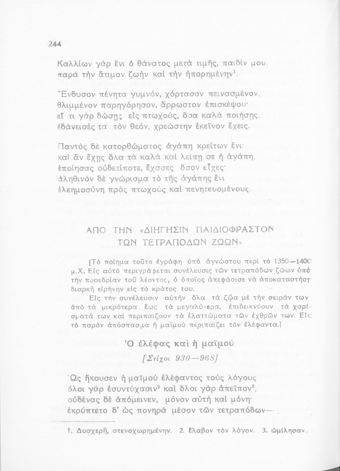 Σχολικό εγχειρίδιο Νέων Ελληνικών Γ΄ Γυμνασίου και Α' Αστικού Σχολείου που περιέχει πεζά και ποιήματα Ελλήνων συγγραφέων εμπνευσμένα από τη θρησκευτική και κοινωνική ζωή, την ελληνική μυθολογία, την αρχαία και