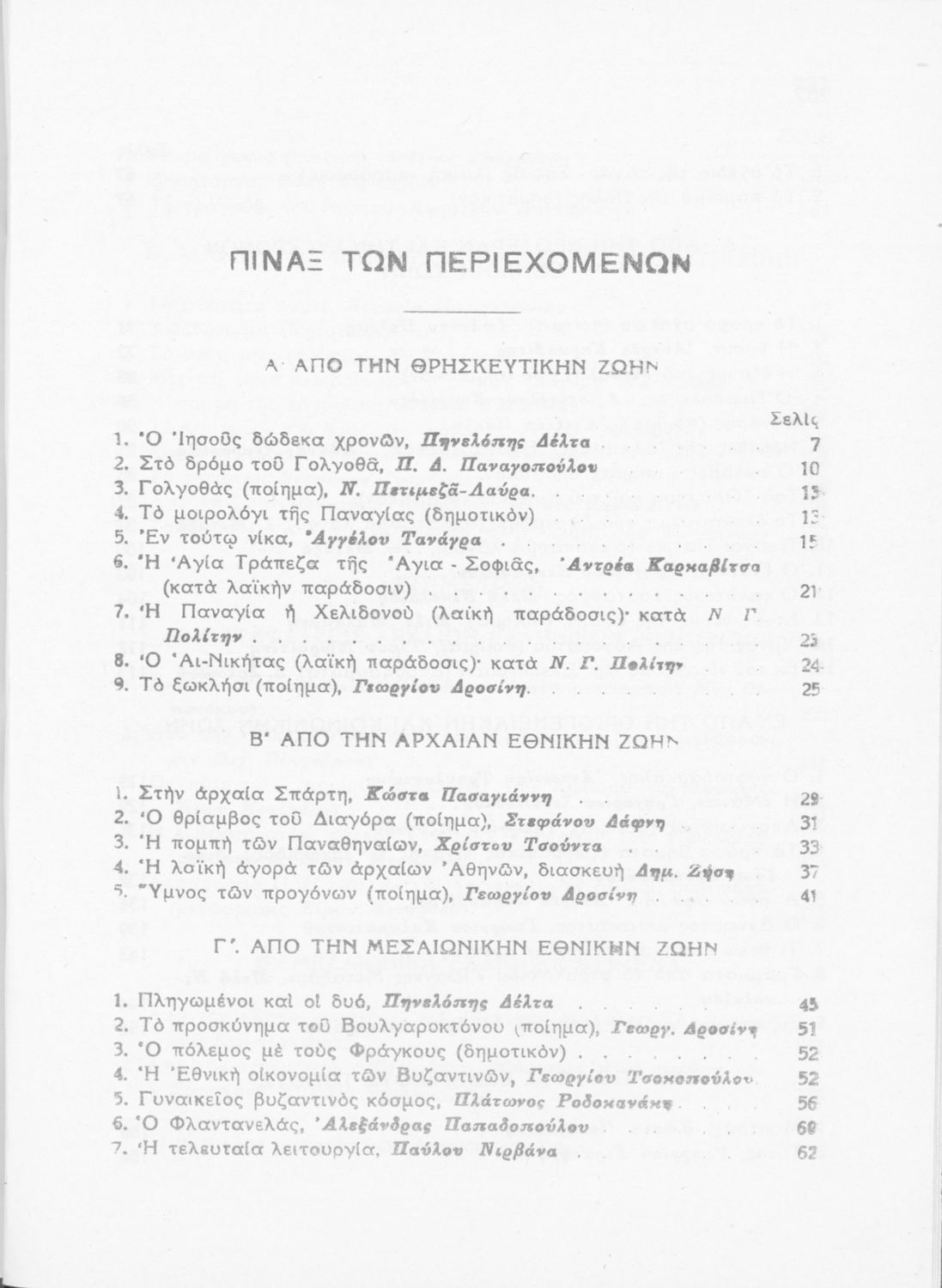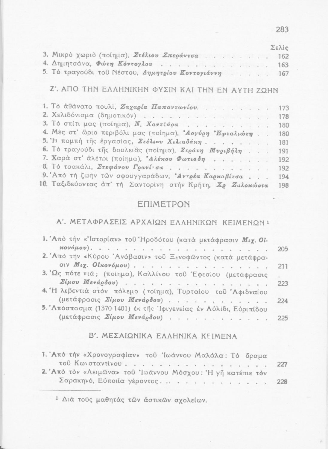 Σχολικό εγχειρίδιο Νέων Ελληνικών Γ΄ Γυμνασίου και Α' Αστικού Σχολείου που περιέχει πεζά και ποιήματα Ελλήνων συγγραφέων εμπνευσμένα από τη θρησκευτική και κοινωνική ζωή, την ελληνική μυθολογία, την αρχαία και