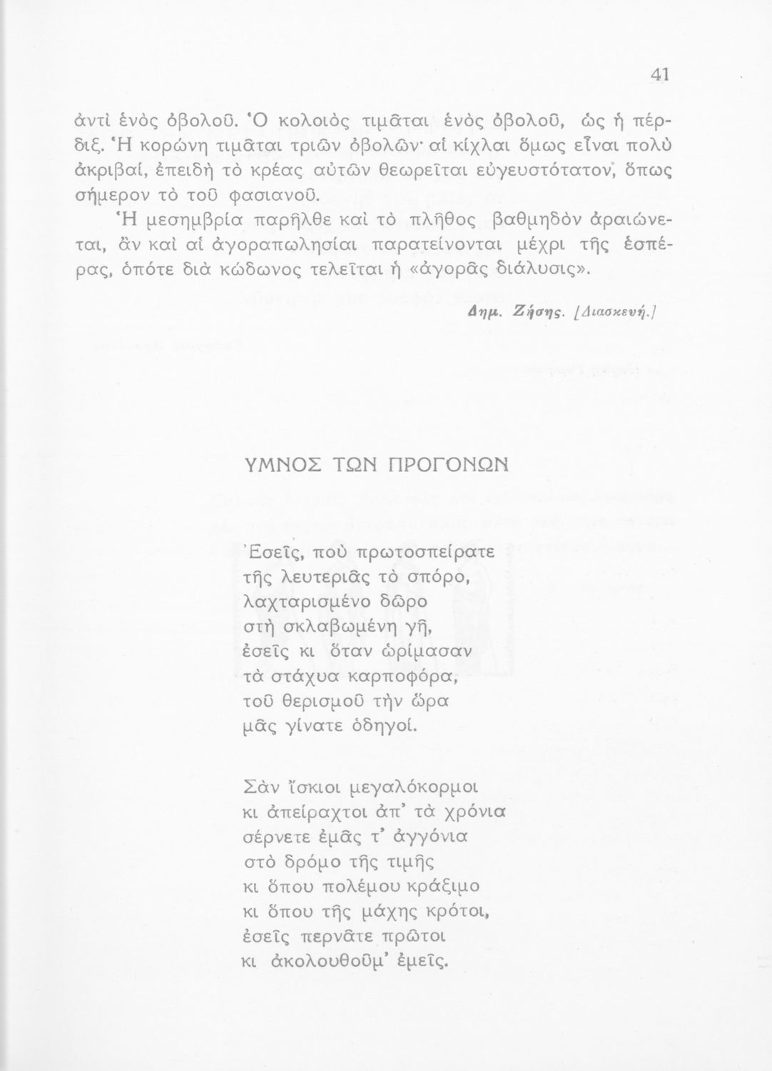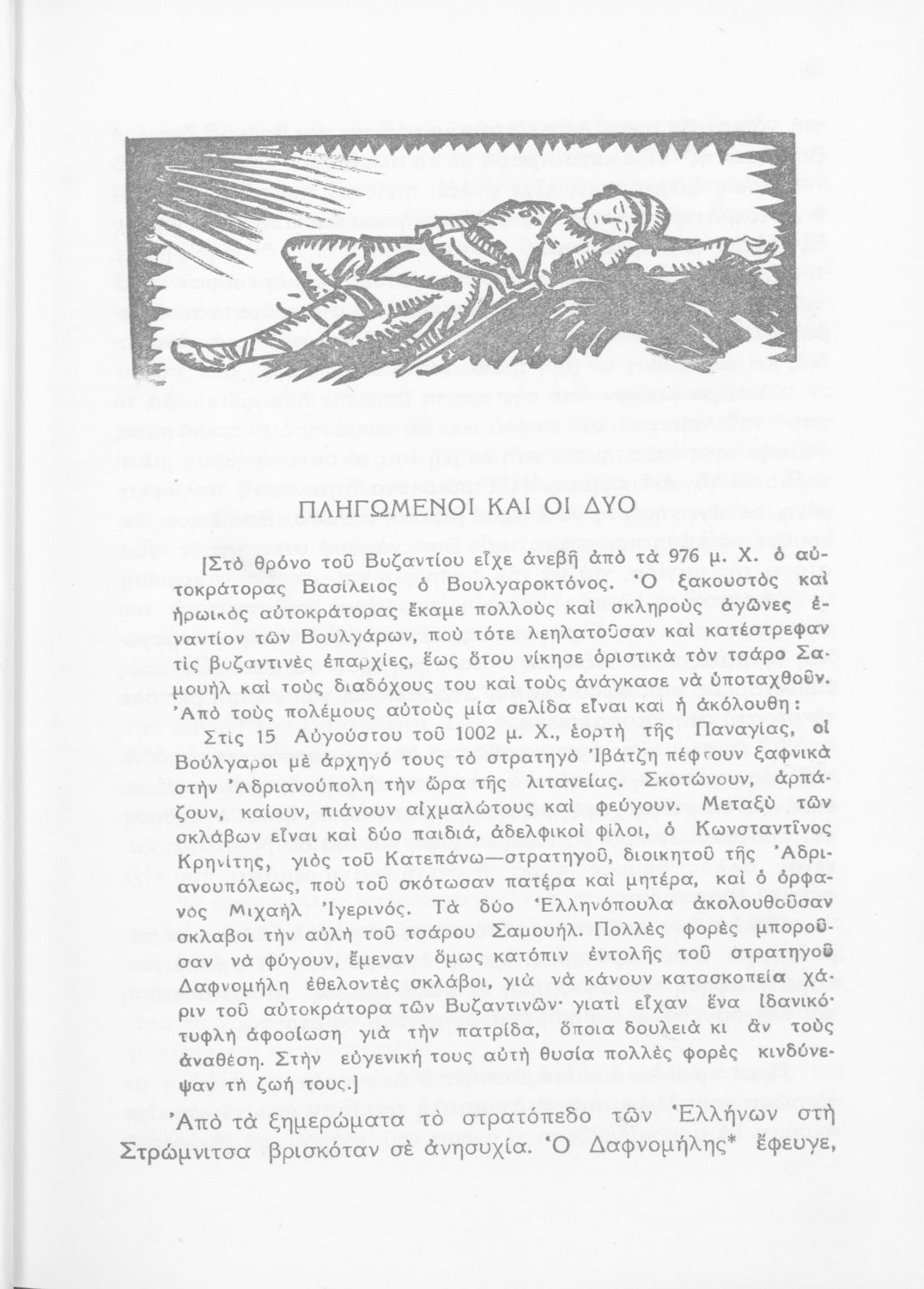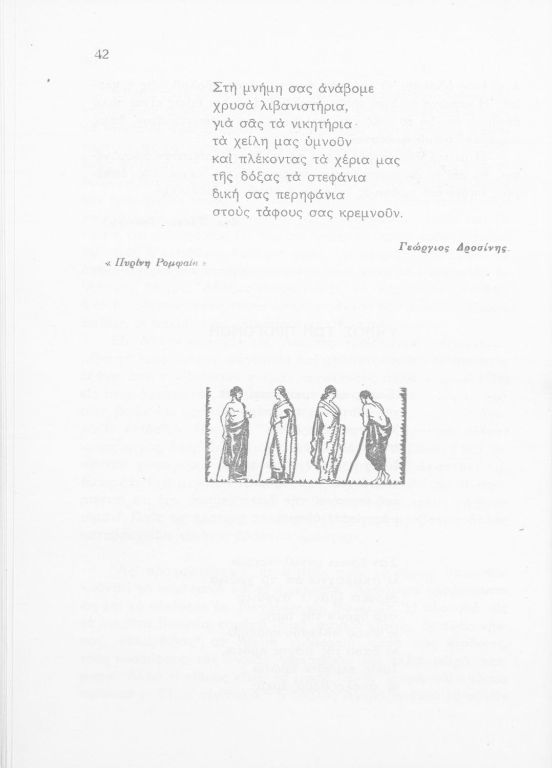 Σχολικό εγχειρίδιο Νέων Ελληνικών Δ΄ Γυμνασίου και Β΄ Αστικού Σχολείου που περιέχει πεζά και ποιήματα Ελλήνων συγγραφέων εμπνευσμένα από τη θρησκευτική και κοινωνική ζωή, την ελληνική μυθολογία, την αρχαία και σύγχρονη ελληνική ιστορία, και την ελληνική φύση. Περιέχει παράρτημα με μεταφράσεις κειμένων αρχαίων ελλήνων συγγραφέων και αποσπάσματα από τη μεσαιωνική γραμματεία, βιογραφίες των συγγραφέων και λεξιλόγιο.