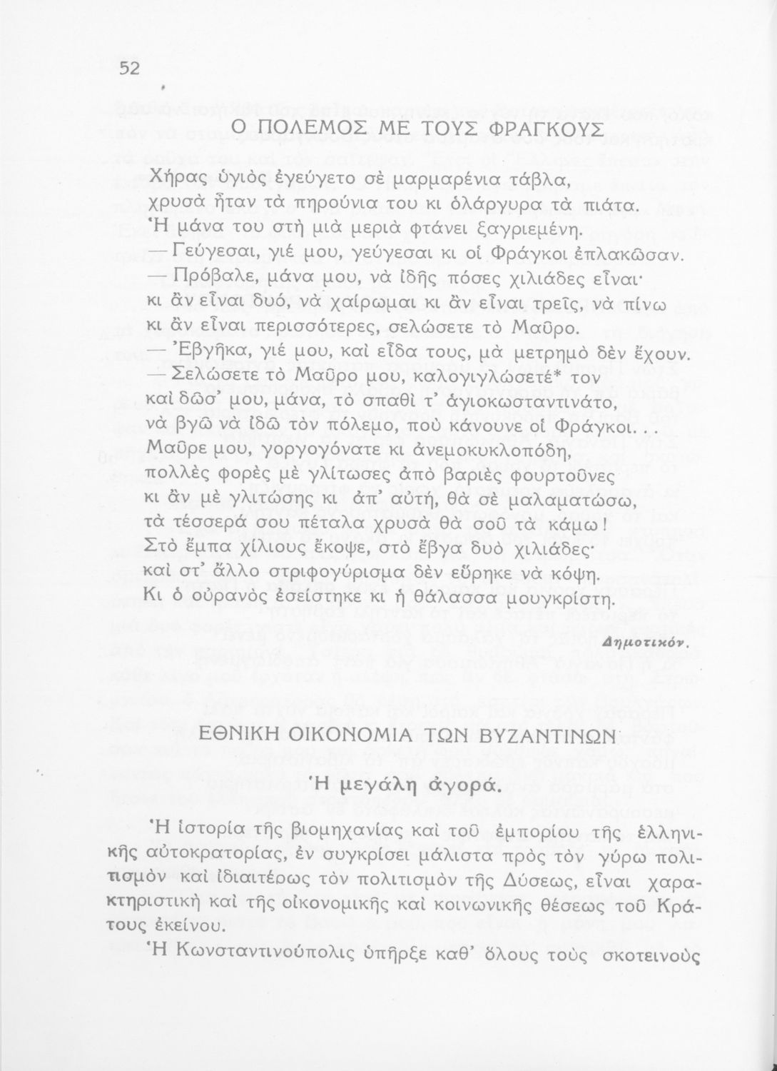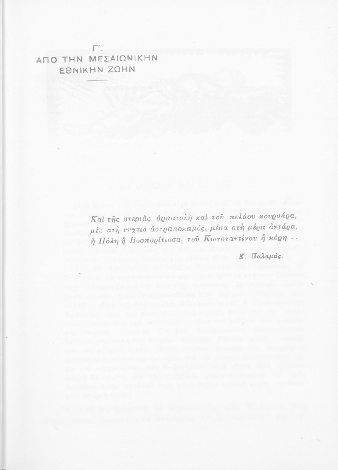Σχολικό εγχειρίδιο Νέων Ελληνικών Γ΄ Γυμνασίου και Α' Αστικού Σχολείου που περιέχει πεζά και ποιήματα Ελλήνων συγγραφέων εμπνευσμένα από τη θρησκευτική και κοινωνική ζωή, την ελληνική μυθολογία, την αρχαία και