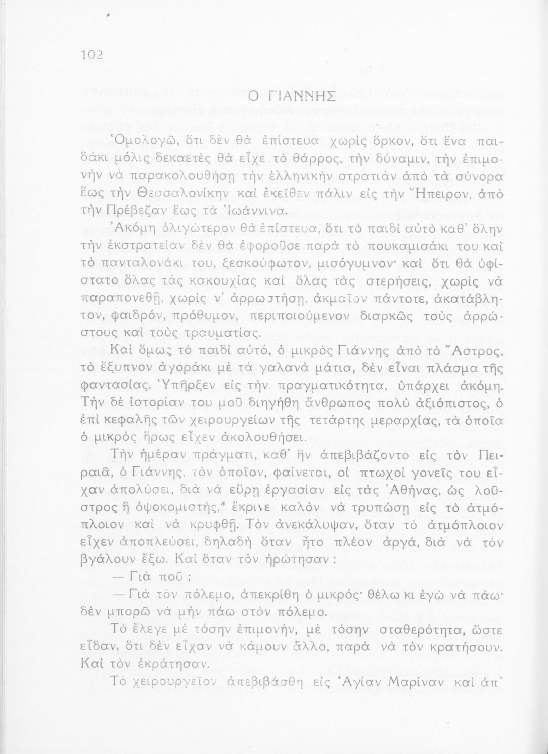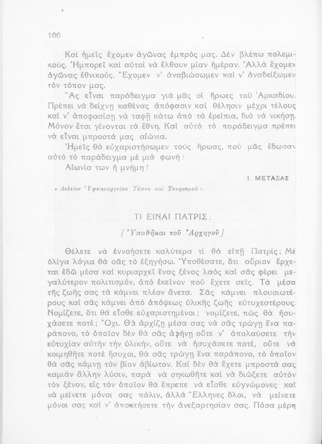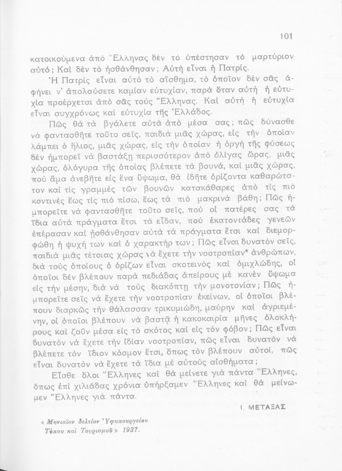 Σχολικό εγχειρίδιο Νέων Ελληνικών Δ΄ Γυμνασίου και Β΄ Αστικού Σχολείου που περιέχει πεζά και ποιήματα Ελλήνων συγγραφέων εμπνευσμένα από τη θρησκευτική και κοινωνική ζωή, την ελληνική μυθολογία, την αρχαία και σύγχρονη ελληνική ιστορία, και την ελληνική φύση. Περιέχει παράρτημα με μεταφράσεις κειμένων αρχαίων ελλήνων συγγραφέων και αποσπάσματα από τη μεσαιωνική γραμματεία, βιογραφίες των συγγραφέων και λεξιλόγιο.