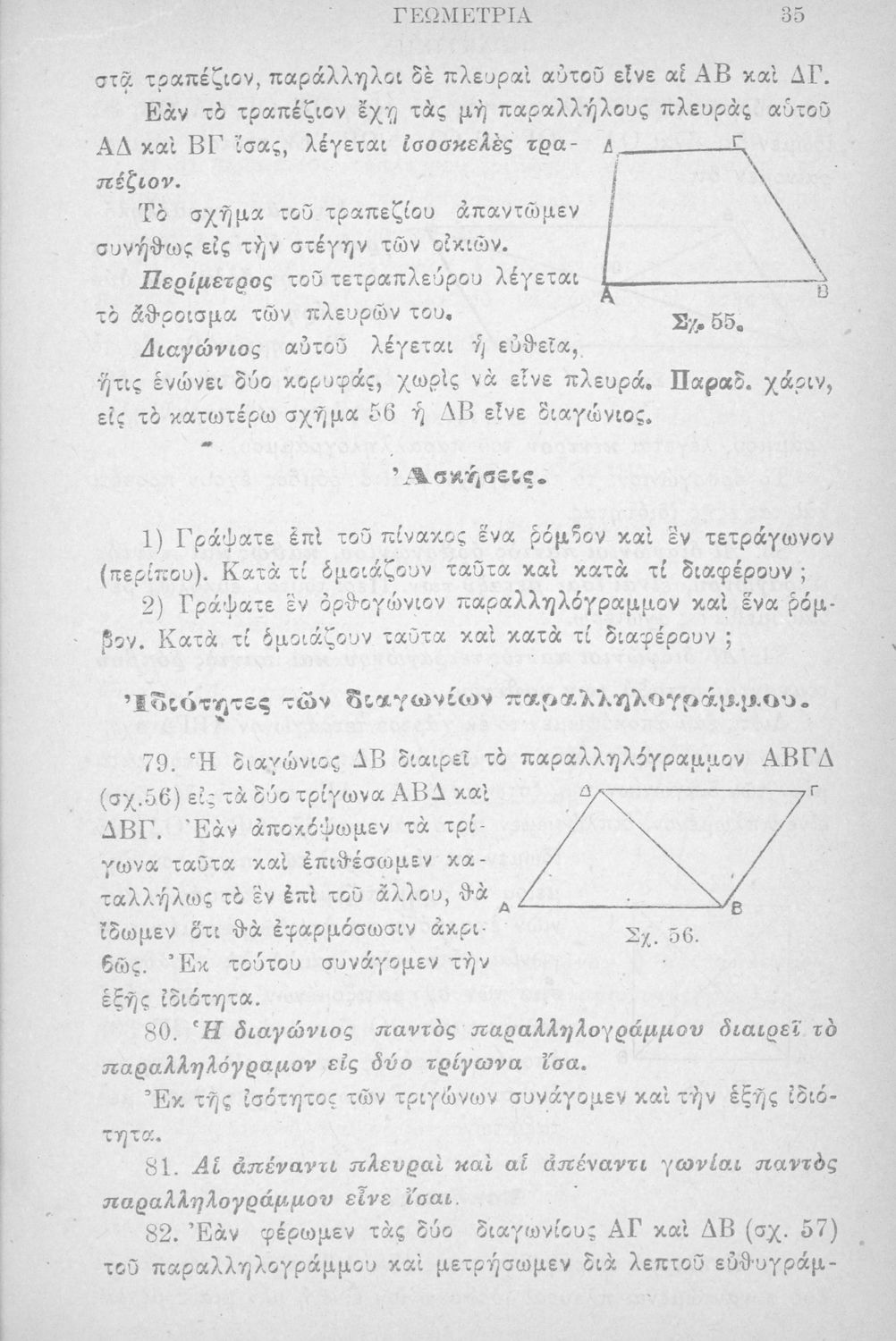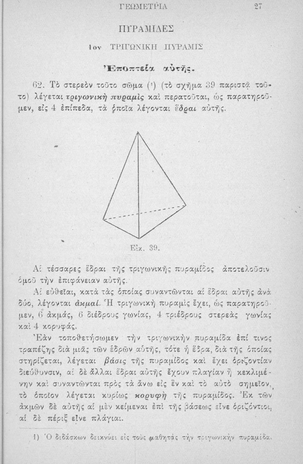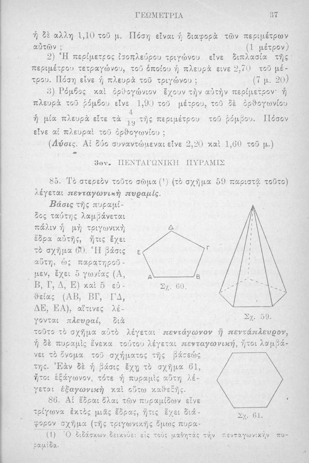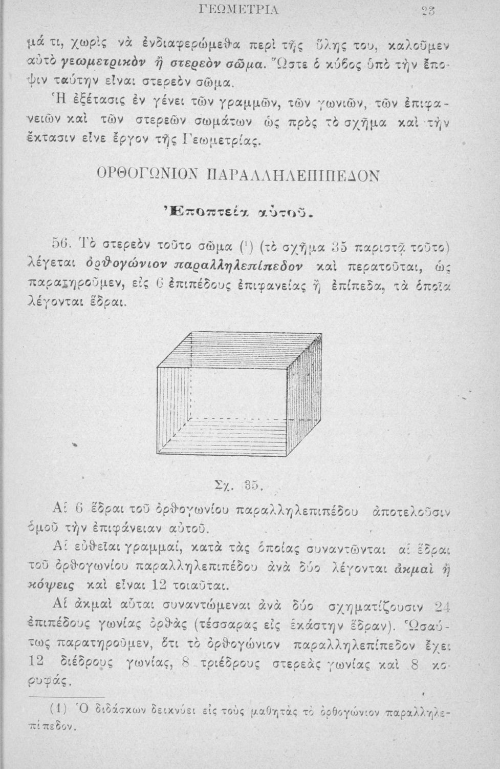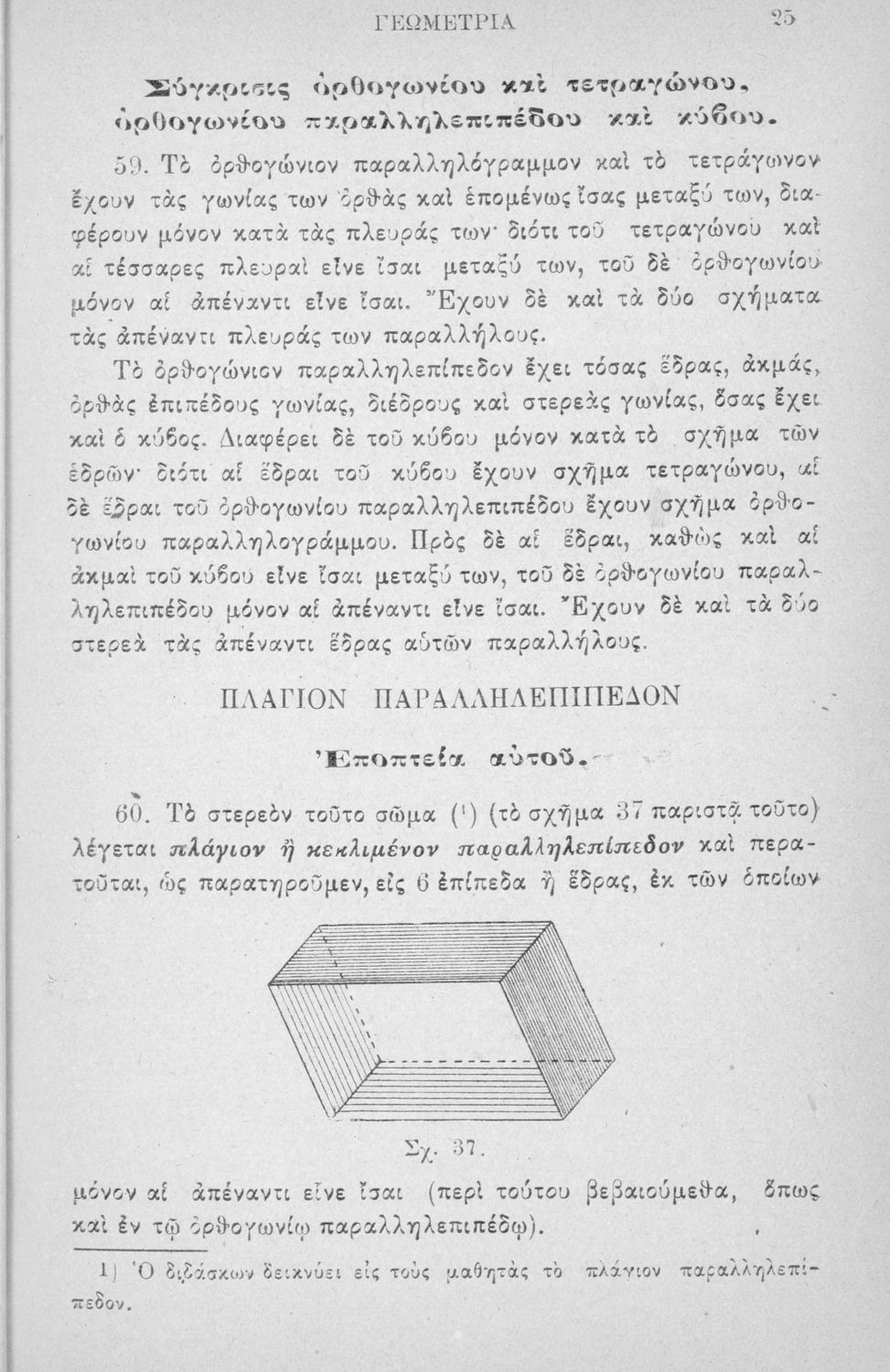 Σχολικό εγχειρίδιο Γεωμετρίας για την Α΄, Β΄ και Γ΄ τάξη των Ελληνικών και Αστικών Σχολείων και Παρθεναγωγείων που είναι χωρισμένο σε Επιπεδομετρία και Στερεομετρία και περιλαμβάνει θεωρία και ασκήσεις.