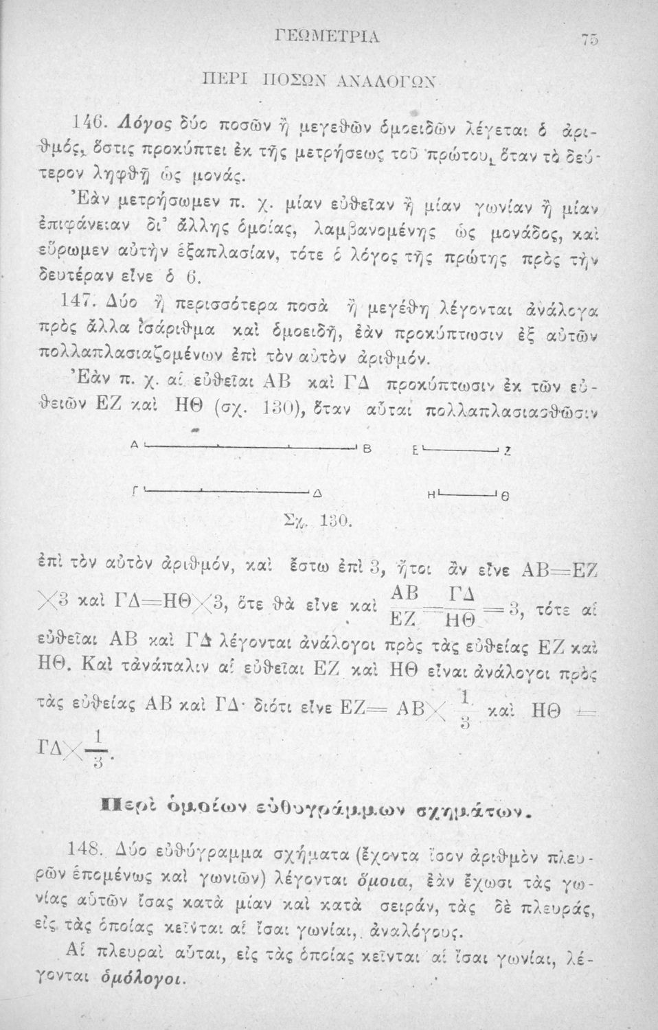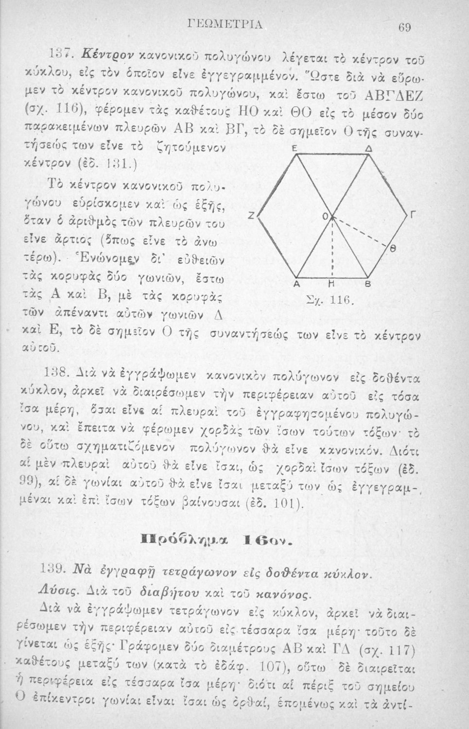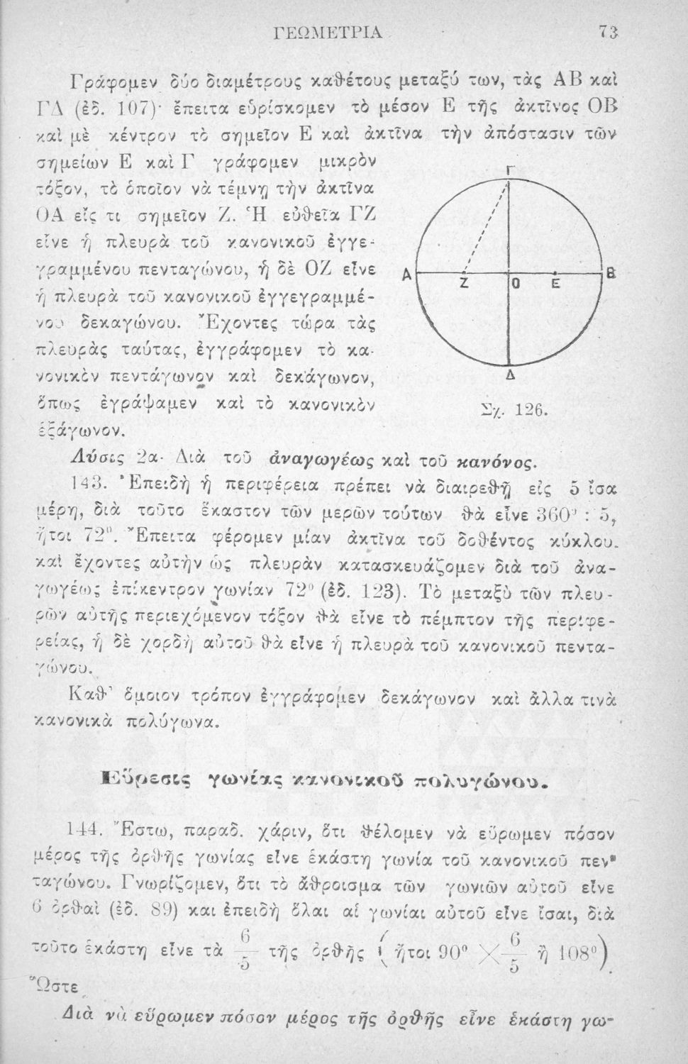 Σχολικό εγχειρίδιο Γεωμετρίας για την Α΄, Β΄ και Γ΄ τάξη των Ελληνικών και Αστικών Σχολείων και Παρθεναγωγείων που είναι χωρισμένο σε Επιπεδομετρία και Στερεομετρία και περιλαμβάνει θεωρία και ασκήσεις.