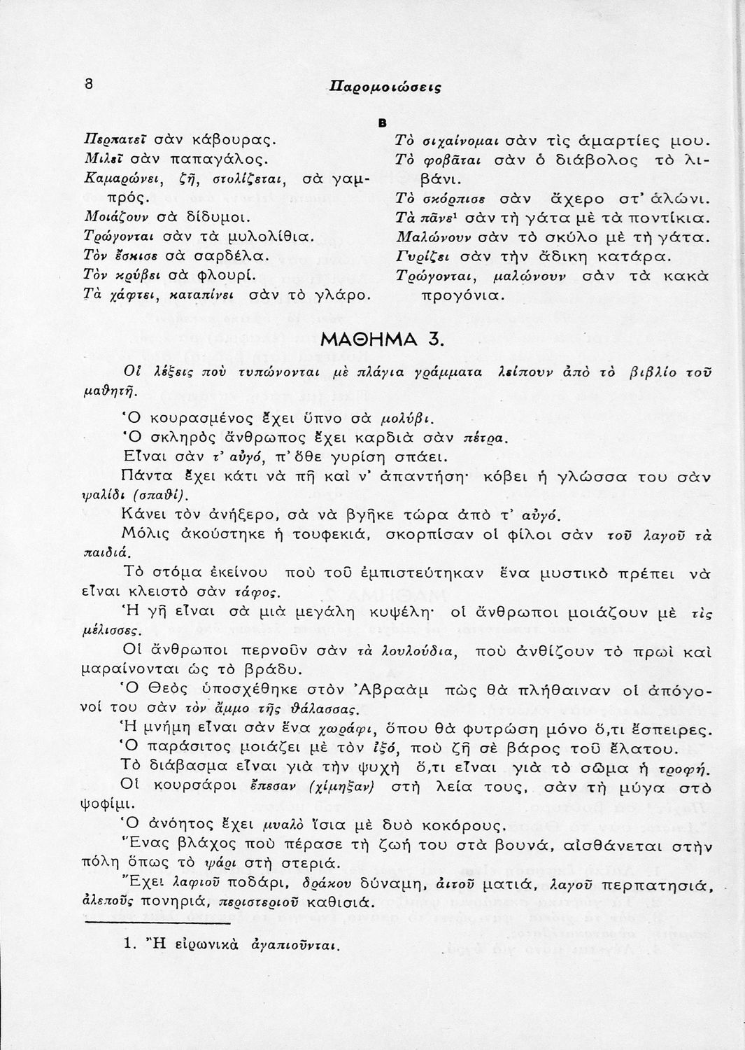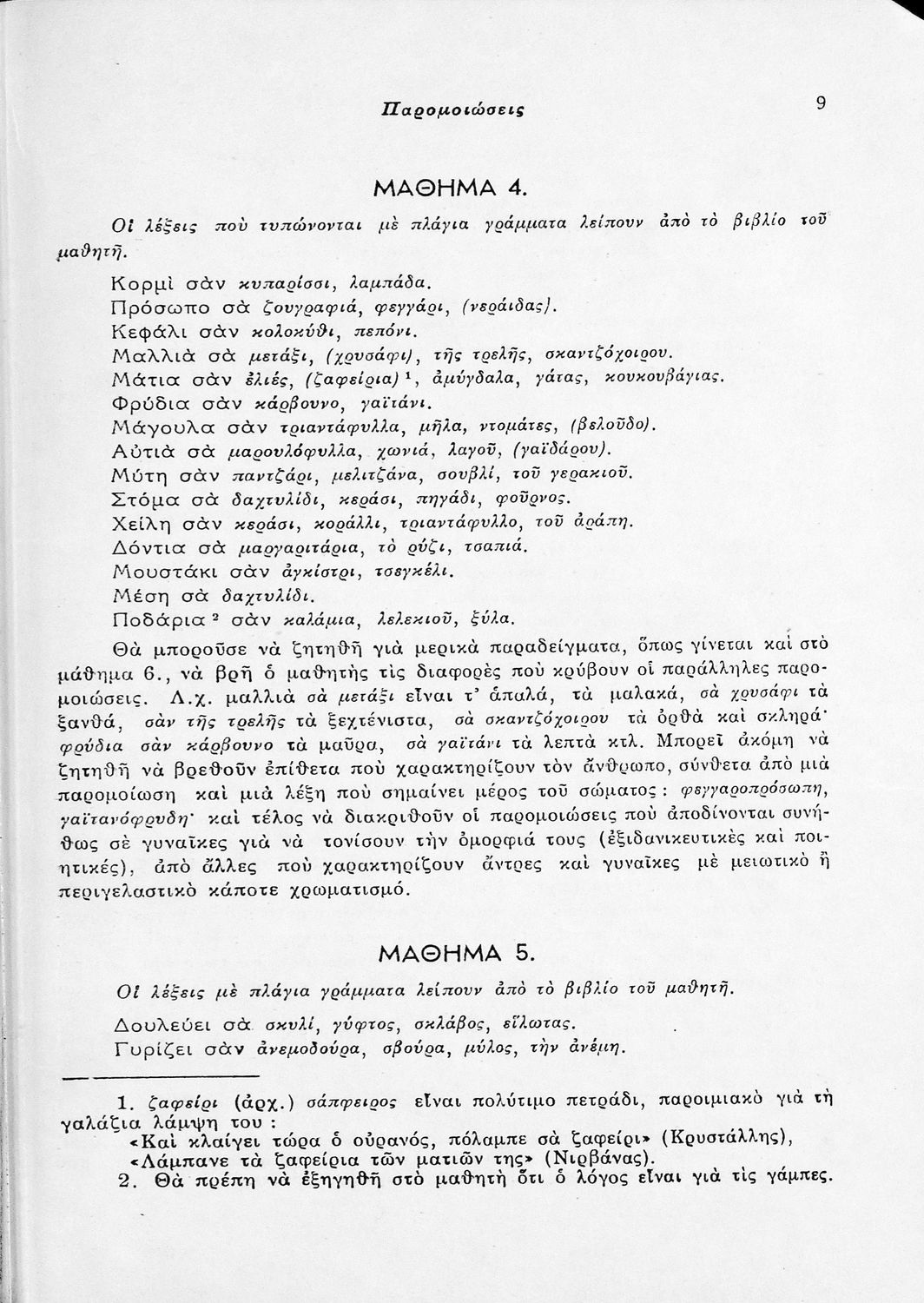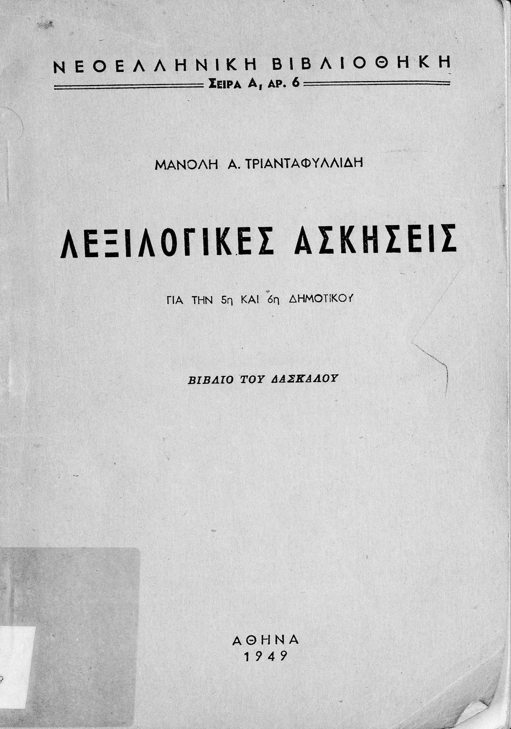 LDR 00960 2200193 4500 035 ## _a01-18603 040 ## _aΙνστιτούτο Εκπαιδευτικής Πολιτικής 041 ## _ael 100 ## _aΜανόλης Α. Τριανταφυλλίδης 110 ## _a18603 245 0# _aΛεξιλογικές Ασκήσεις για την Ε΄, ΣΤ΄ Δημοτικού, Βιβλίο του δασκάλου 260 ## _aΑθήνα _bΜ. Δ. Μυρτίδης _c1949 300 ## _a47 _c21 520 ## _aΠαιδαγωγικό βοήθημα Γλώσσας Ε΄ και ΣΤ΄ Δημοτικού που εστιάζει στη διδασκαλία των σχημάτων του λόγου. 521 ## _aΕ' Δημοτικού / ΣΤ' Δημοτικού 522 ## _aΕλλάδα 546 ## _aΔημοτική 563 ## _aΜαλακό Εξώφυλλο 650 #4 _aΑντίθεση _aΙδιωματισμός _aΚυριολεξία _aΜεταφορά _aΠαρομοίωση