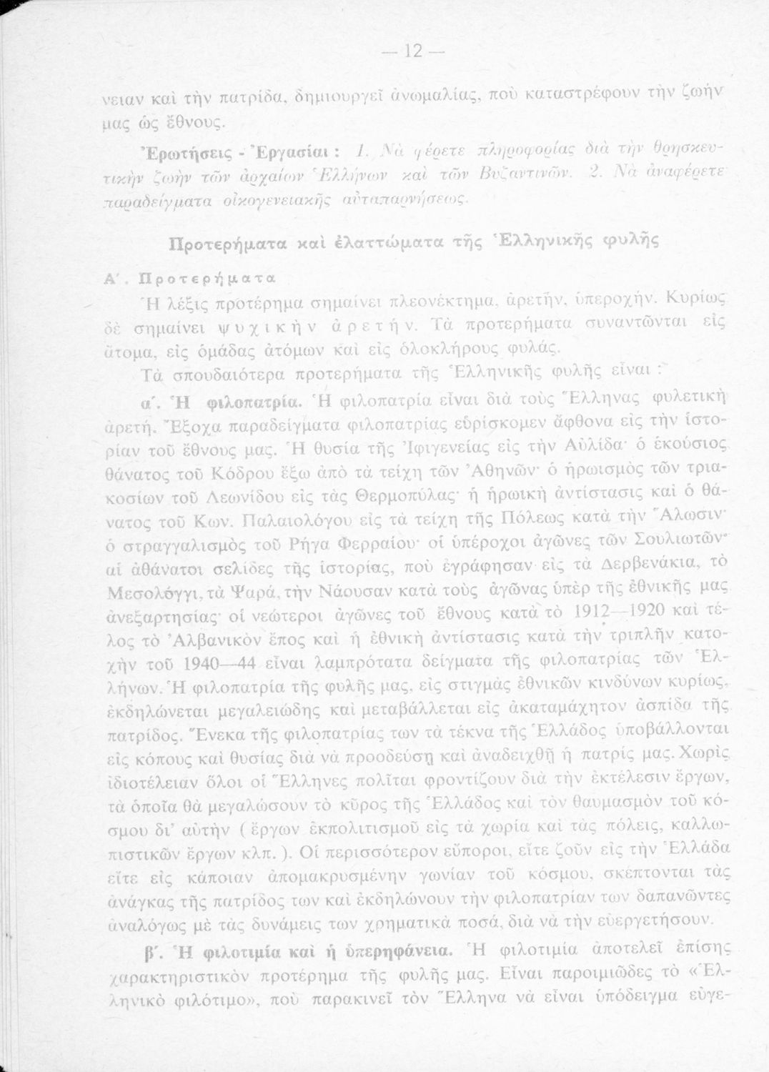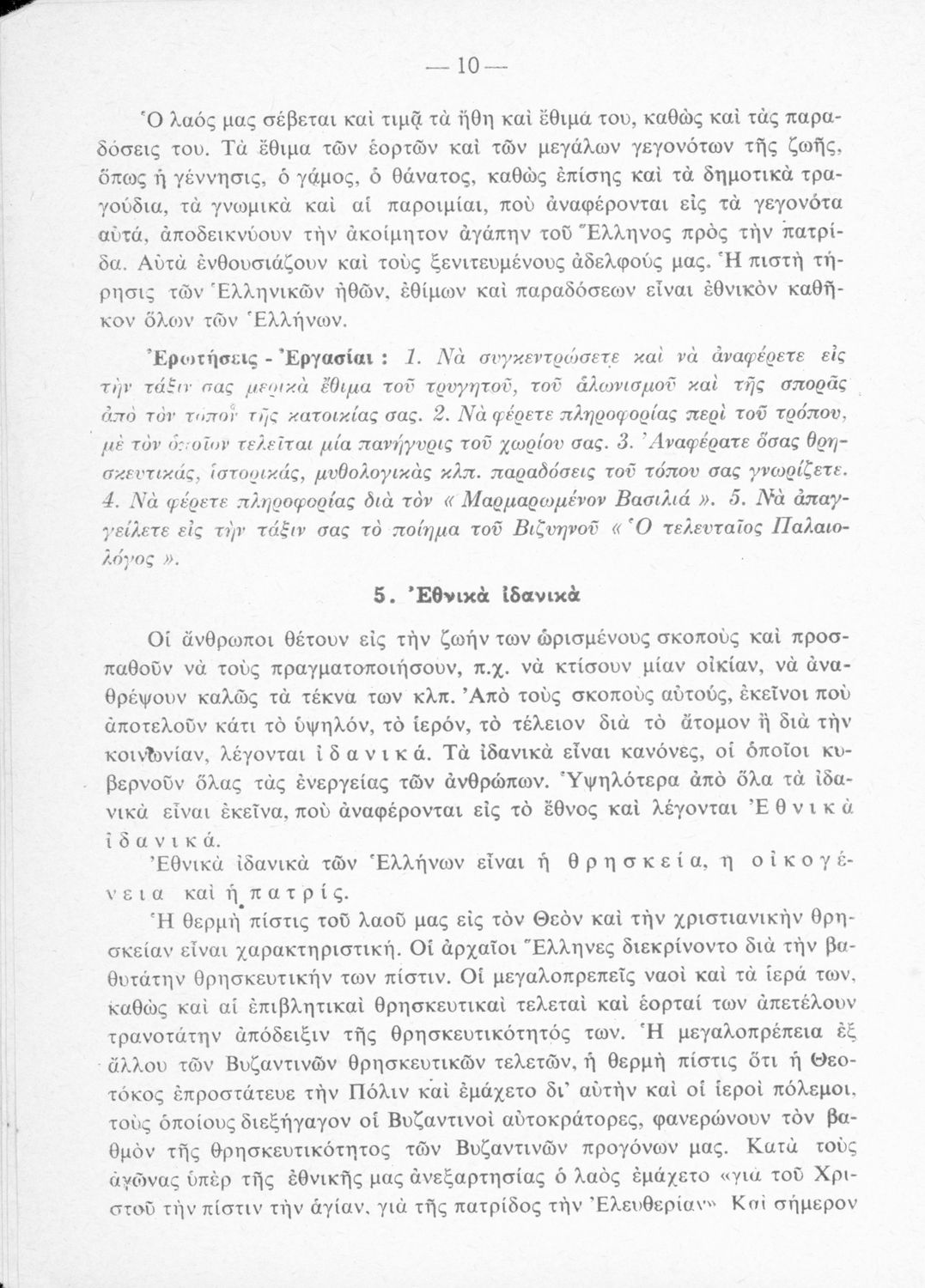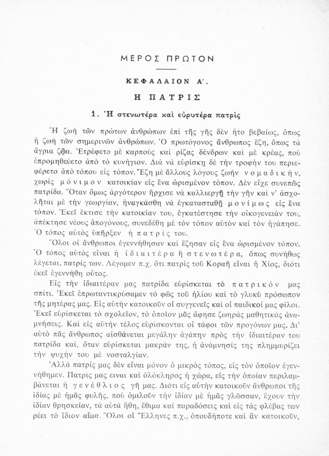 Βαθμίδα εκπαίδευσης: Πρωτοβάθμια Τάξη: Ε' Δημοτικού / ΣΤ' Δημοτικού Μάθημα: Αγωγή Του Πολίτη Γλώσσα: Απλή καθαρεύουσα Παρουσίαση περιεχομένου: Μαθητικό βοήθημα Αγωγής του Πολίτη Ε΄ και ΣΤ΄ Δημοτικού που εστιάζει στα καθήκοντα του πολίτη προς την πατρίδα, τη θρησκεία και την οικογένεια, στα εθνικά σύμβολα και στον εθνικό ύμνο. Αποσκοπεί στην καλλιέργεια της εθνικής συνείδησης. |