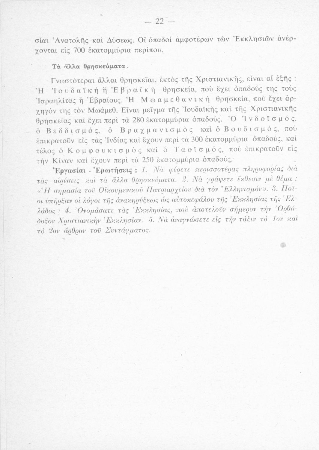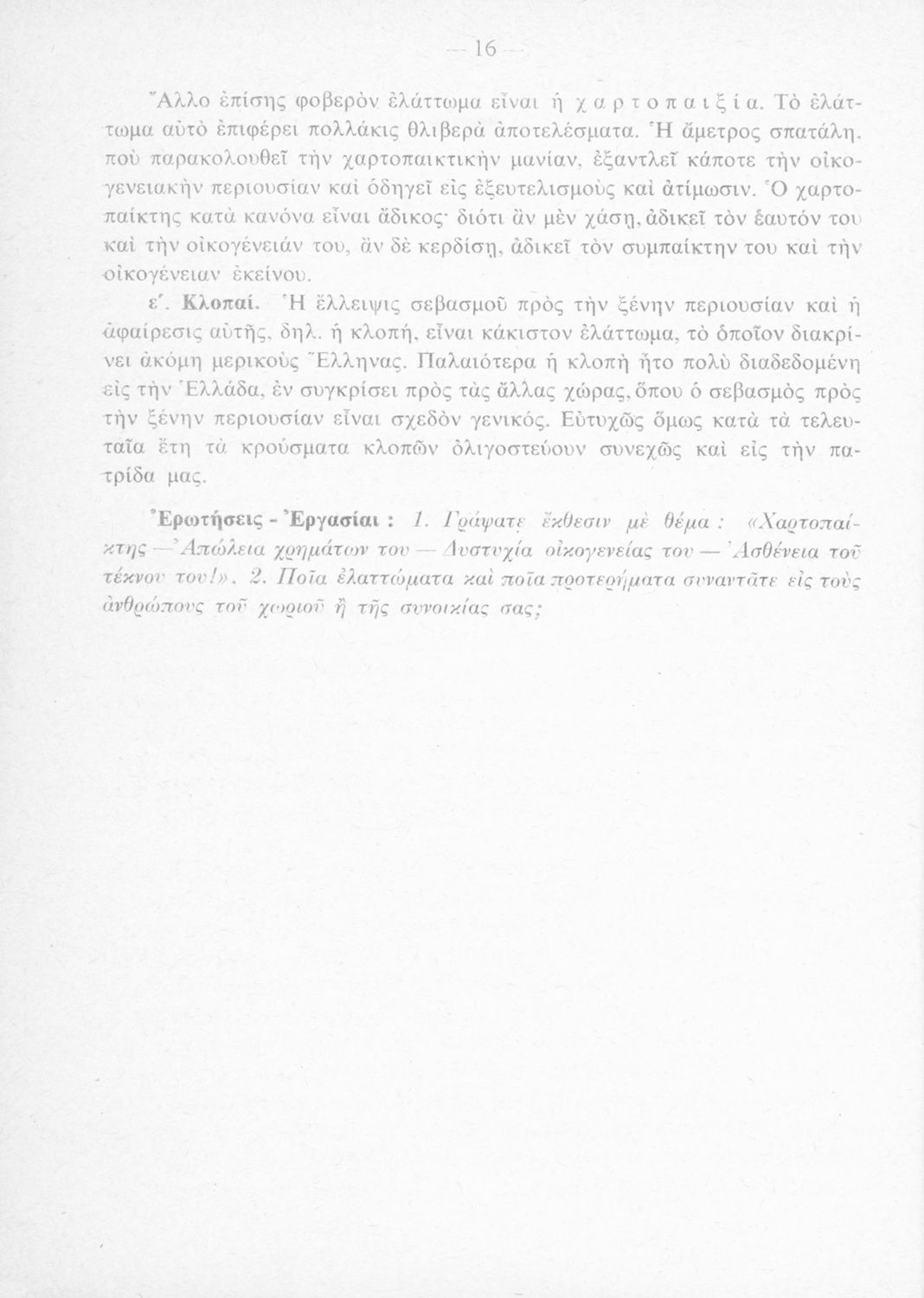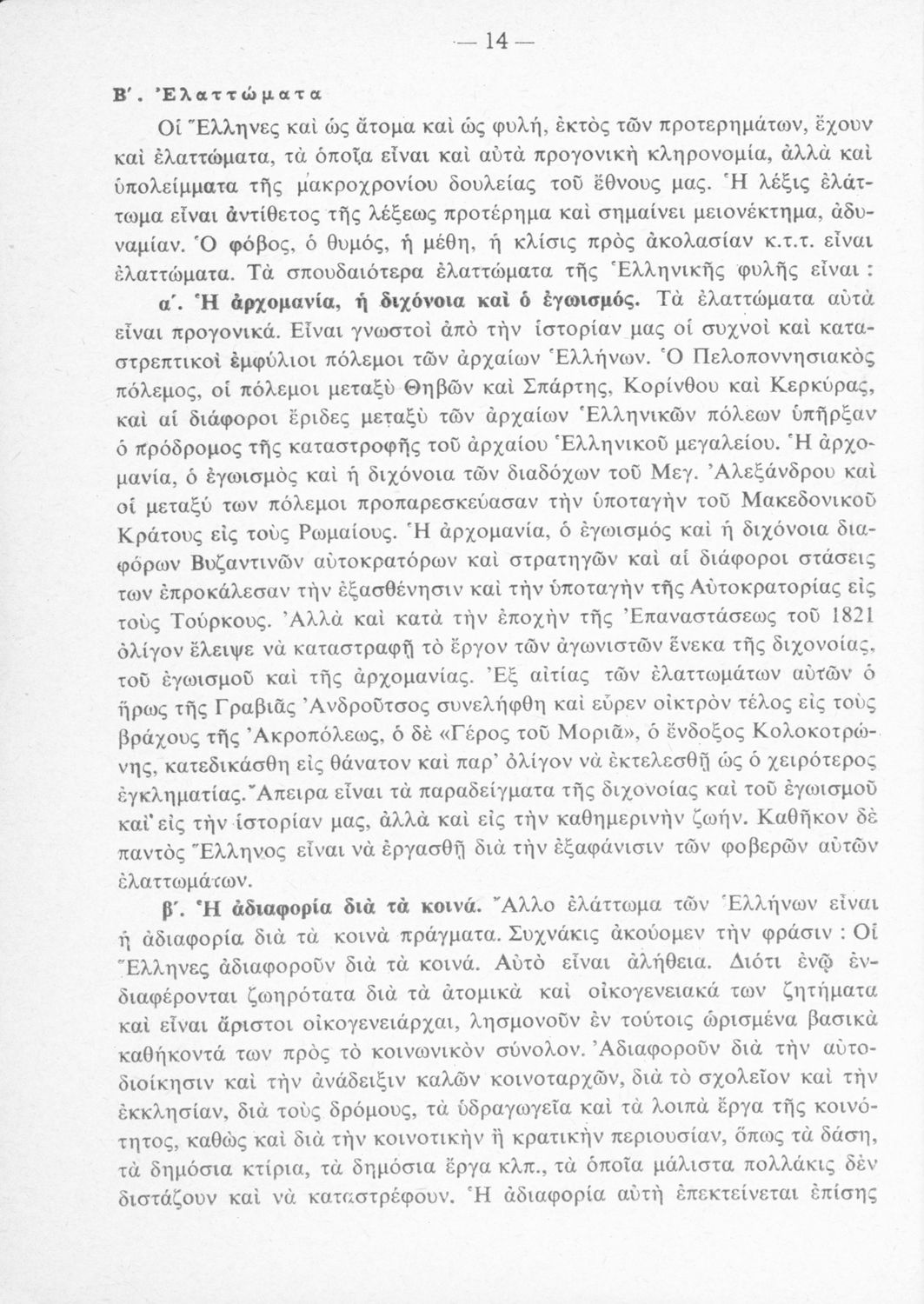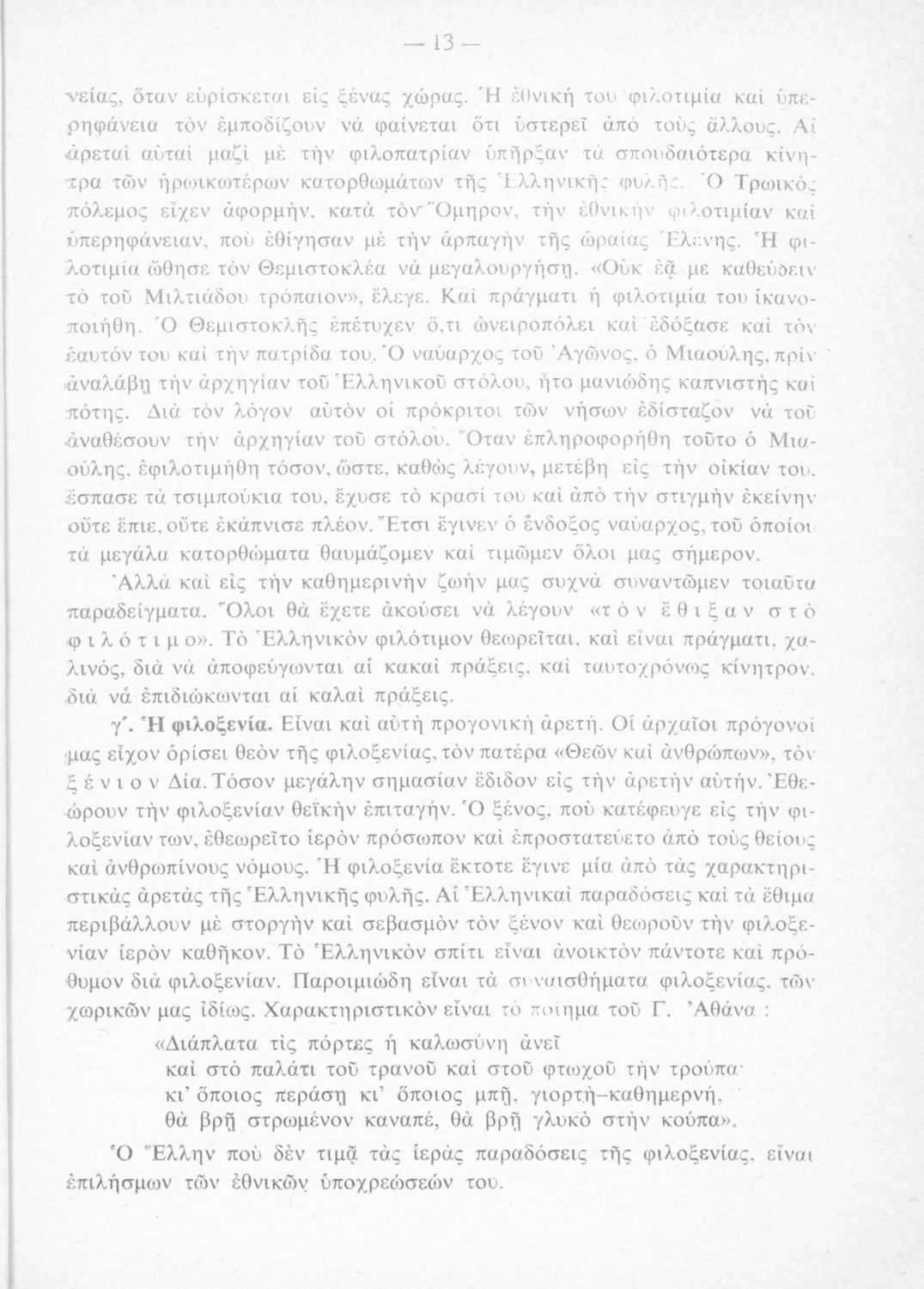Βαθμίδα εκπαίδευσης: Πρωτοβάθμια Τάξη: Ε' Δημοτικού / ΣΤ' Δημοτικού Μάθημα: Αγωγή Του Πολίτη Γλώσσα: Απλή καθαρεύουσα Παρουσίαση περιεχομένου: Μαθητικό βοήθημα Αγωγής του Πολίτη Ε΄ και ΣΤ΄ Δημοτικού που εστιάζει στα καθήκοντα του πολίτη προς την πατρίδα, τη θρησκεία και την οικογένεια, στα εθνικά σύμβολα και στον εθνικό ύμνο. Αποσκοπεί στην καλλιέργεια της εθνικής συνείδησης. |
