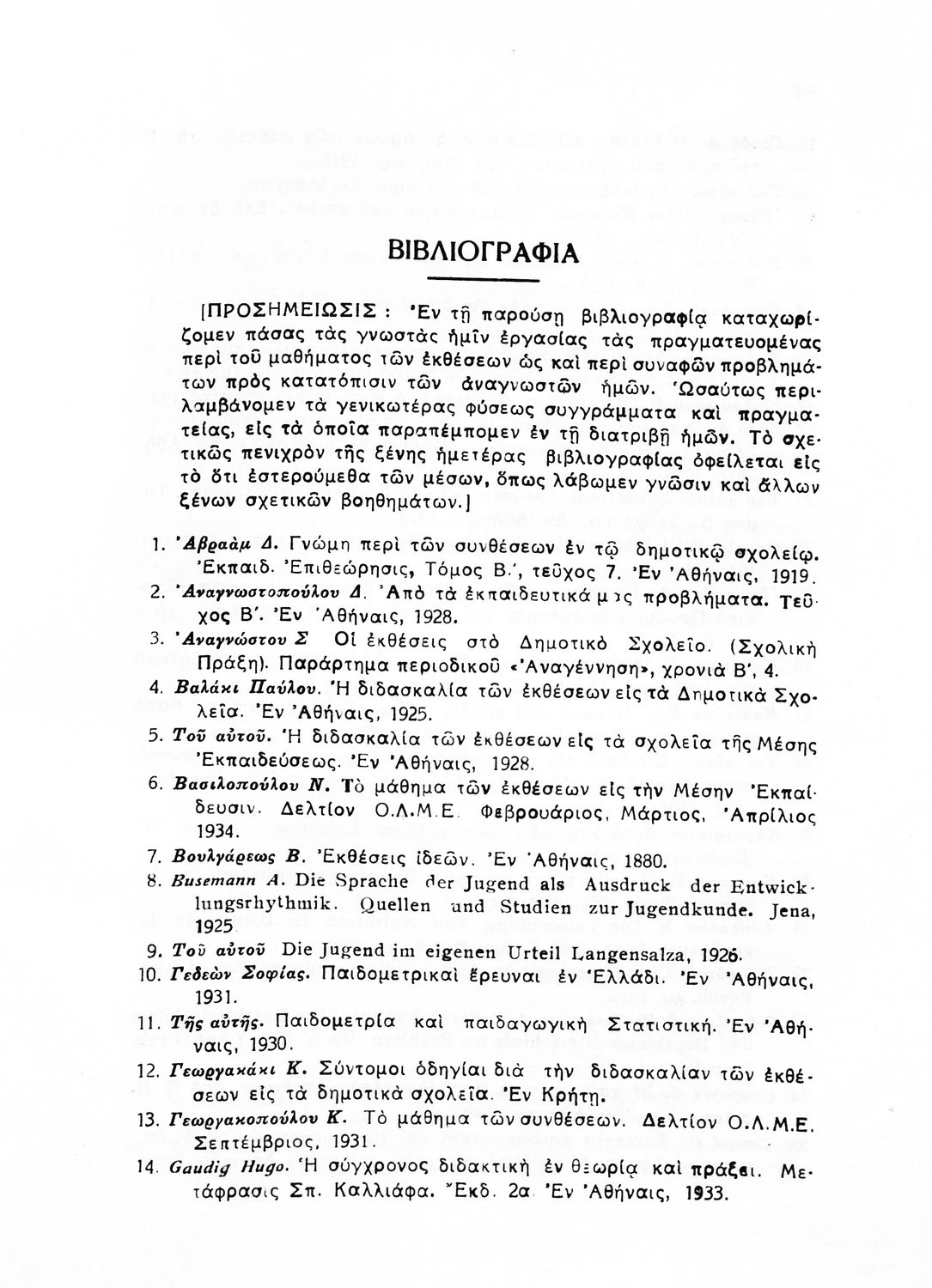 Συμβολή εις την διδακτικήν των Εκθέσεων ιδεών εις τα σχολεία Μ. Εκπαιδεύσεως (συστηματική παιδαγωγική έρευνα)