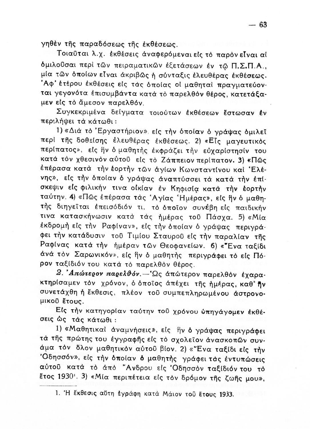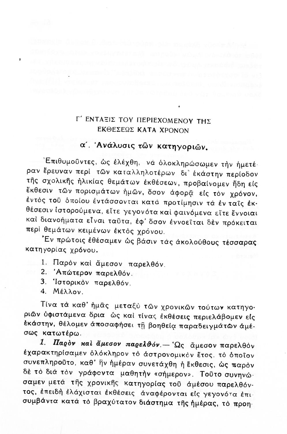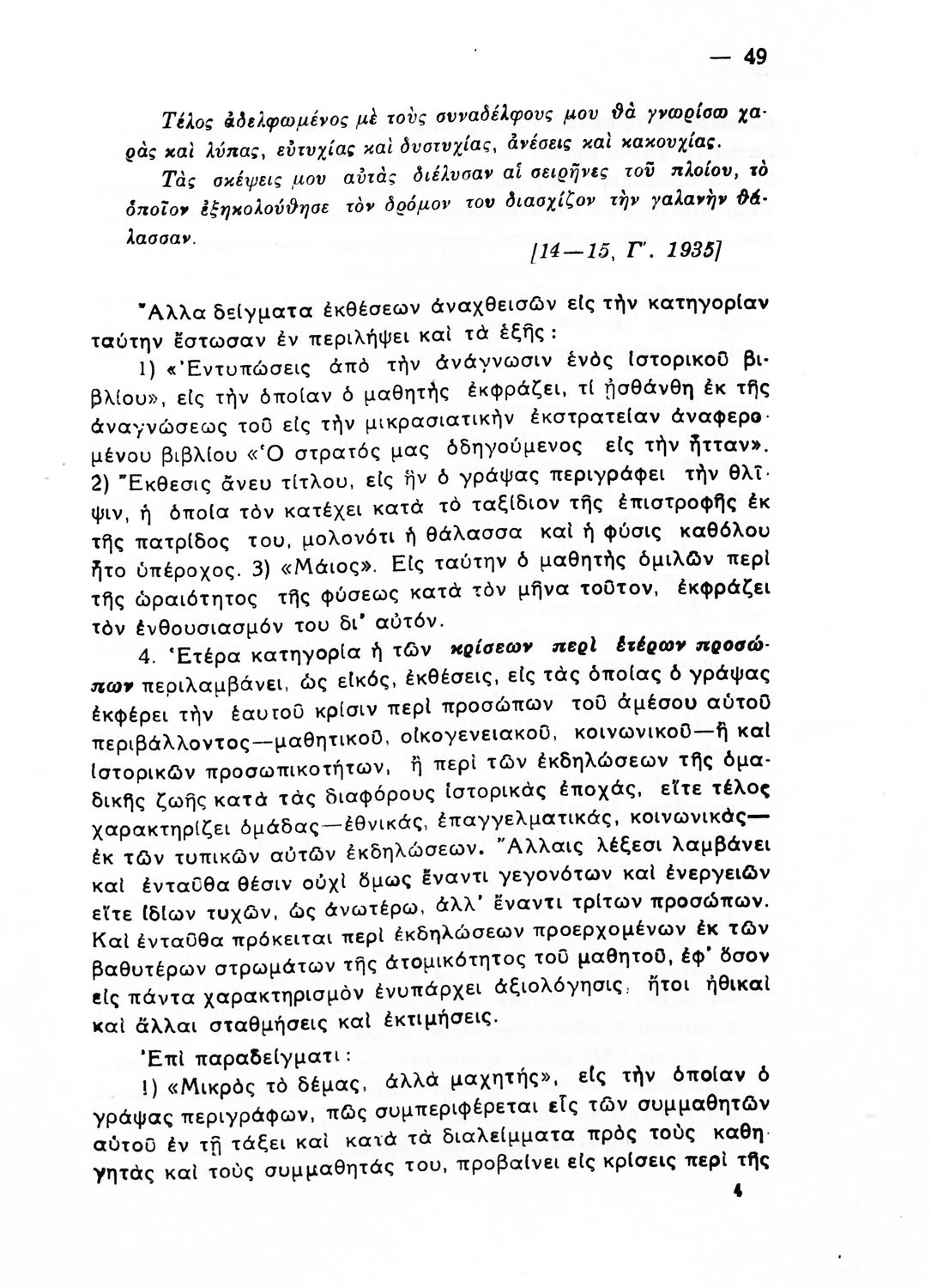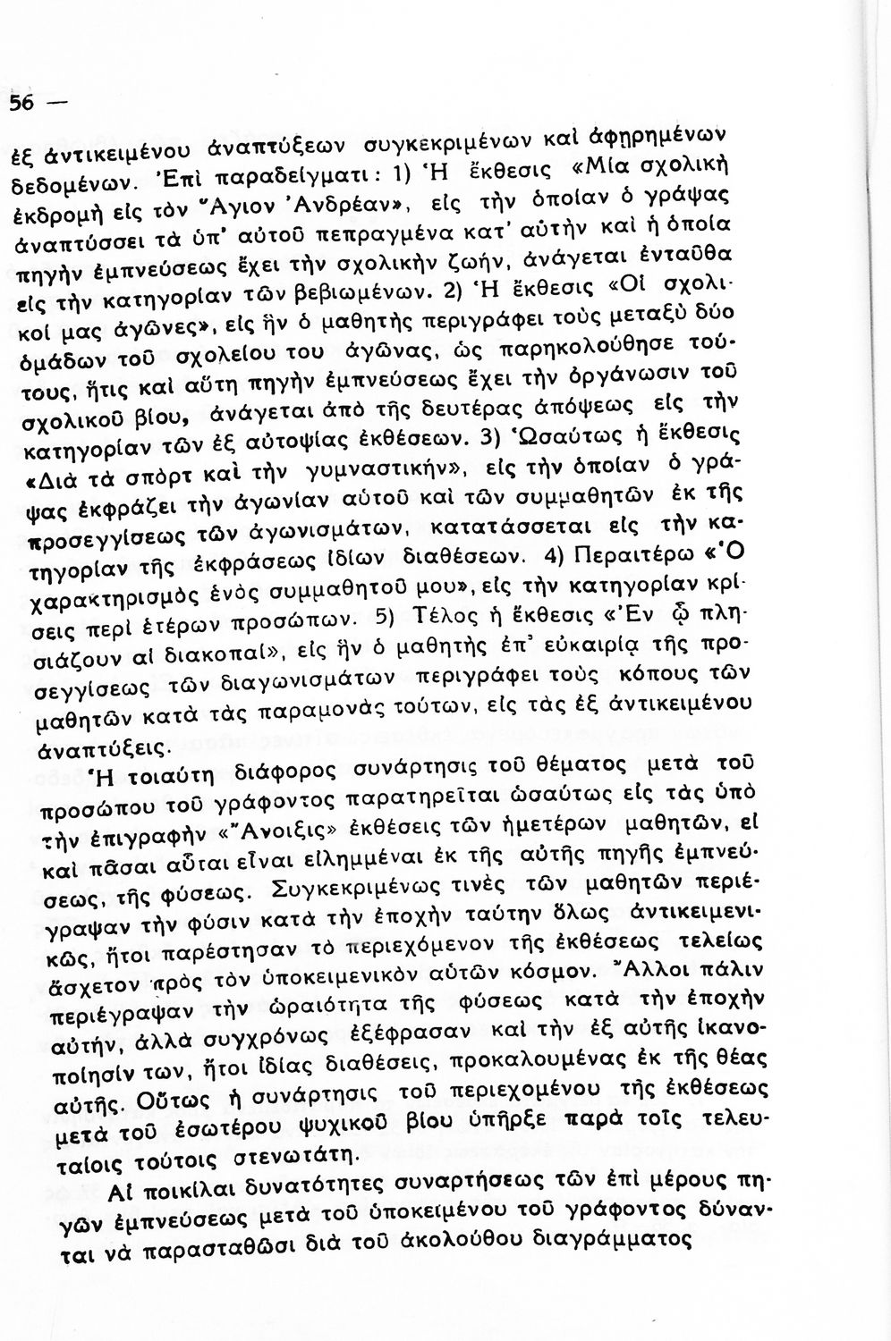Εκπαιδευτικό βοήθημα Γλώσσας για τη Δευτεροβάθμια Εκπαίδευση. Το σύγγραμμα αποτελεί τη διδακτορική διατριβή του συγγραφέα που την είχε υποβάλει στη Φιλοσοφική Σχολή Αθηνών, σχετικά με τις εκθέσεις ιδεών των μαθητών. Ο συγγραφέας υπήρξε καθηγητής του Πειραματικού Σχολείου Πανεπιστημίου Αθηνών.