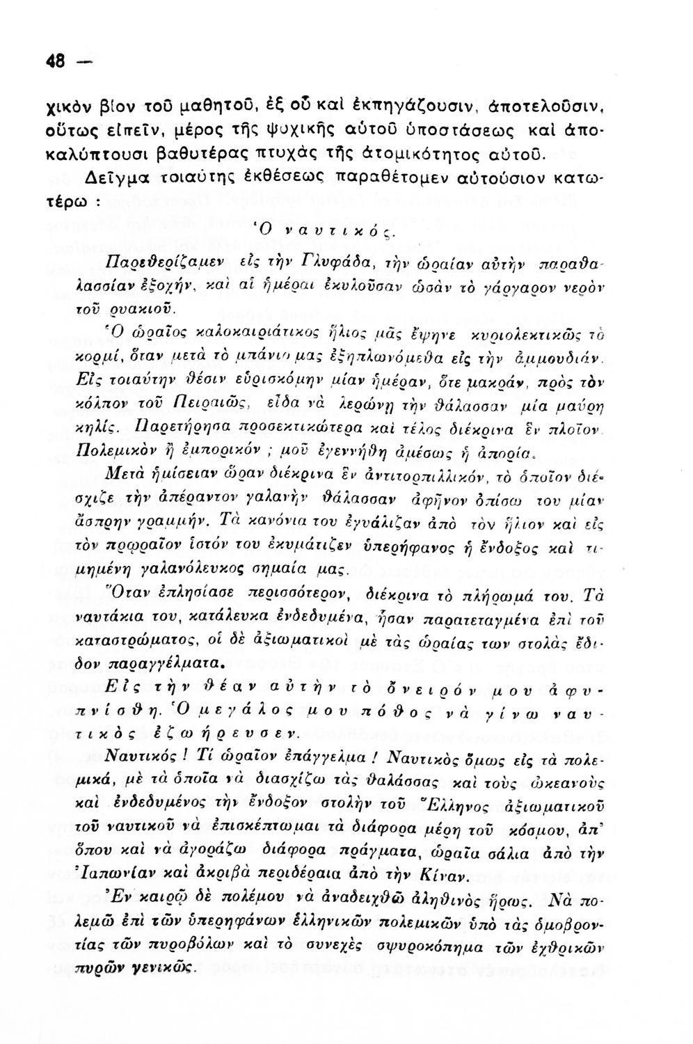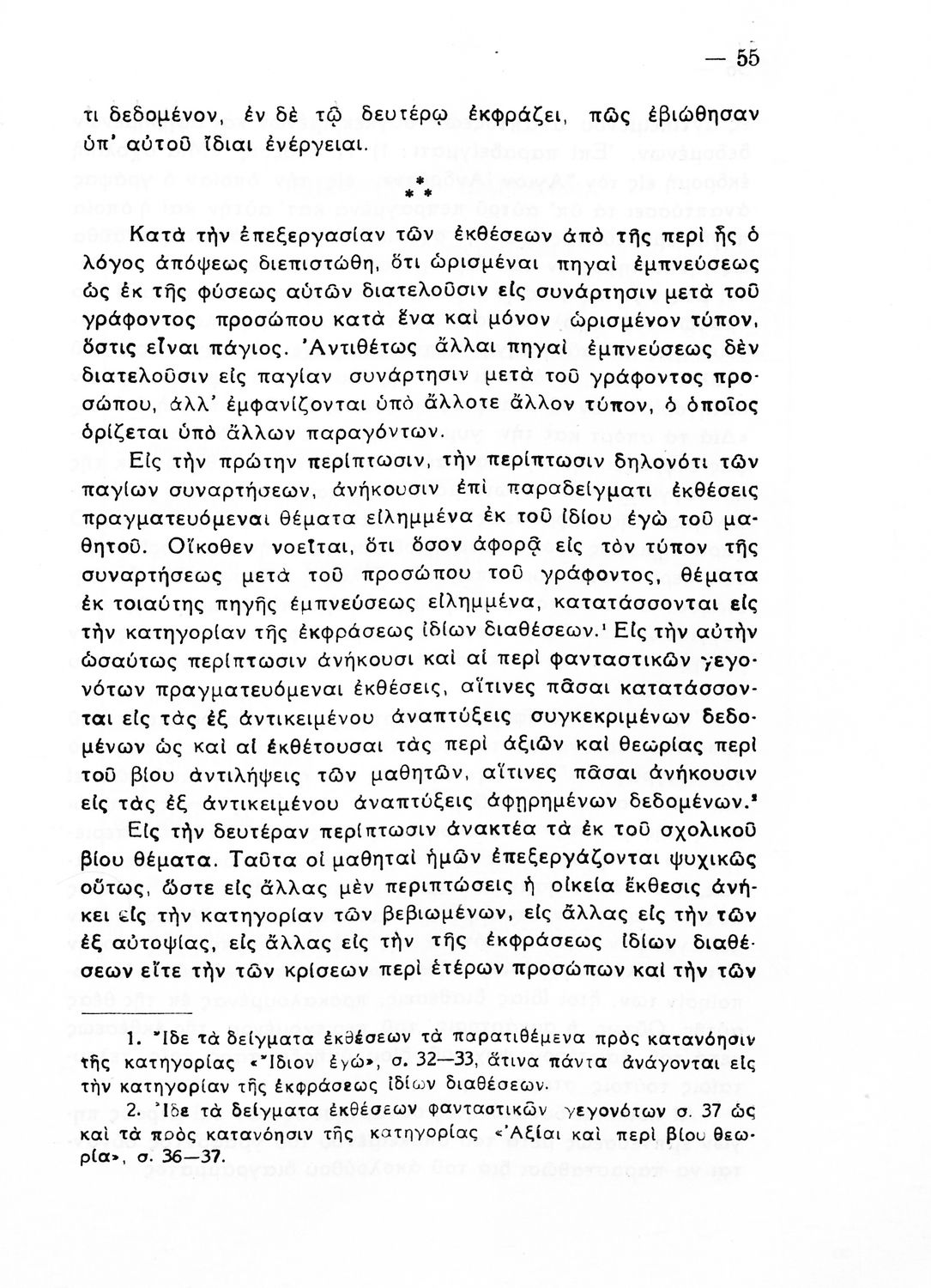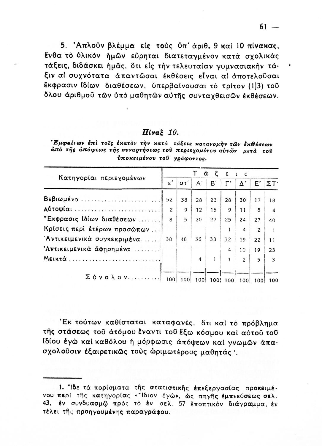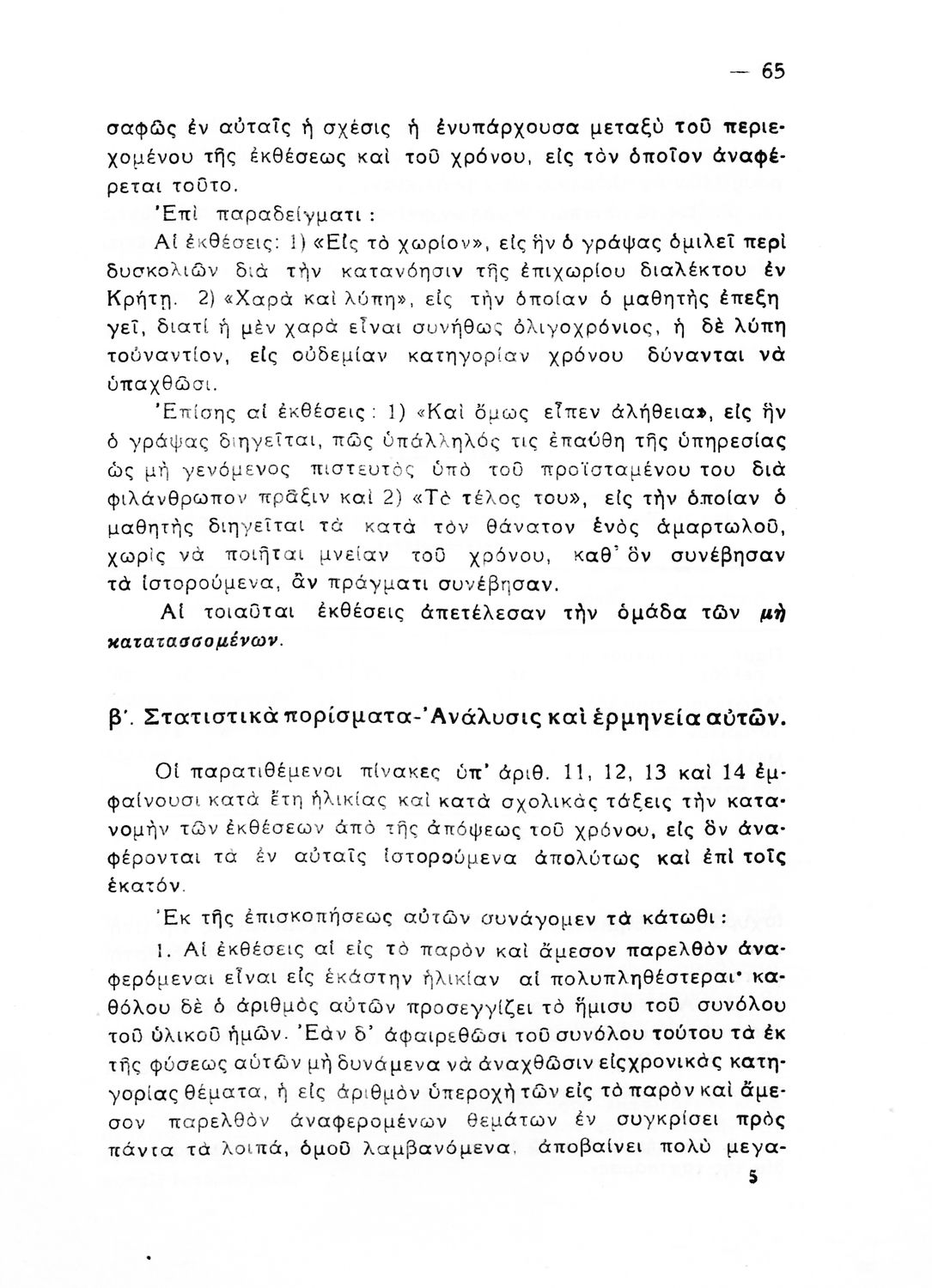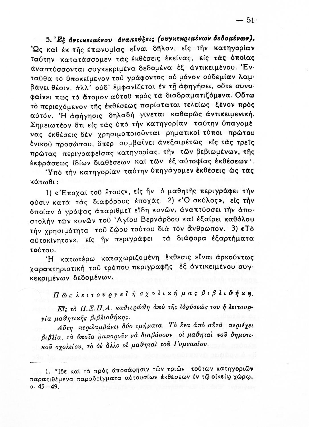 Εκπαιδευτικό βοήθημα Γλώσσας για τη Δευτεροβάθμια Εκπαίδευση. Το σύγγραμμα αποτελεί τη διδακτορική διατριβή του συγγραφέα που την είχε υποβάλει στη Φιλοσοφική Σχολή Αθηνών, σχετικά με τις εκθέσεις ιδεών των μαθητών. Ο συγγραφέας υπήρξε καθηγητής του Πειραματικού Σχολείου Πανεπιστημίου Αθηνών.