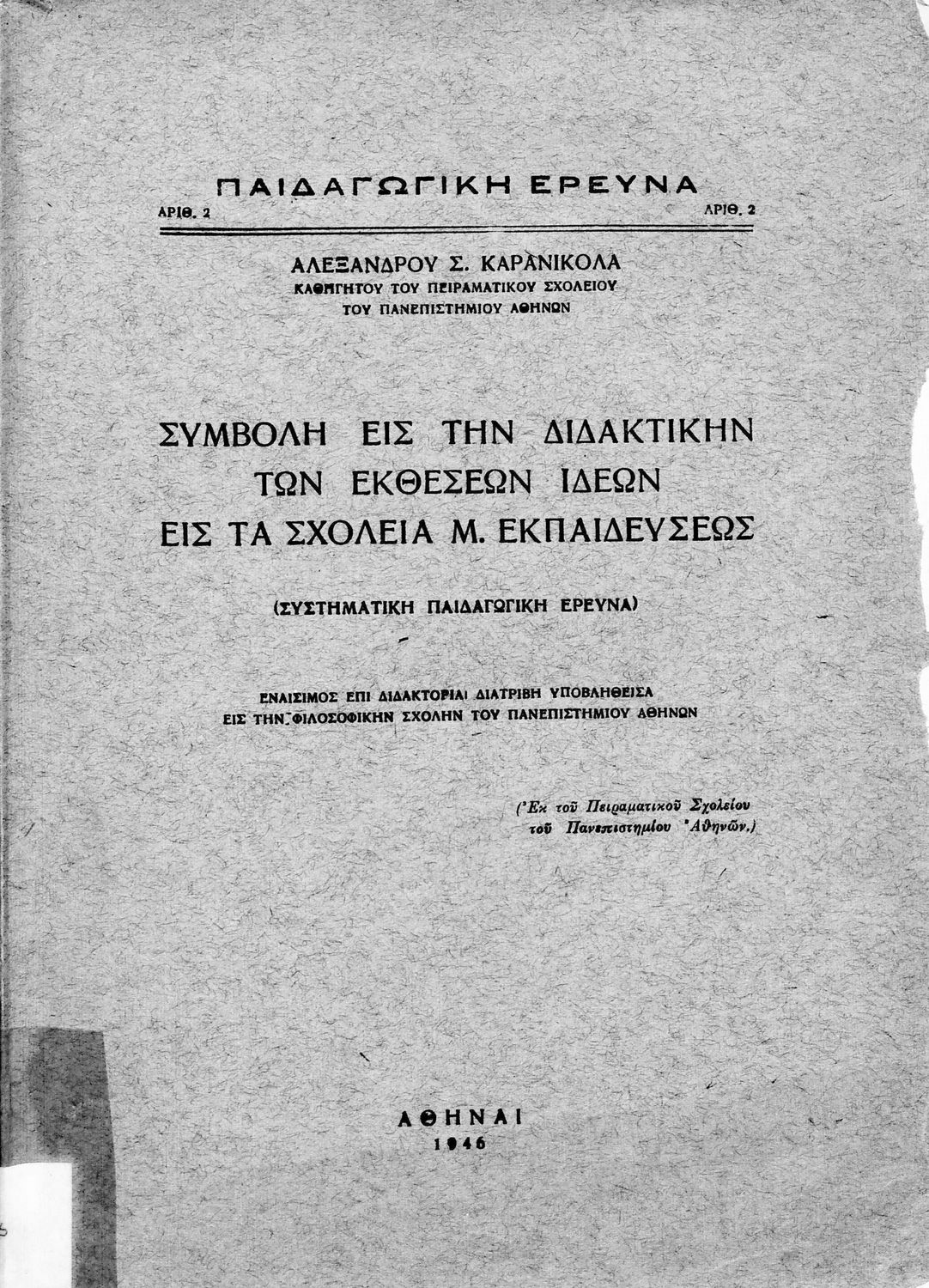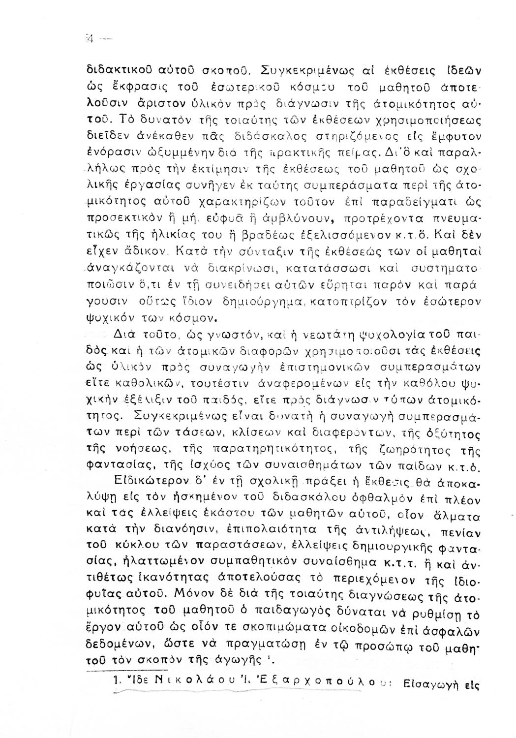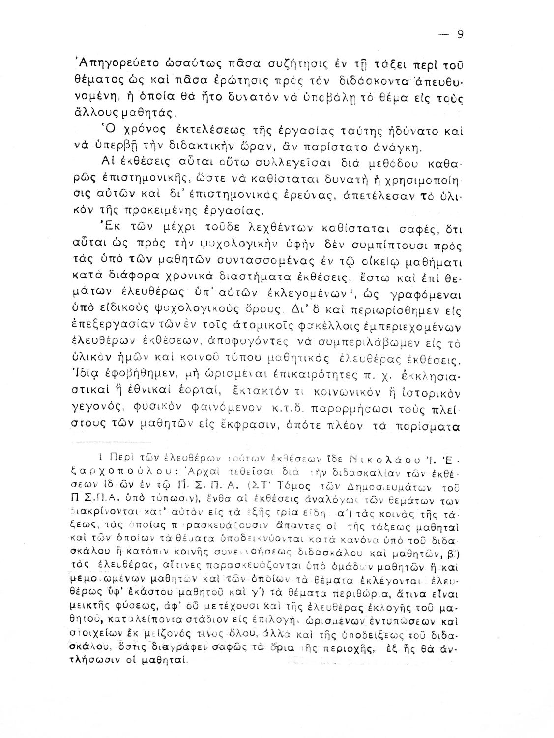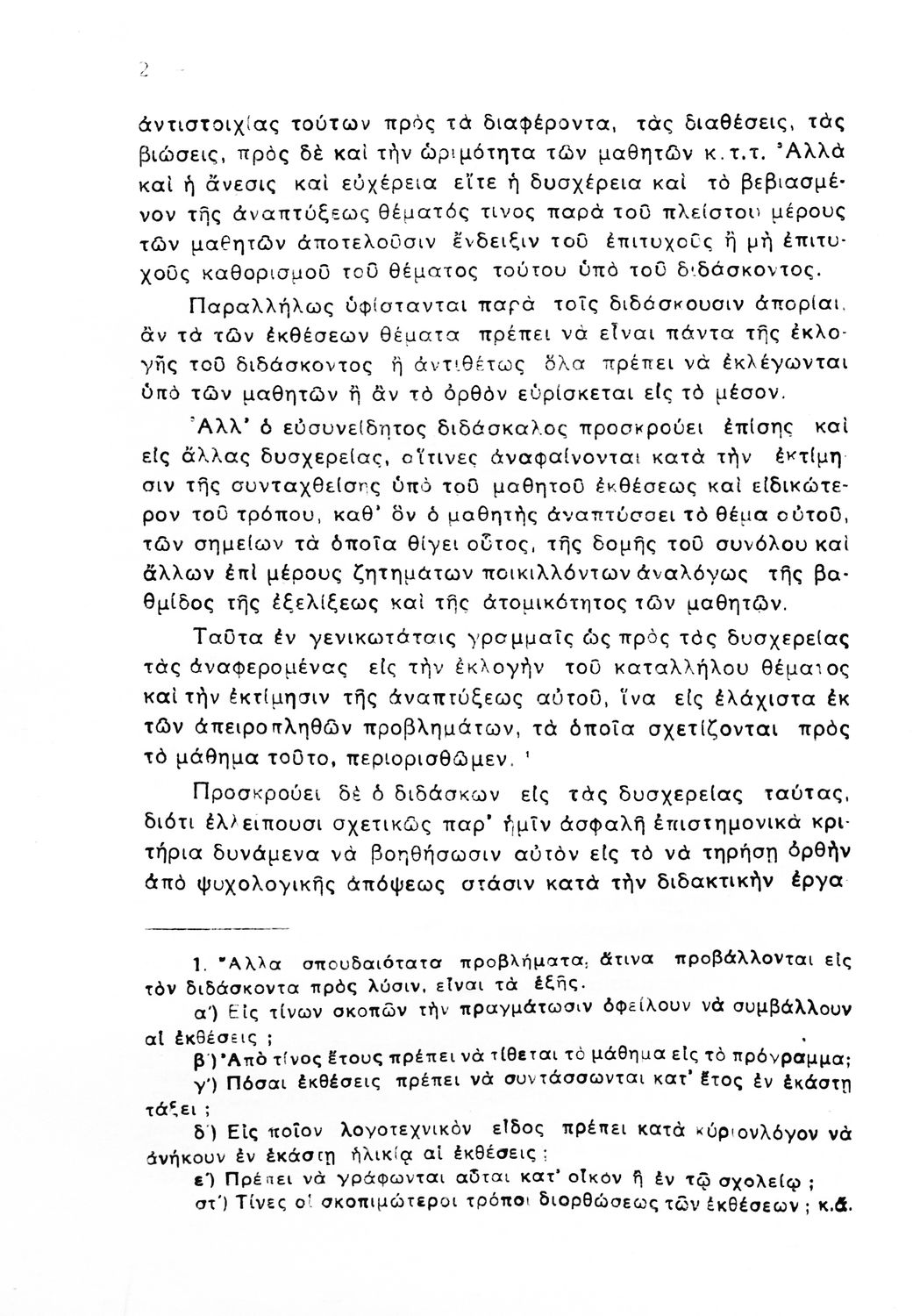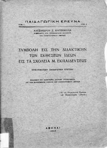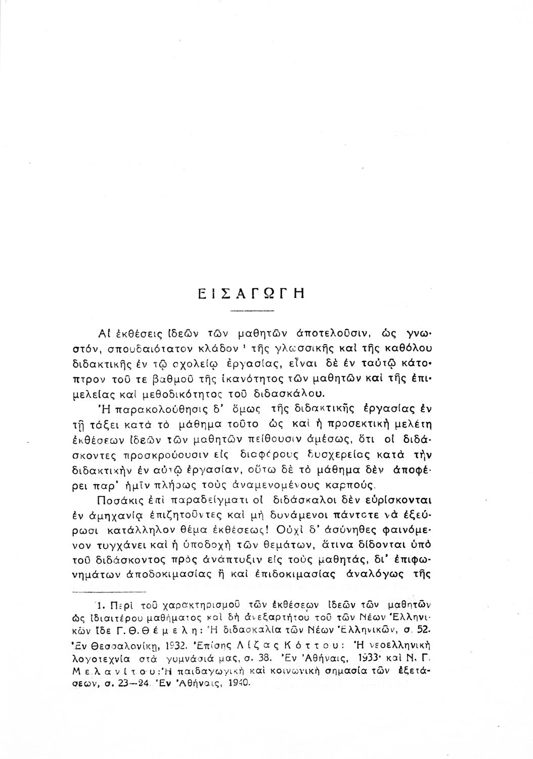 Εκπαιδευτικό βοήθημα Γλώσσας για τη Δευτεροβάθμια Εκπαίδευση. Το σύγγραμμα αποτελεί τη διδακτορική διατριβή του συγγραφέα που την είχε υποβάλει στη Φιλοσοφική Σχολή Αθηνών, σχετικά με τις εκθέσεις ιδεών των μαθητών. Ο συγγραφέας υπήρξε καθηγητής του Πειραματικού Σχολείου Πανεπιστημίου Αθηνών.