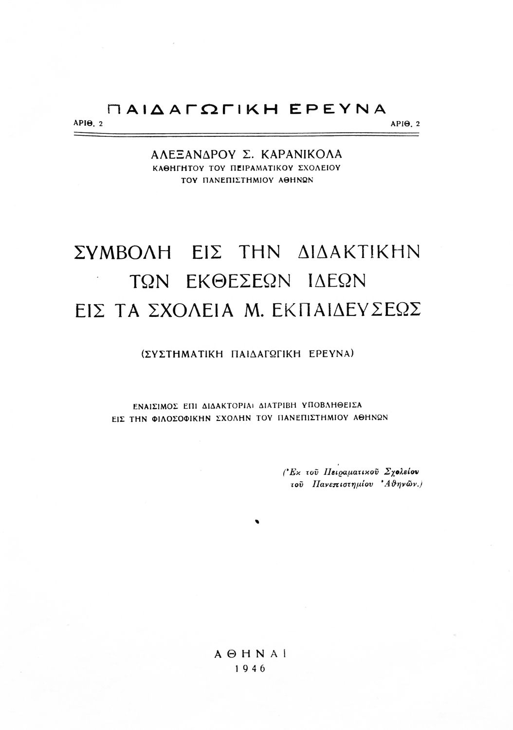 Έτος έκδοσης: 1946 Τόπος έκδοσης: Αθήνα |