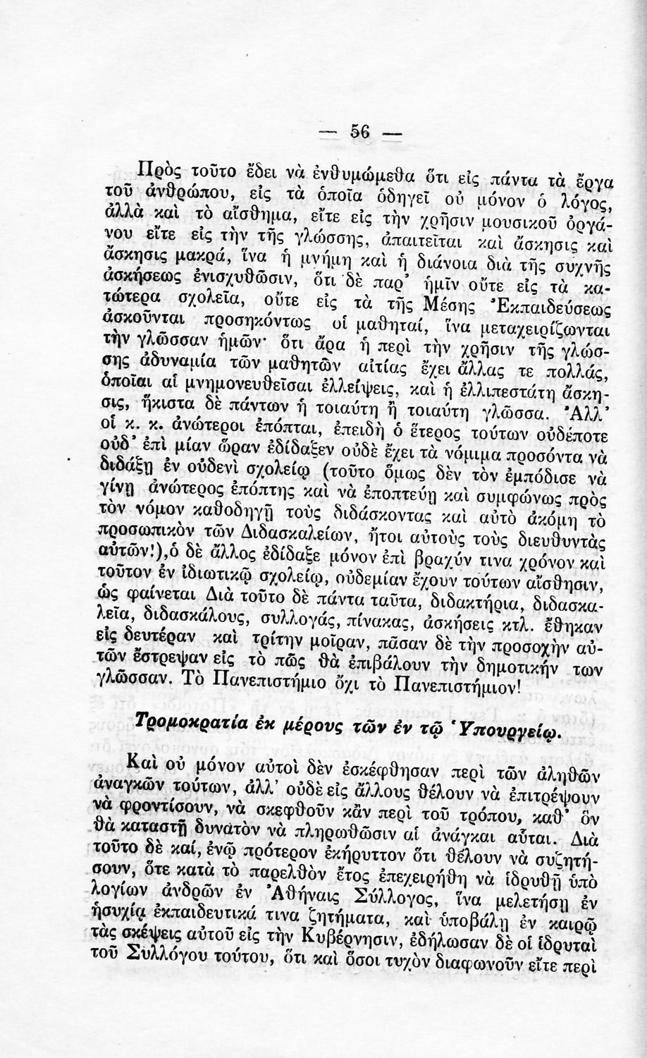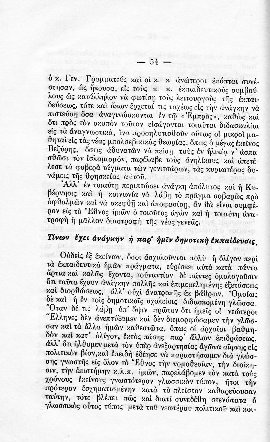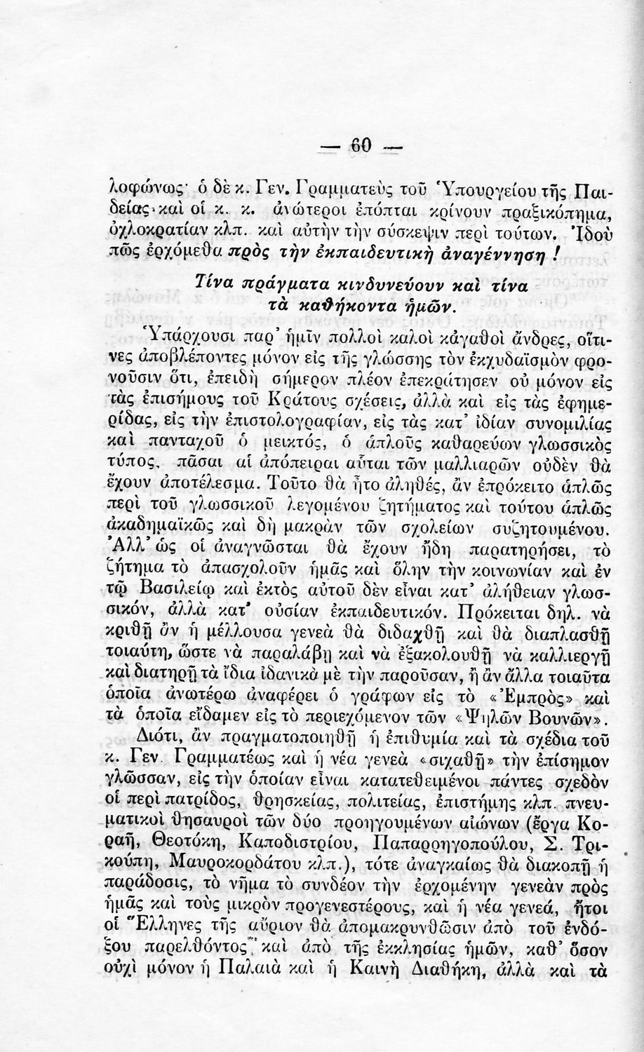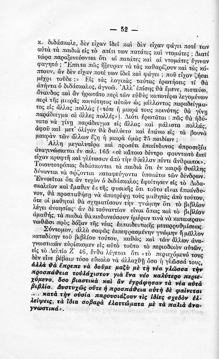 Βαθμίδα εκπαίδευσης: Πρωτοβάθμια Γλώσσα: Καθαρεύουσα Παρουσίαση περιεχομένου: Δοκίμιο κατά του Δημοτικισμού και κυρίως του σχολικού εγχειριδίου Τα Ψηλά Βουνά. |