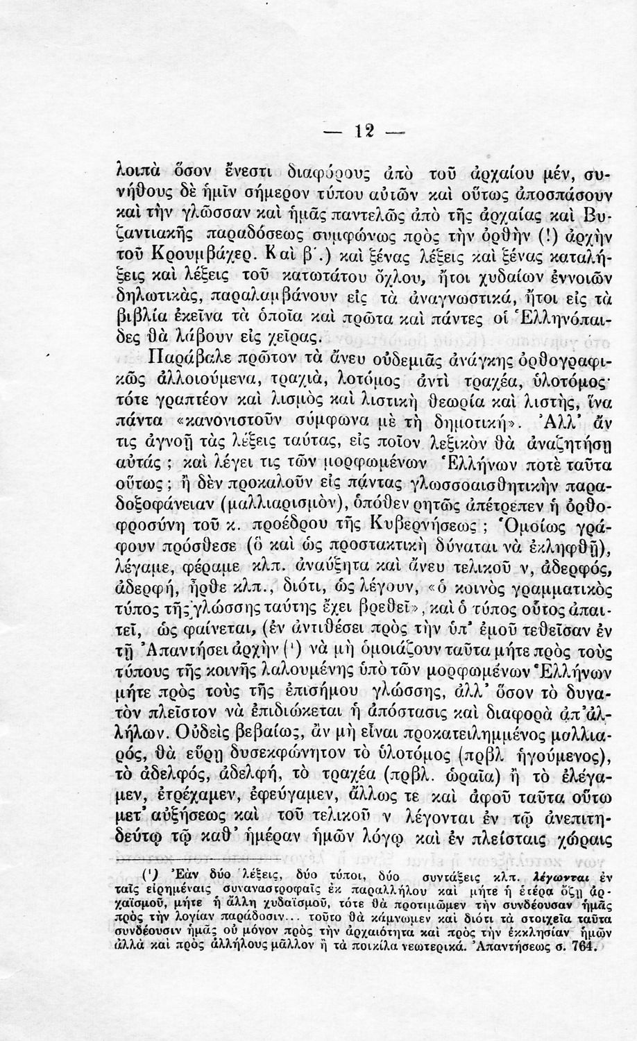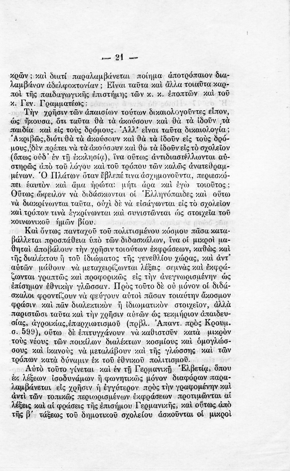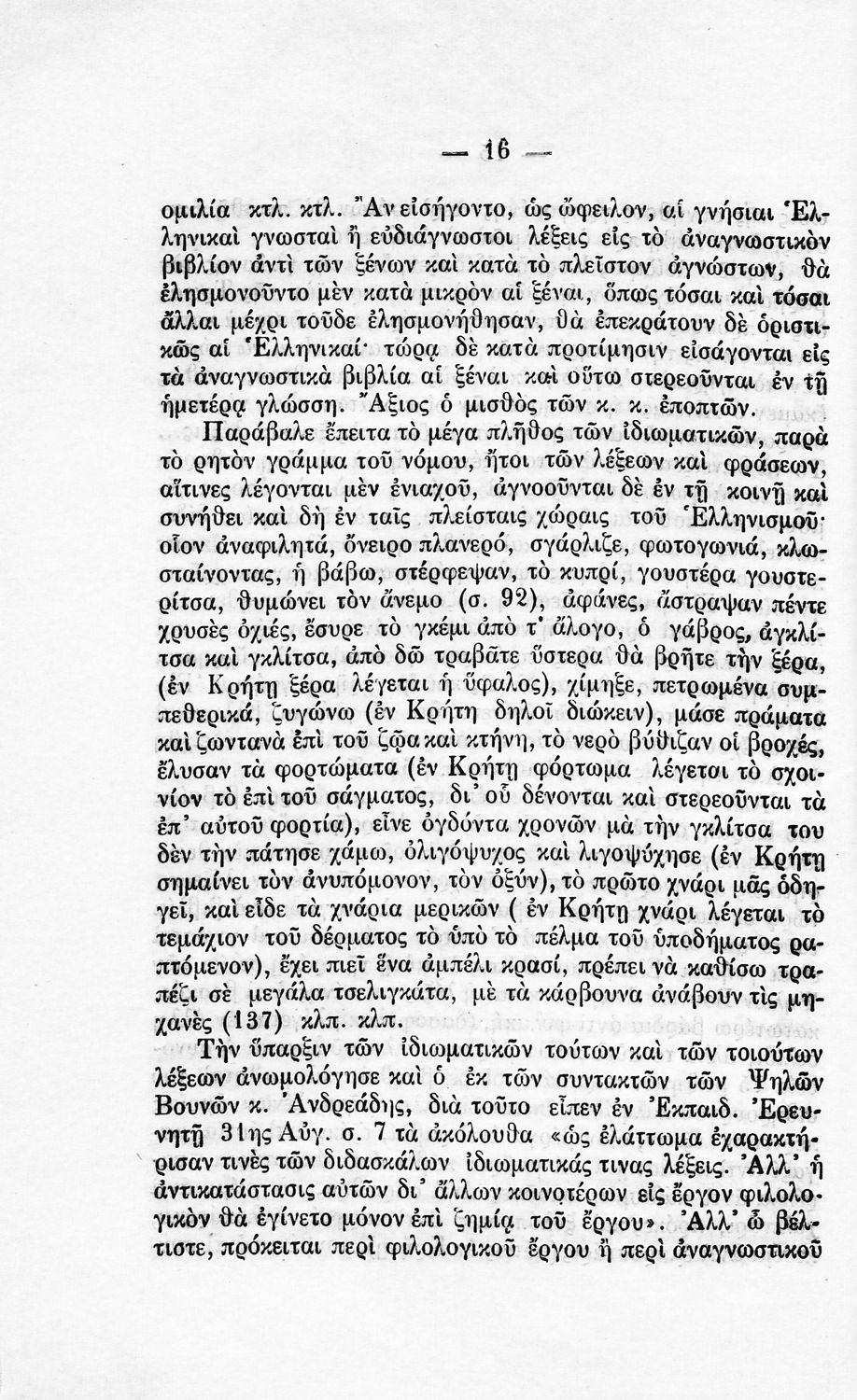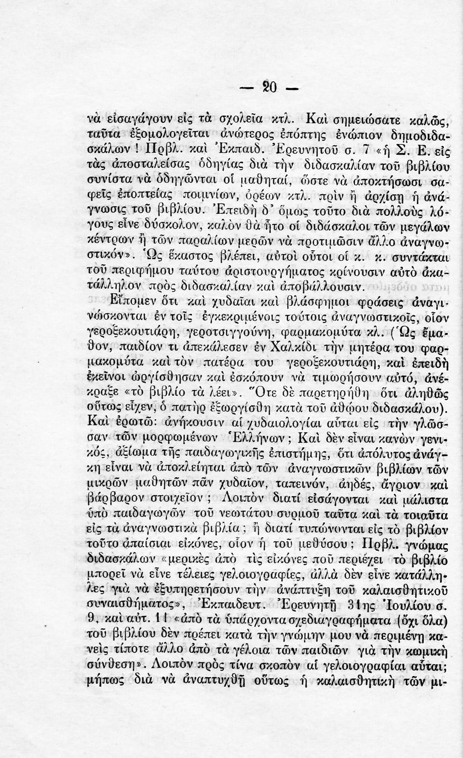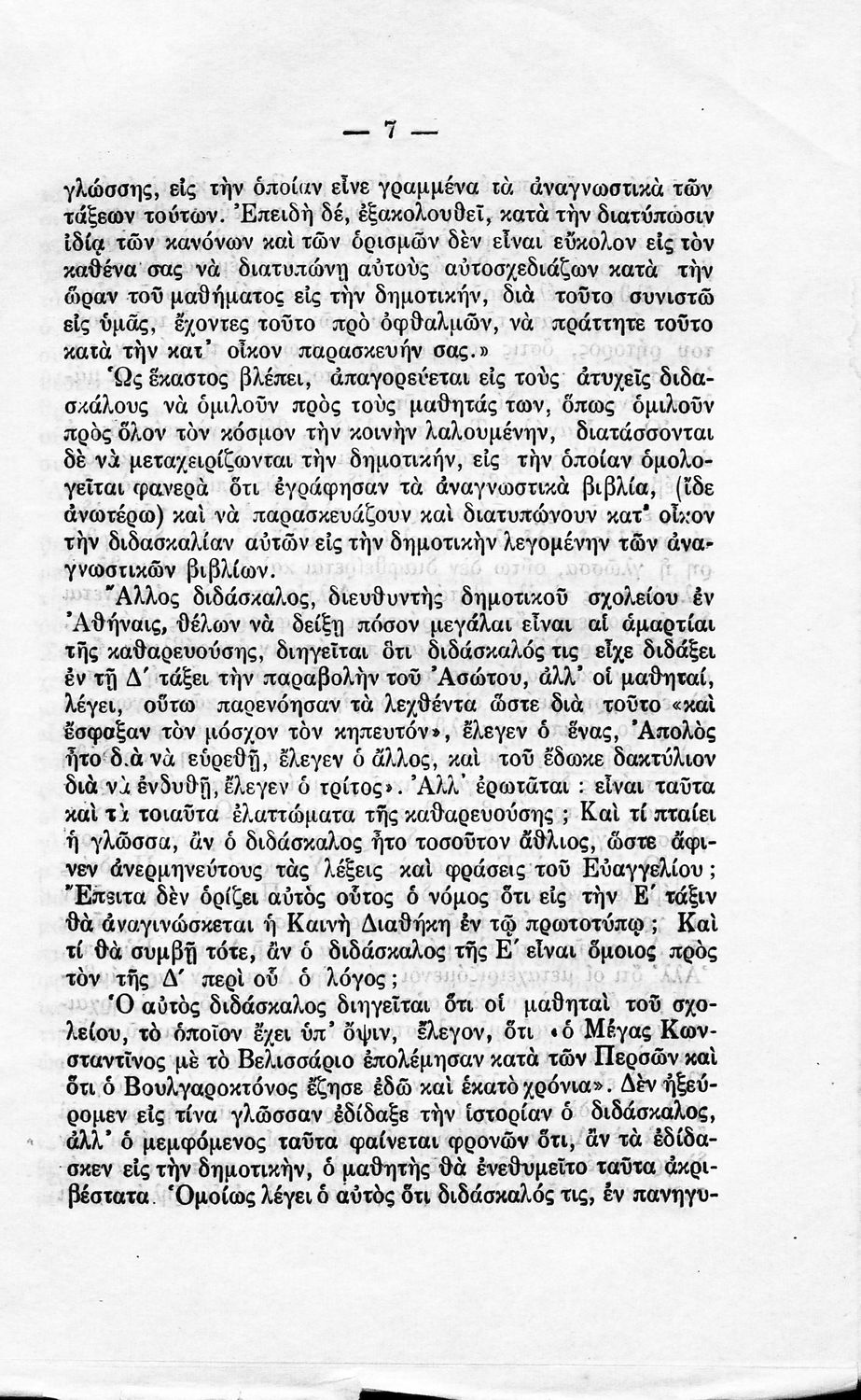Βαθμίδα εκπαίδευσης: Πρωτοβάθμια Γλώσσα: Καθαρεύουσα Παρουσίαση περιεχομένου: Δοκίμιο κατά του Δημοτικισμού και κυρίως του σχολικού εγχειριδίου Τα Ψηλά Βουνά. |