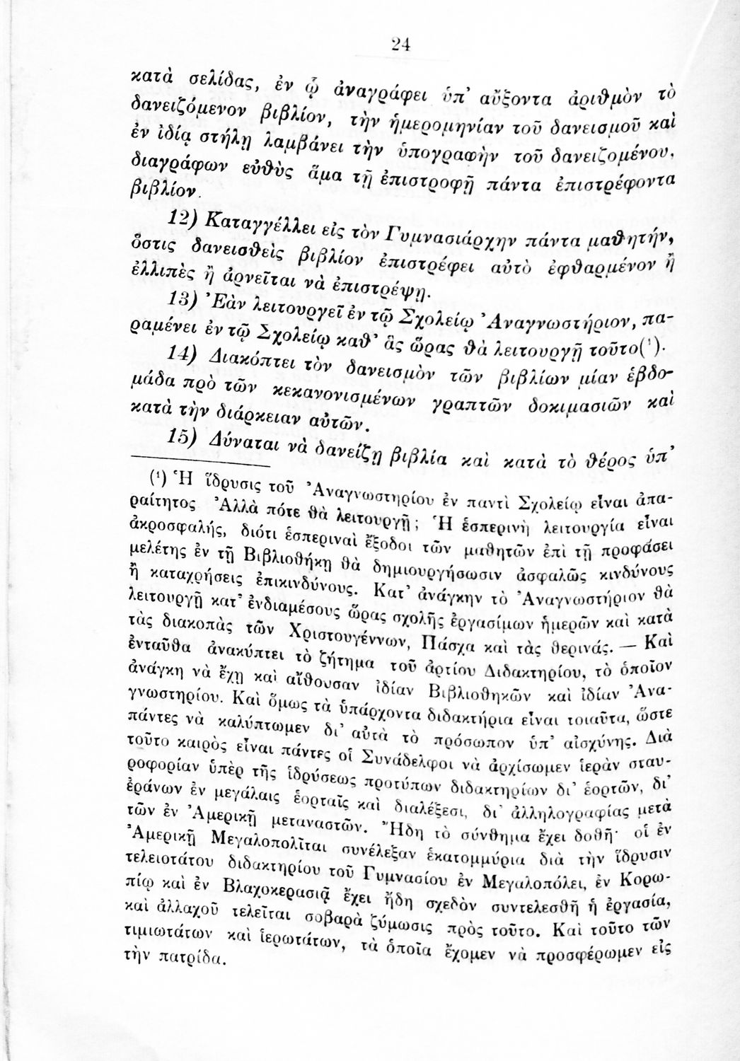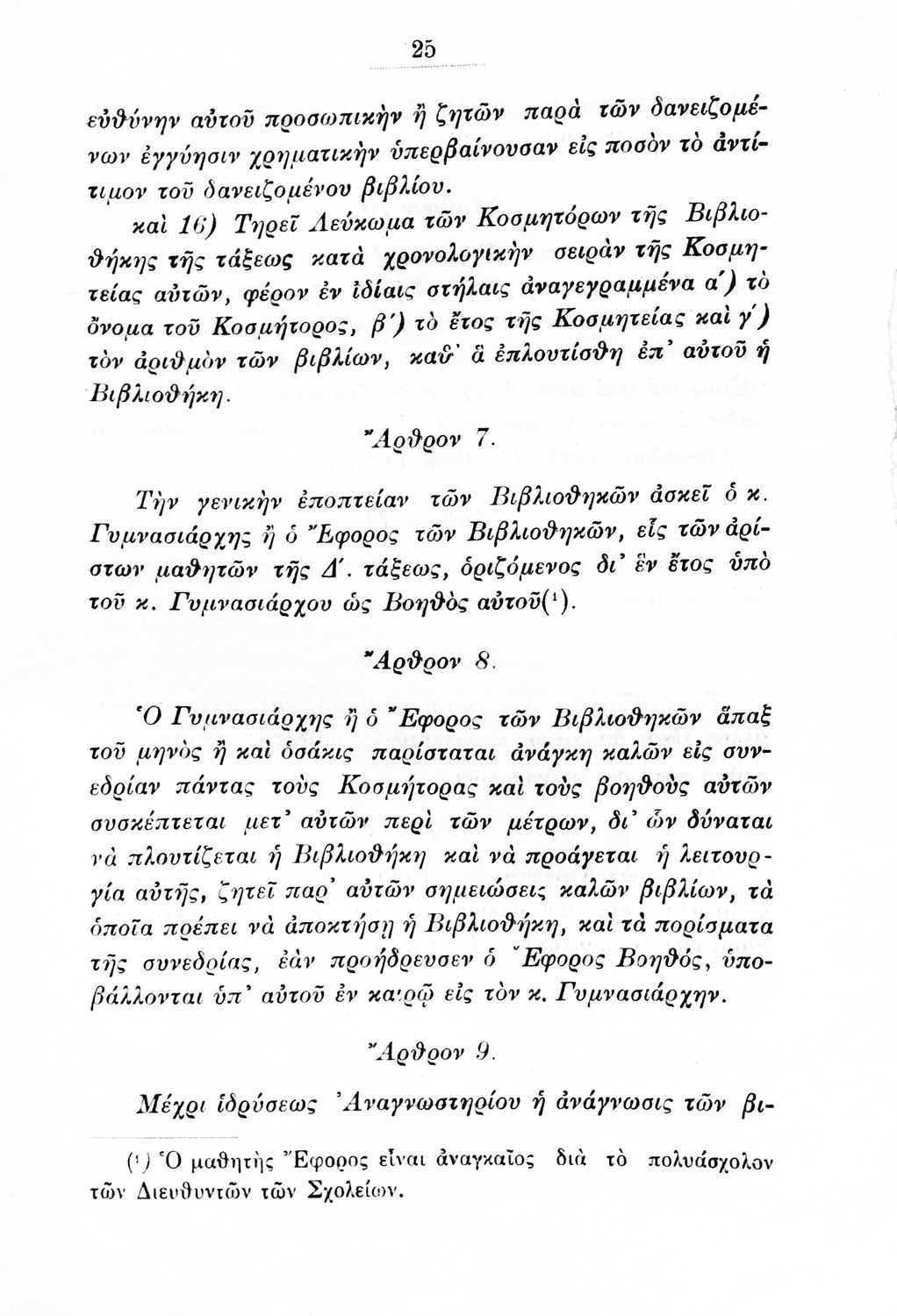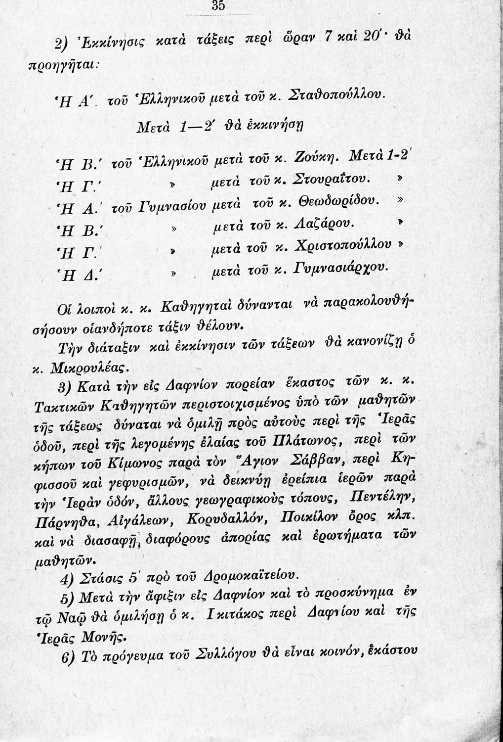 Παιδαγωγικό βοήθημα που αναφέρεται στον κανονισμό λειτουργίας των σχολείων Μέσης εκπαίδευσης. Ο συγγραφέας ήταν Γυμνασιάρχης στο Διδασκαλείο της Μέσης Εκπαίδευσης Πρότυπου Κλασσικού Γυμνασίου