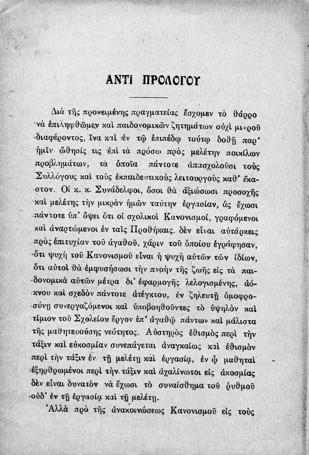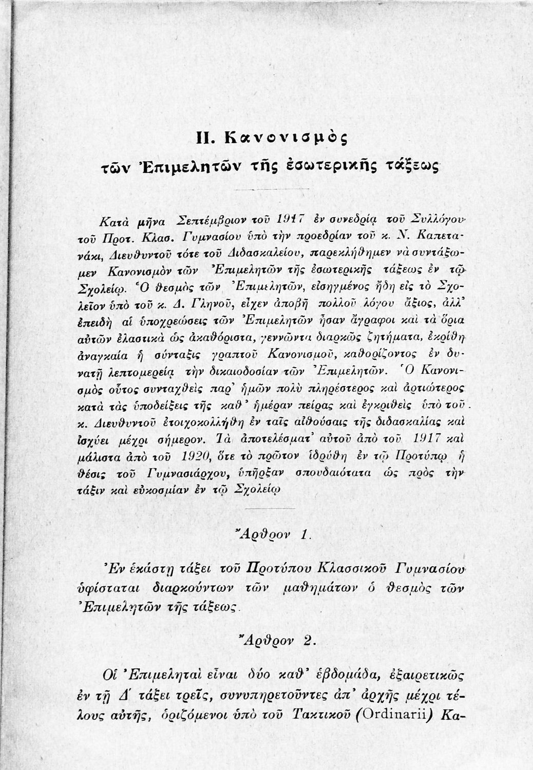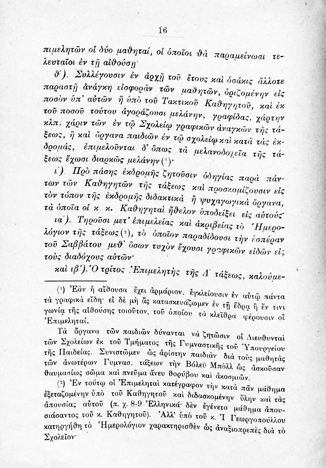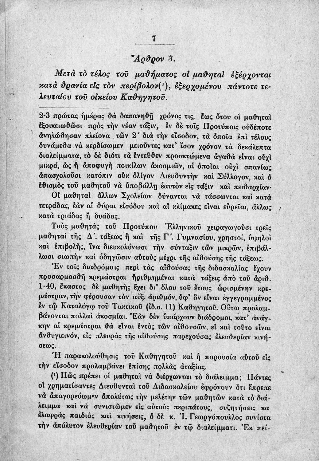 Παιδαγωγικό βοήθημα που αναφέρεται στον κανονισμό λειτουργίας των σχολείων Μέσης εκπαίδευσης. Ο συγγραφέας ήταν Γυμνασιάρχης στο Διδασκαλείο της Μέσης Εκπαίδευσης Πρότυπου Κλασσικού Γυμνασίου