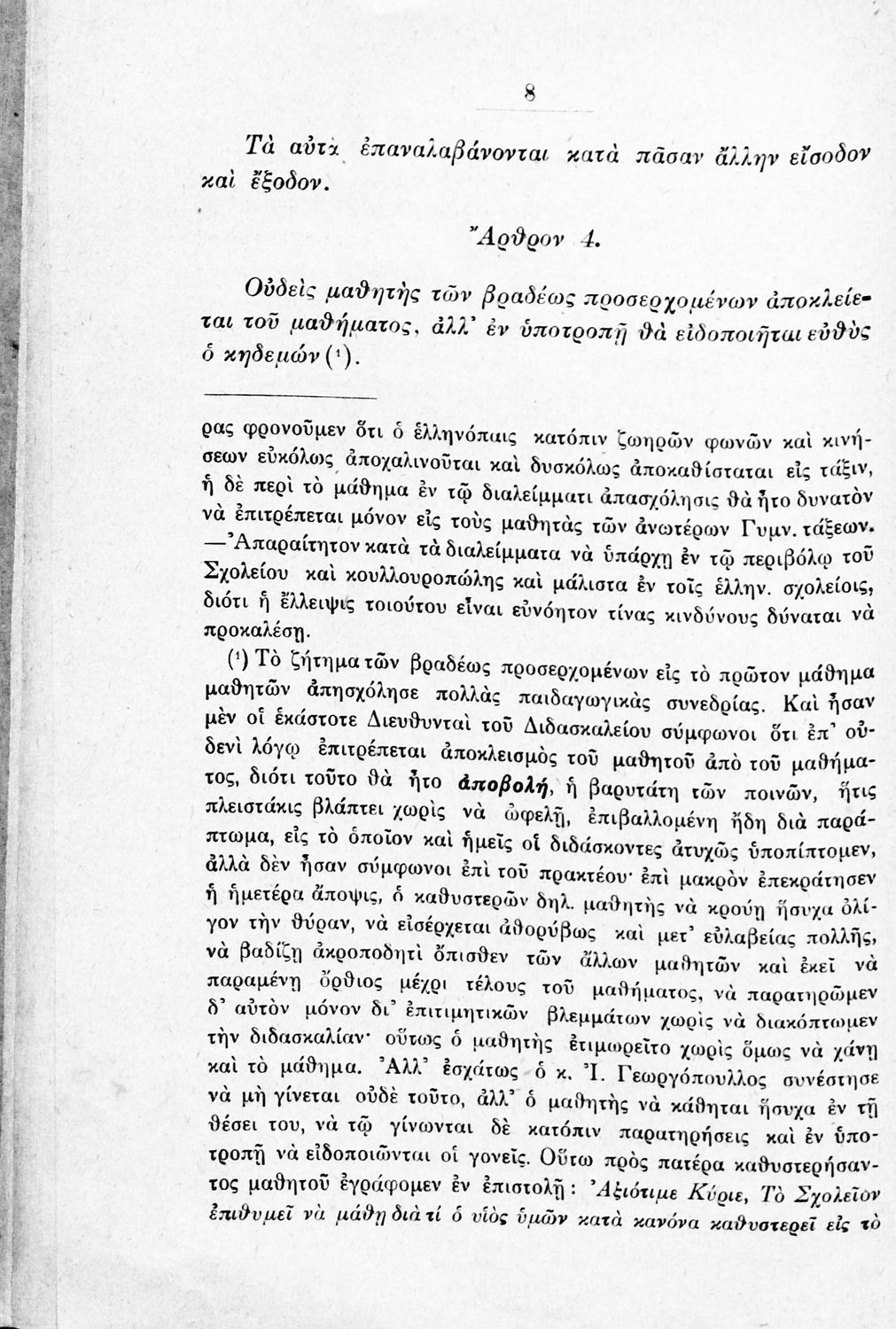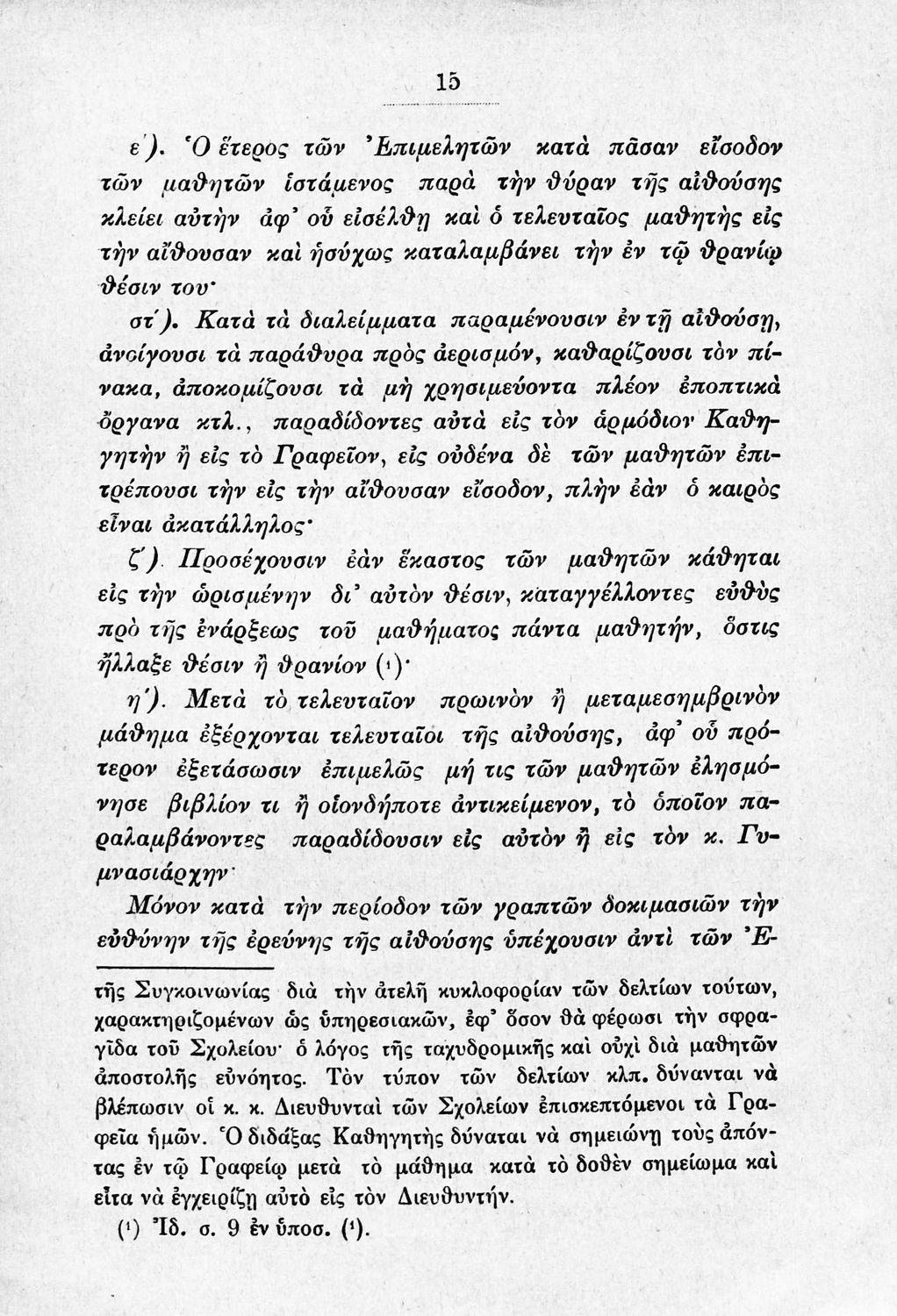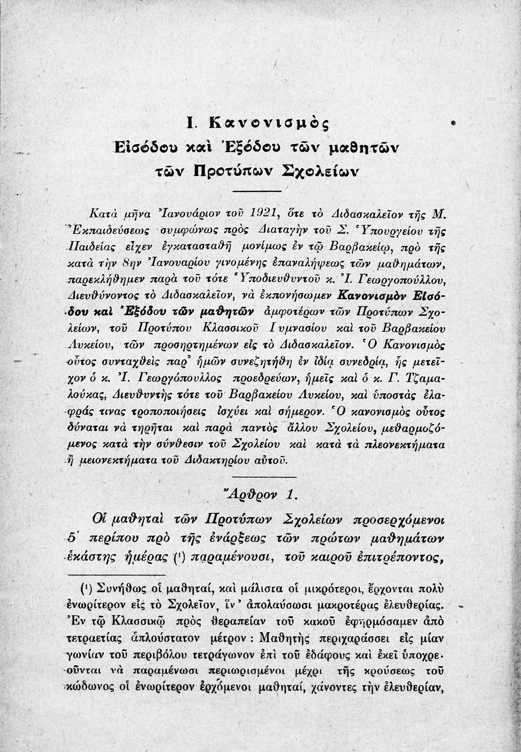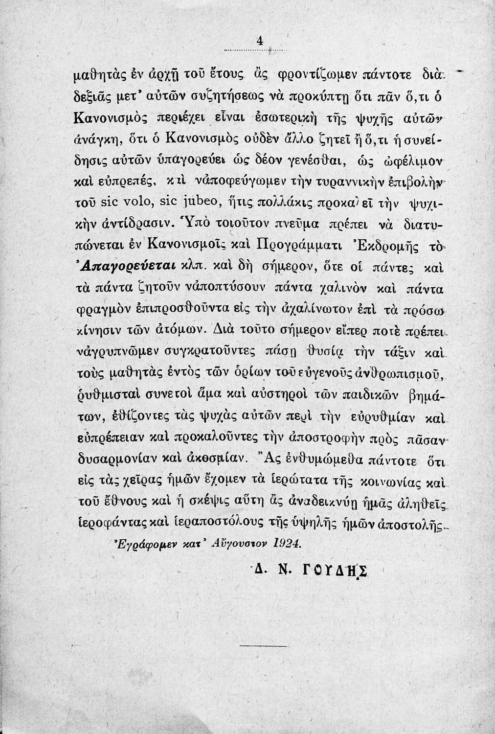 Παιδαγωγικό βοήθημα που αναφέρεται στον κανονισμό λειτουργίας των σχολείων Μέσης εκπαίδευσης. Ο συγγραφέας ήταν Γυμνασιάρχης στο Διδασκαλείο της Μέσης Εκπαίδευσης Πρότυπου Κλασσικού Γυμνασίου