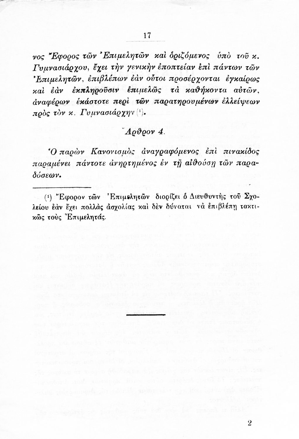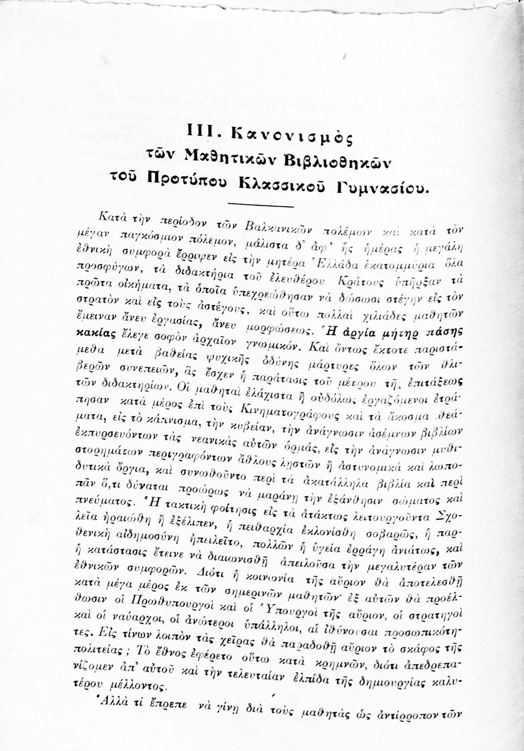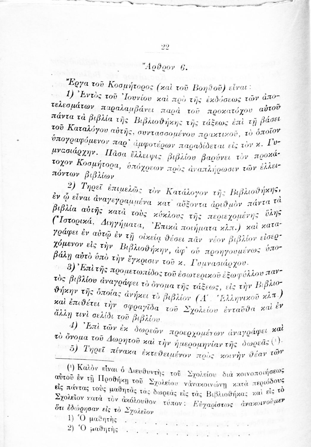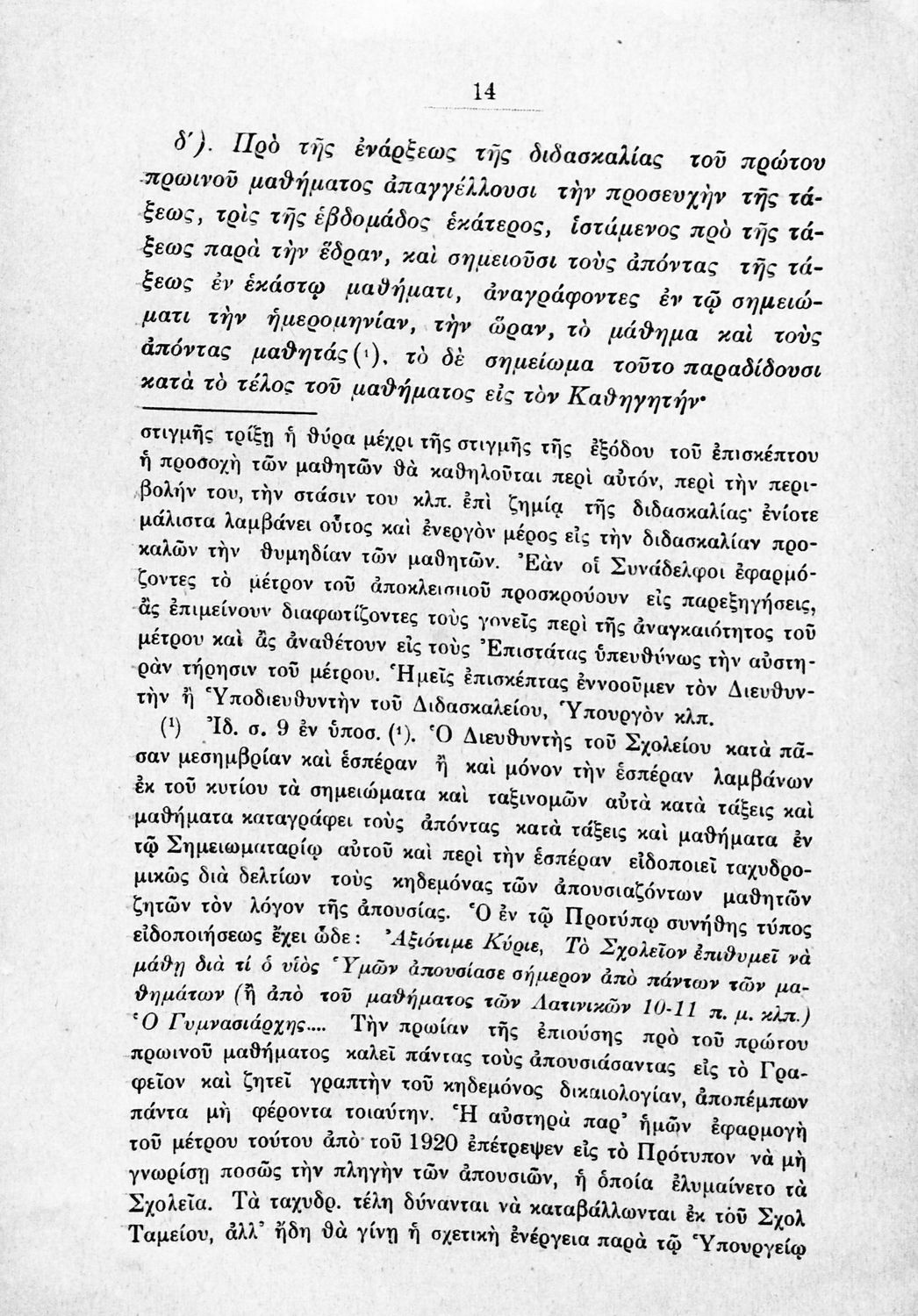 Παιδαγωγικό βοήθημα που αναφέρεται στον κανονισμό λειτουργίας των σχολείων Μέσης εκπαίδευσης. Ο συγγραφέας ήταν Γυμνασιάρχης στο Διδασκαλείο της Μέσης Εκπαίδευσης Πρότυπου Κλασσικού Γυμνασίου